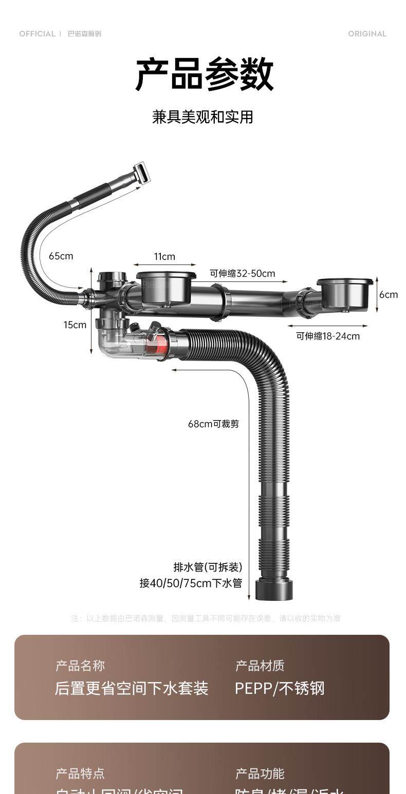 Kitchen Sink Single Bowl Drain Pipe Set, Complete Set of Dishwashing Sink Drain Fittings, Anti-Odor Drainage Pipe Set, Universal