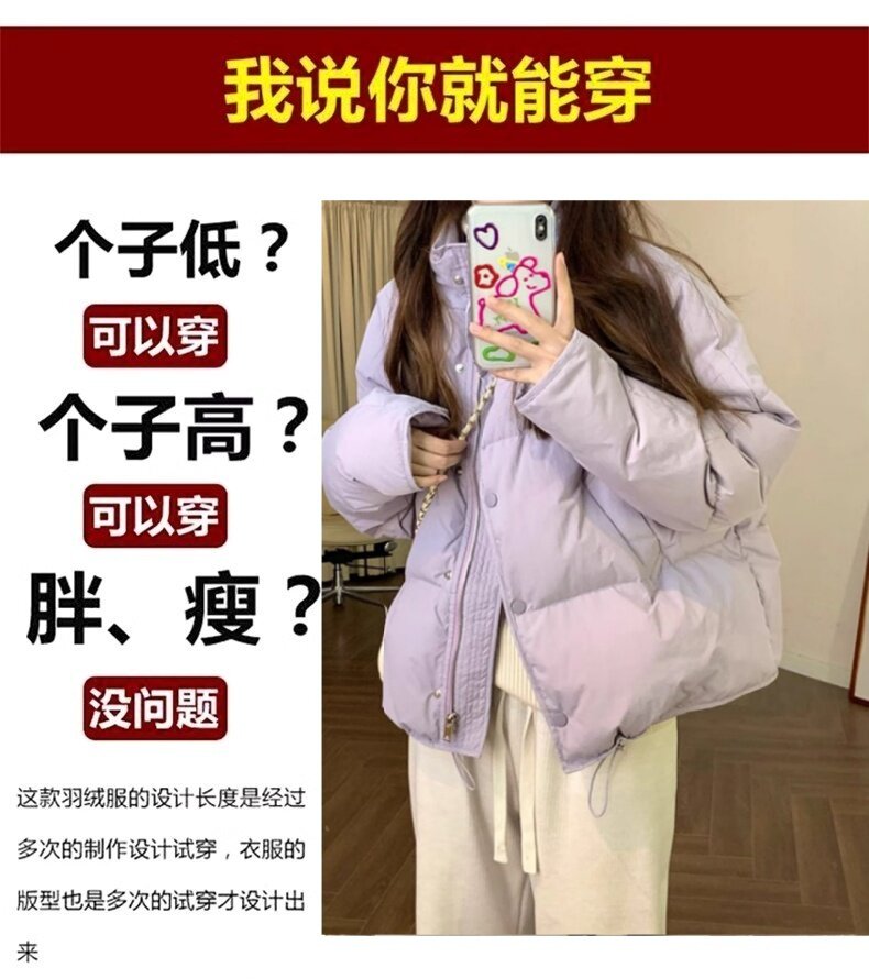Taro Purple Short Down Jacket Women's 2025 Winter New Version Thickened White Duck Down Small Bread Jacket