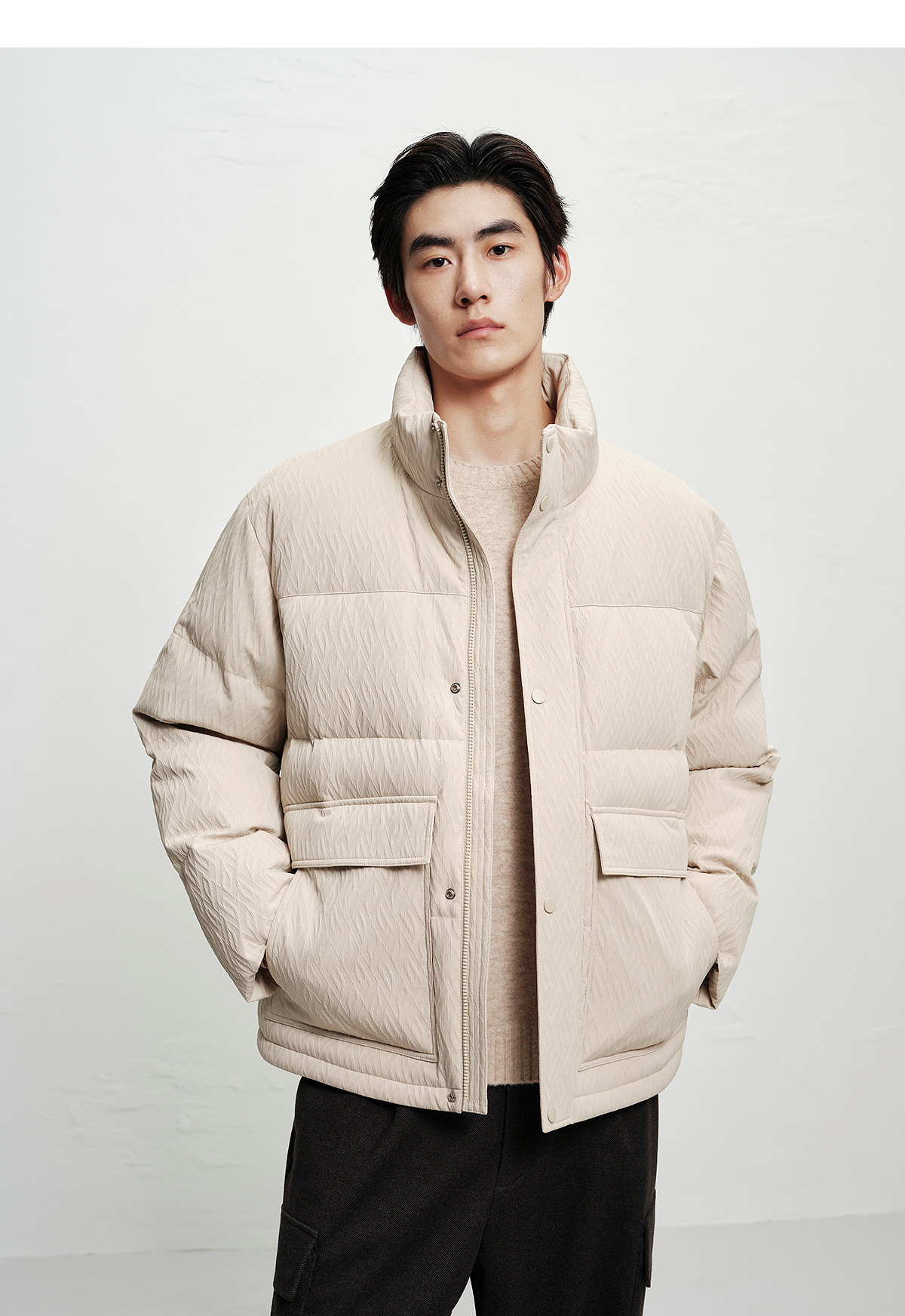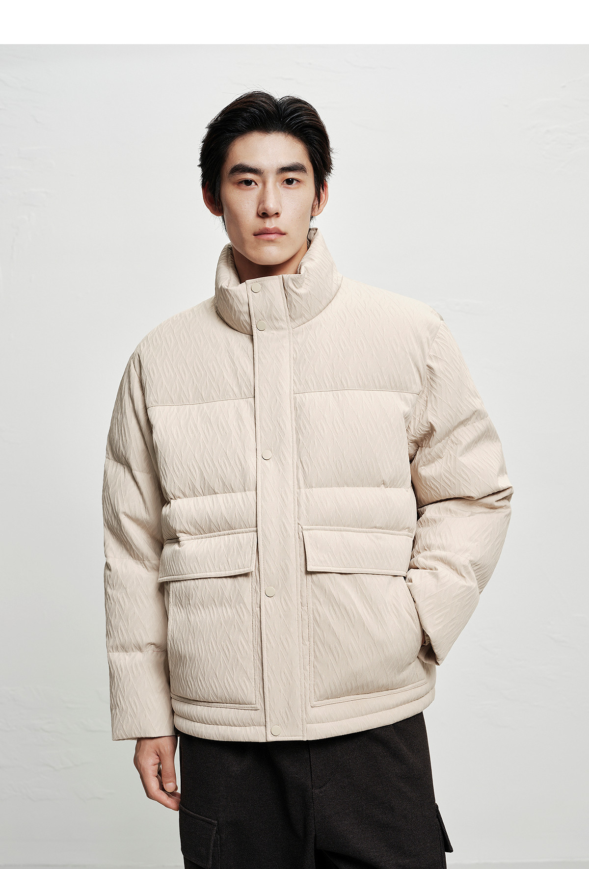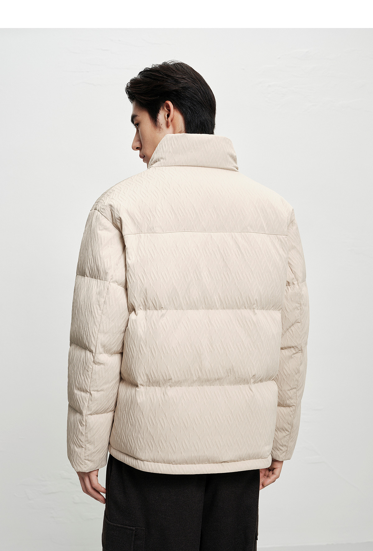 [Jacquard Texture]Peacebird Men's Clothing Stand Collar Puffer Jacket 2025 Winter New Cold-Resistant down Jacket for Men~