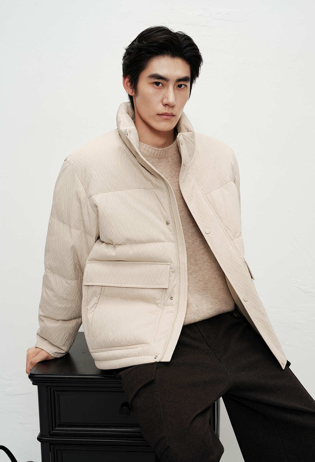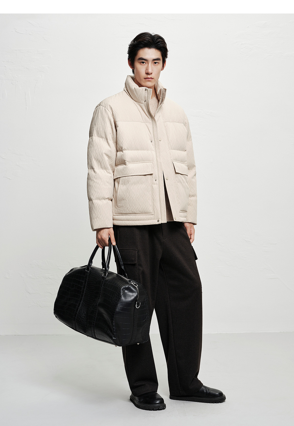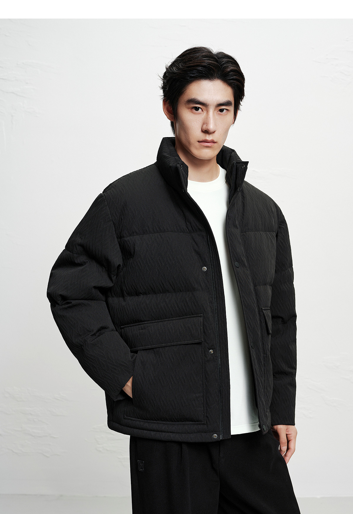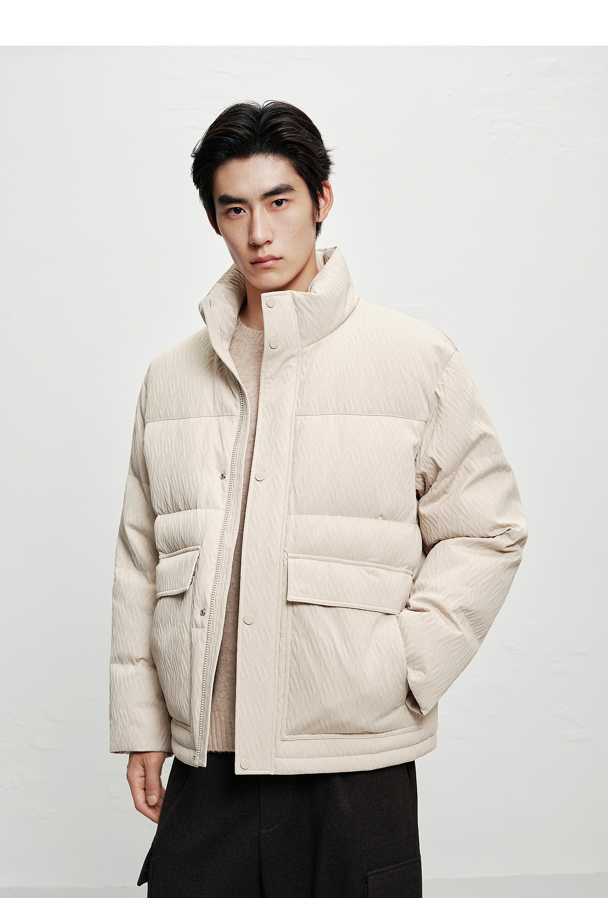 [Jacquard Texture]Peacebird Men's Clothing Stand Collar Puffer Jacket 2025 Winter New Cold-Resistant down Jacket for Men~