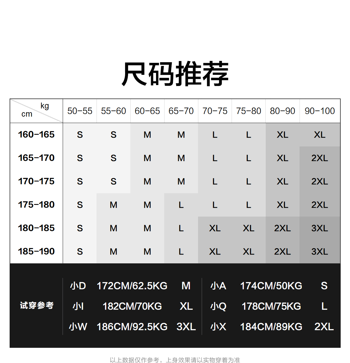 China (cm) 160-165/84-86 165-170 / 88-90 167-172 / 92-96 168-173 / 98-102 170-176 / 106-110