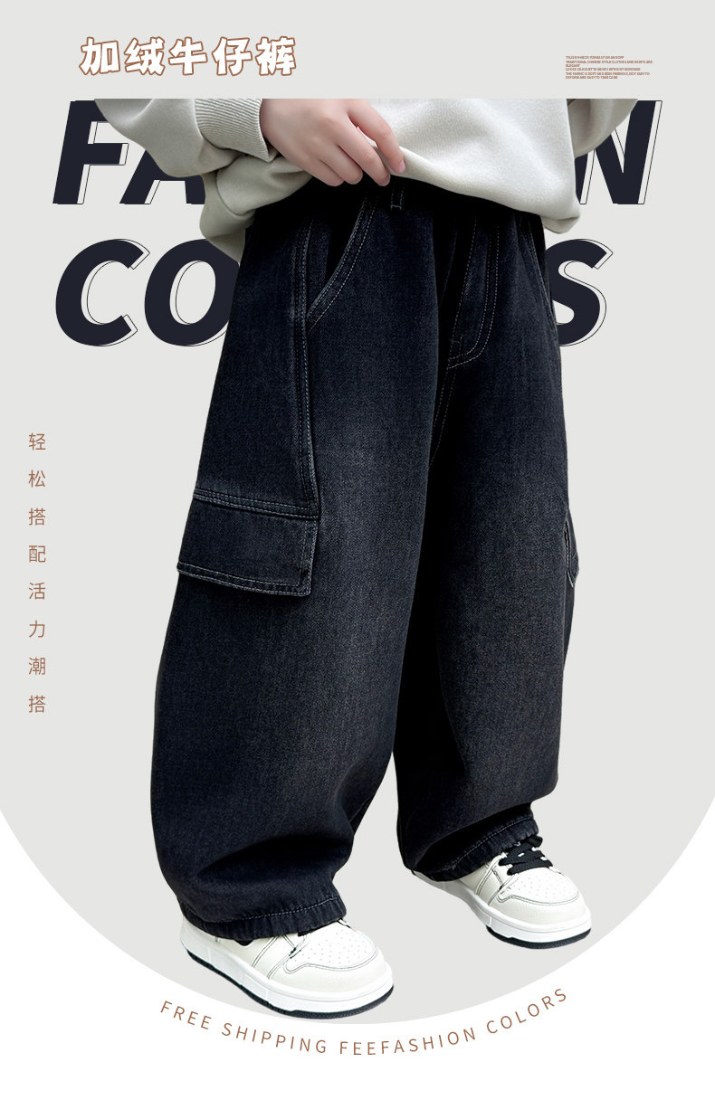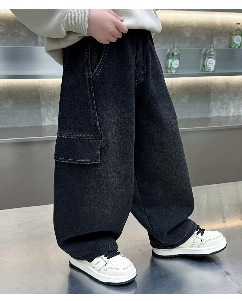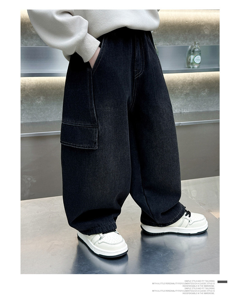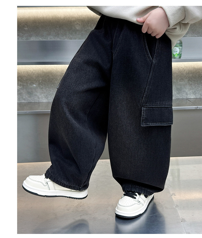 Boys' Jeans 2026 New Style Children's Spring and Autumn Loose Pants Little Boys Spring Fleece-Lined Thickened Straight-Leg Pants
