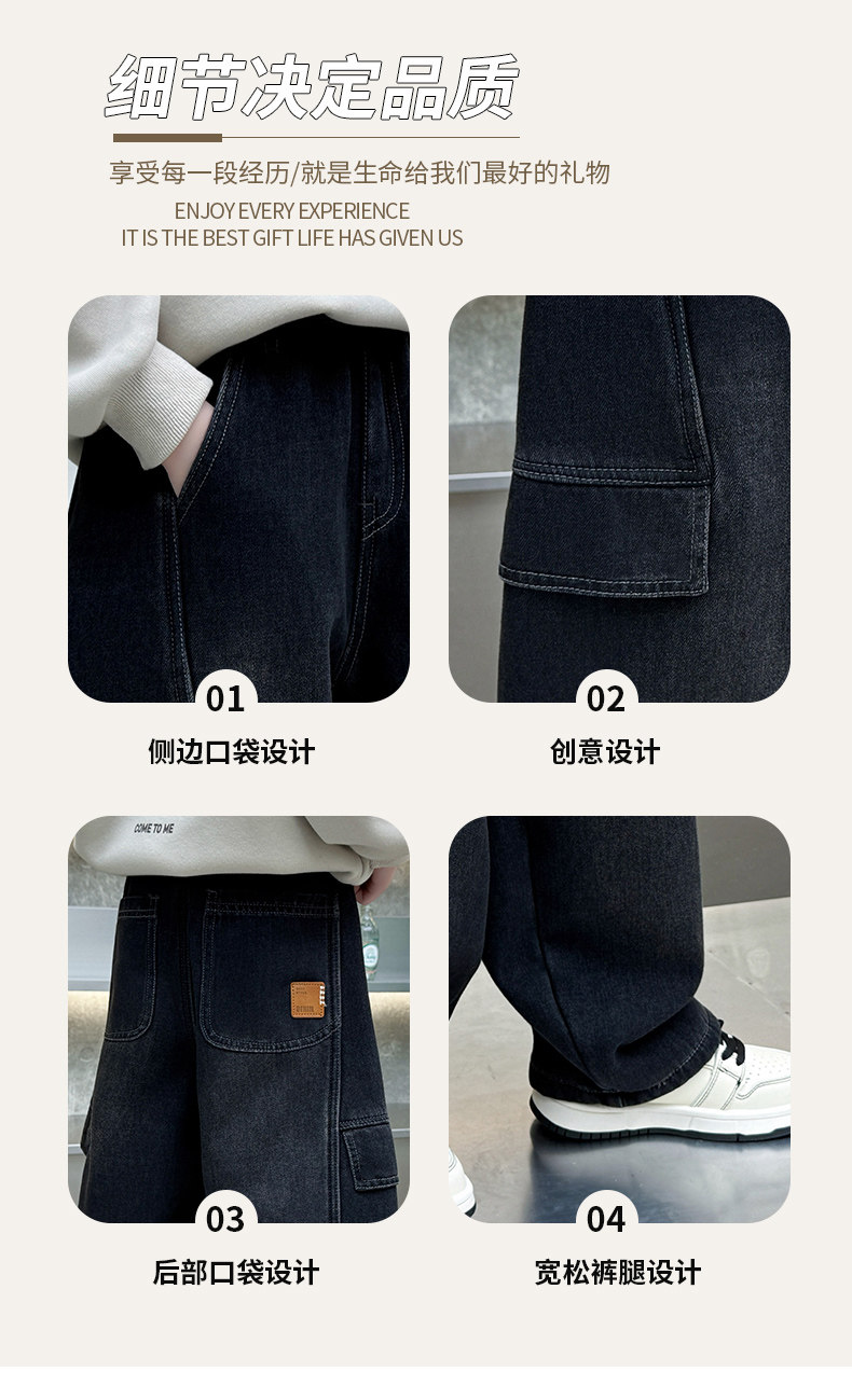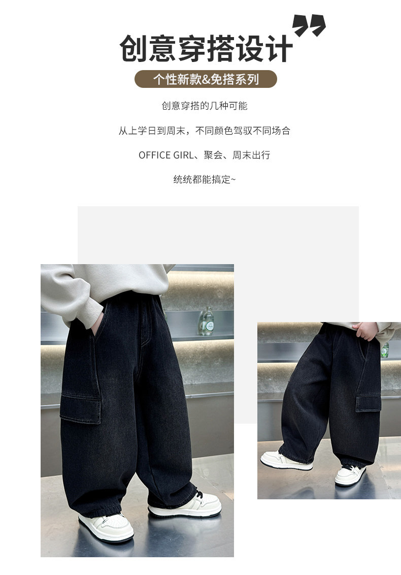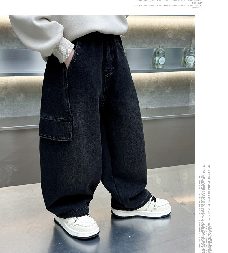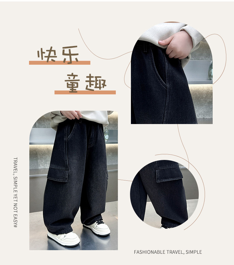 Boys' Jeans 2026 New Style Children's Spring and Autumn Loose Pants Little Boys Spring Fleece-Lined Thickened Straight-Leg Pants