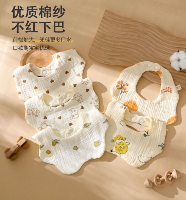 Autumn and Winter Baby Bibs Waterproof Petal-Shaped Pure Cotton Printed Korean Style 0-1-4 Years Old Newborn Baby Saliva Bibs Can Be Rotated