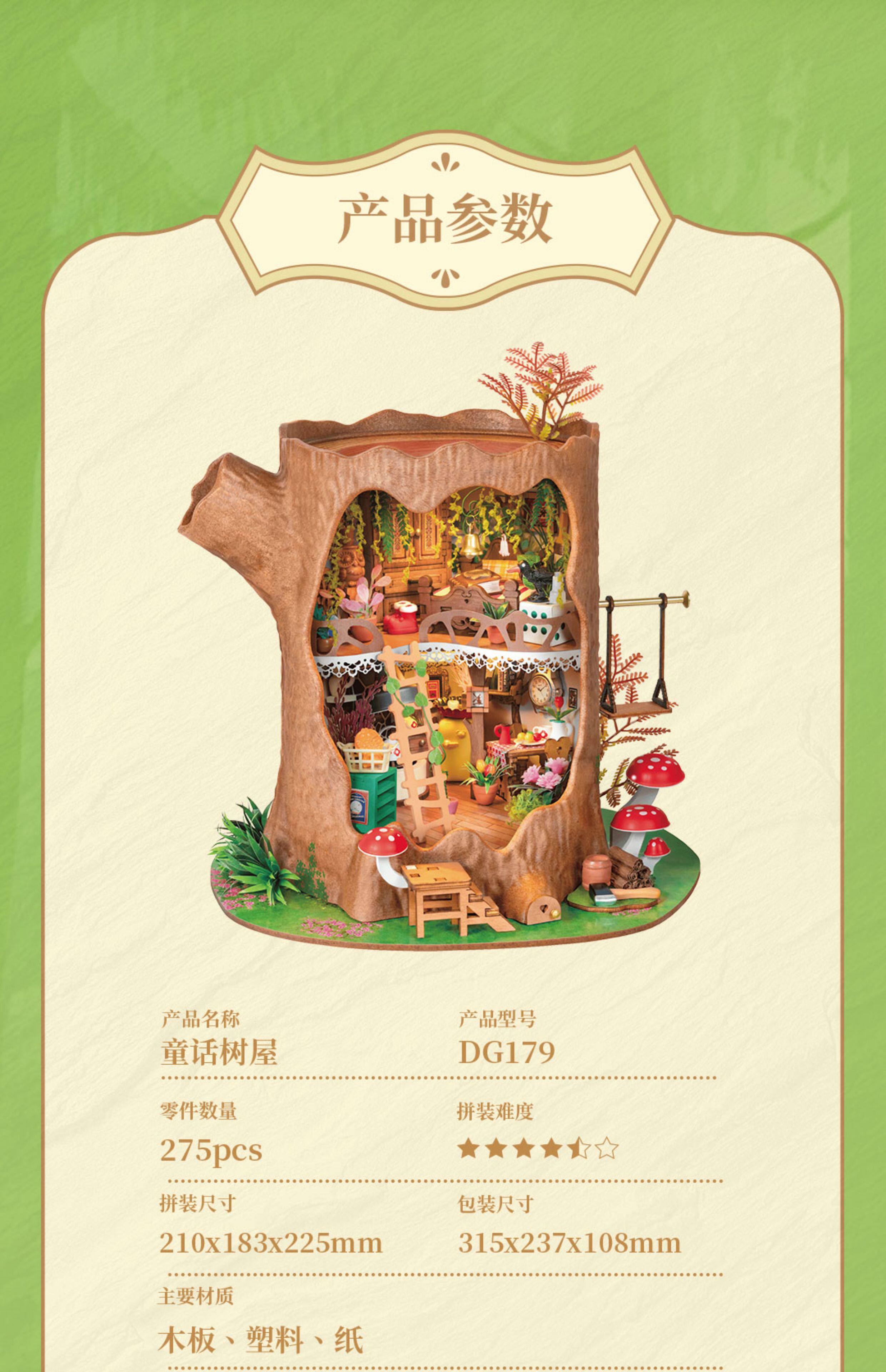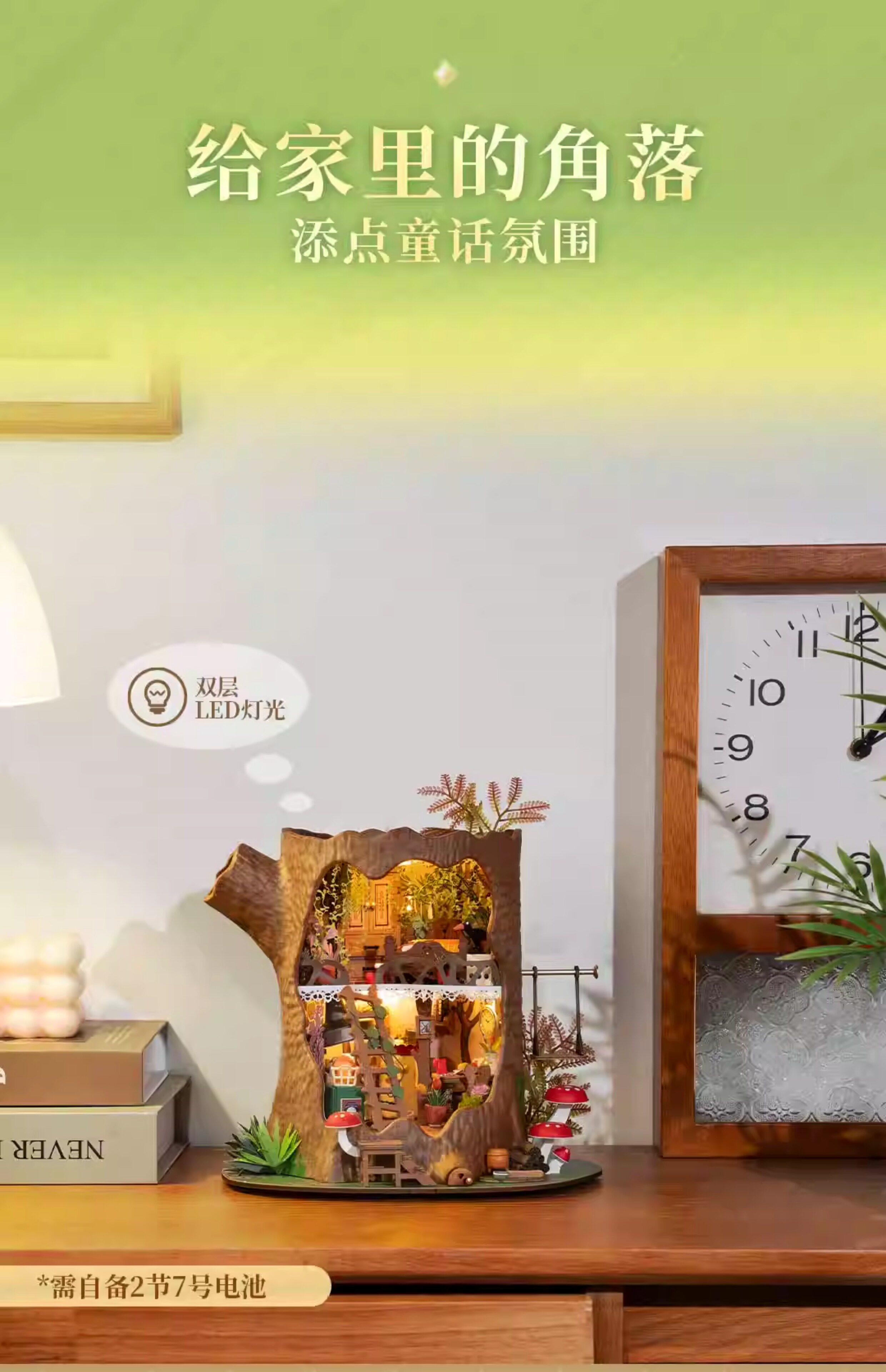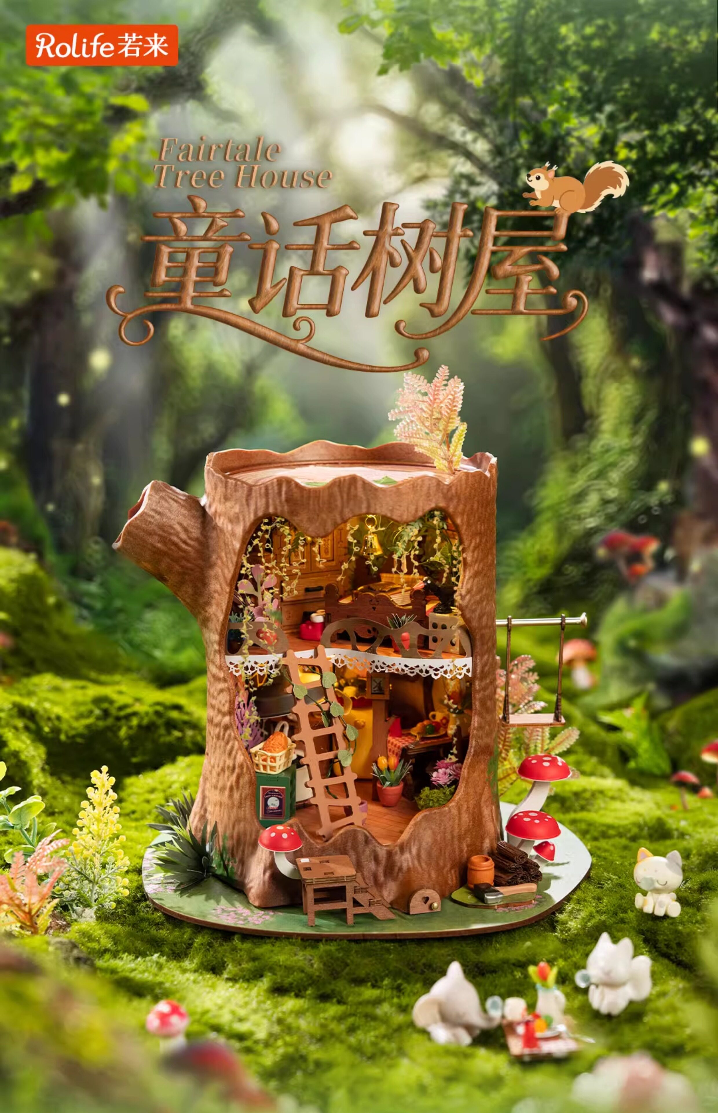 Rolife Ruolai fairy tree house diy cabin handmade miniature creative wooden assembly model building blocks gift for women