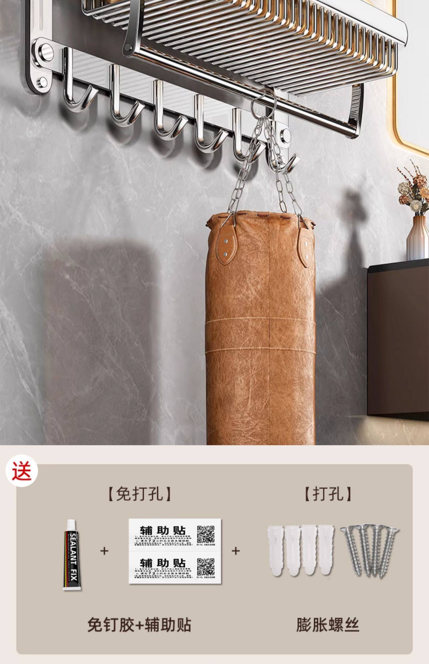 Perforated Stainless Steel Bathroom Towel Rack, Wall-Mounted Towel Bar, Bathroom Storage Rack, Bath Towel Holder
