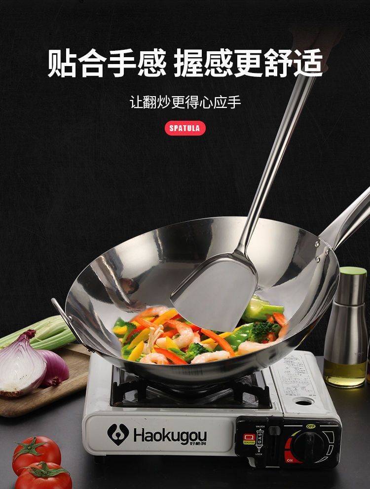 Stainless Steel Spatula for Commercial Chefs, Kitchen Cooking Spatula with Wooden Handle, Anti-Scalding, Large, Extended, and Thickened