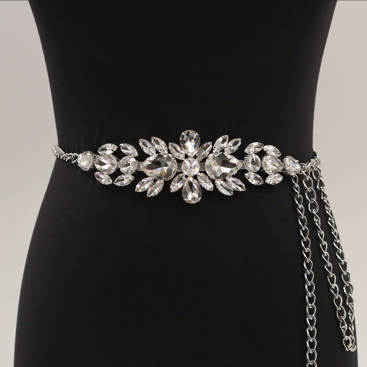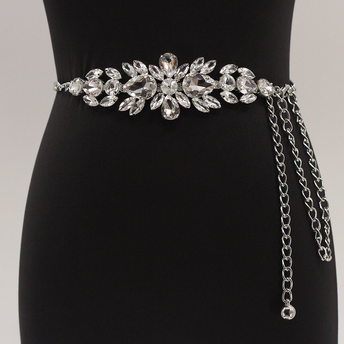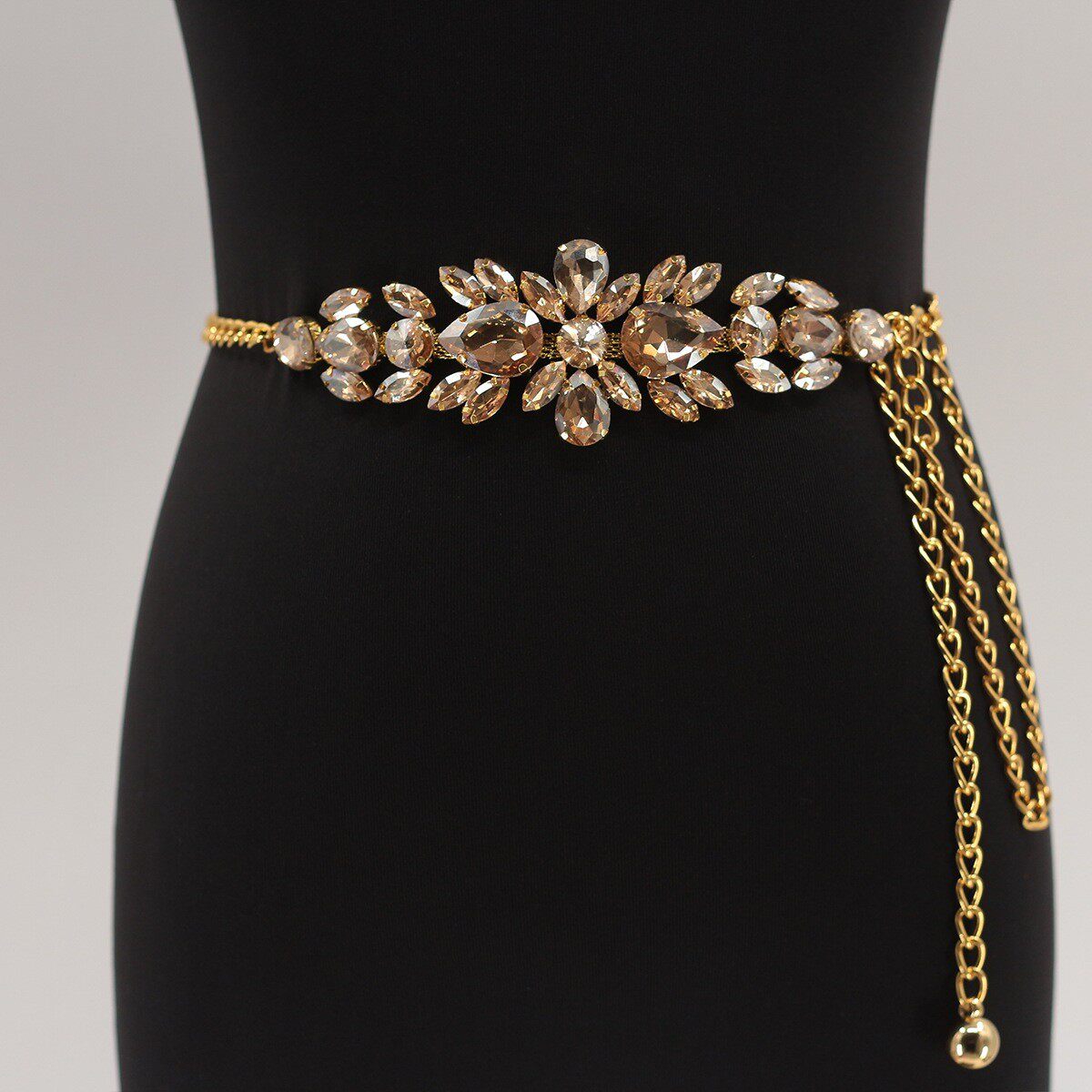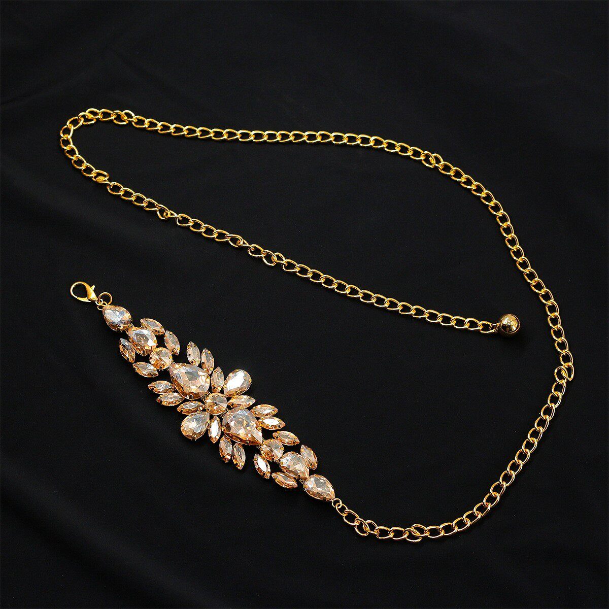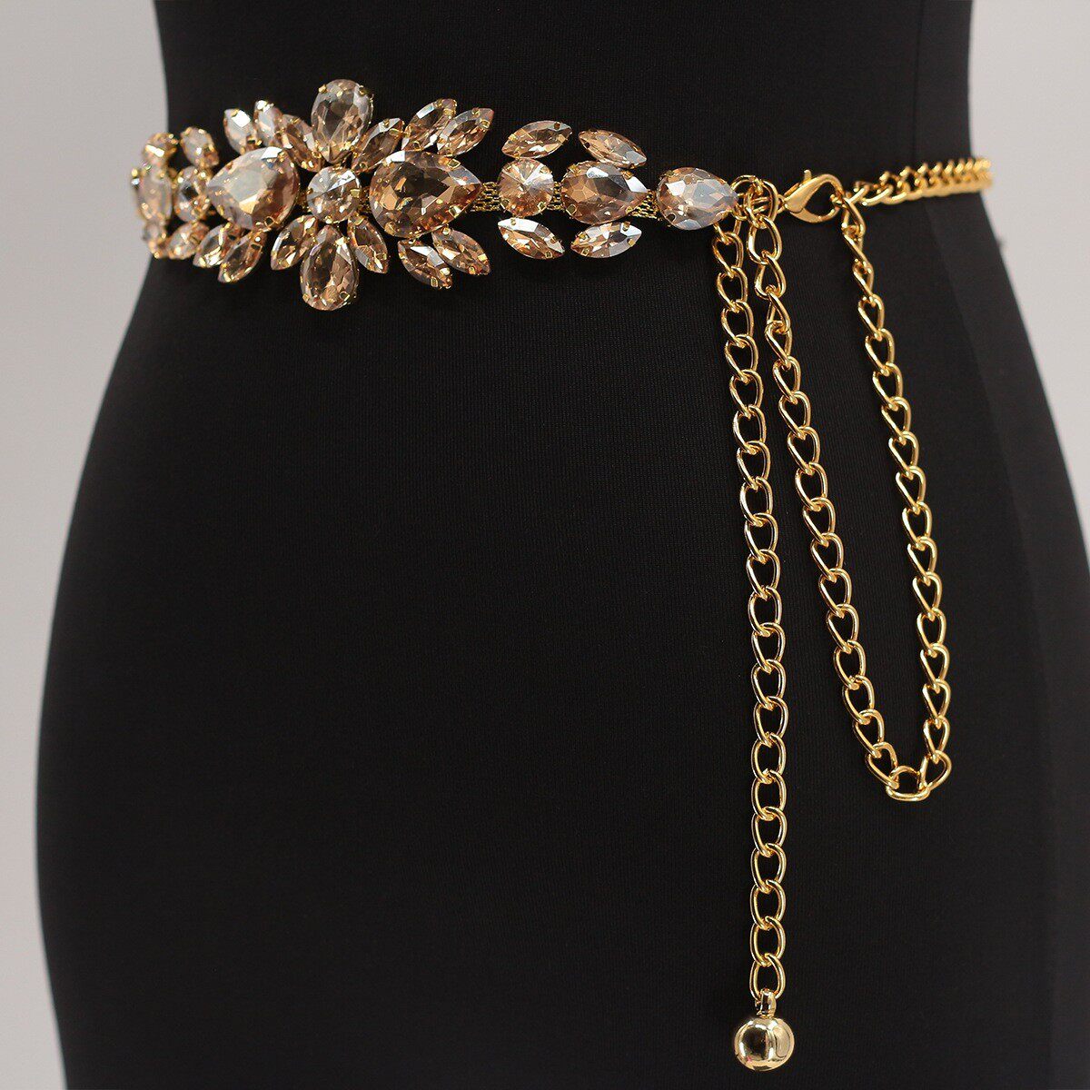 New Style Women's Rhinestone-Embellished Chain Belt, High-End Gold Waist Chain, Fashionable Dress and Evening Dress Accessories for Women