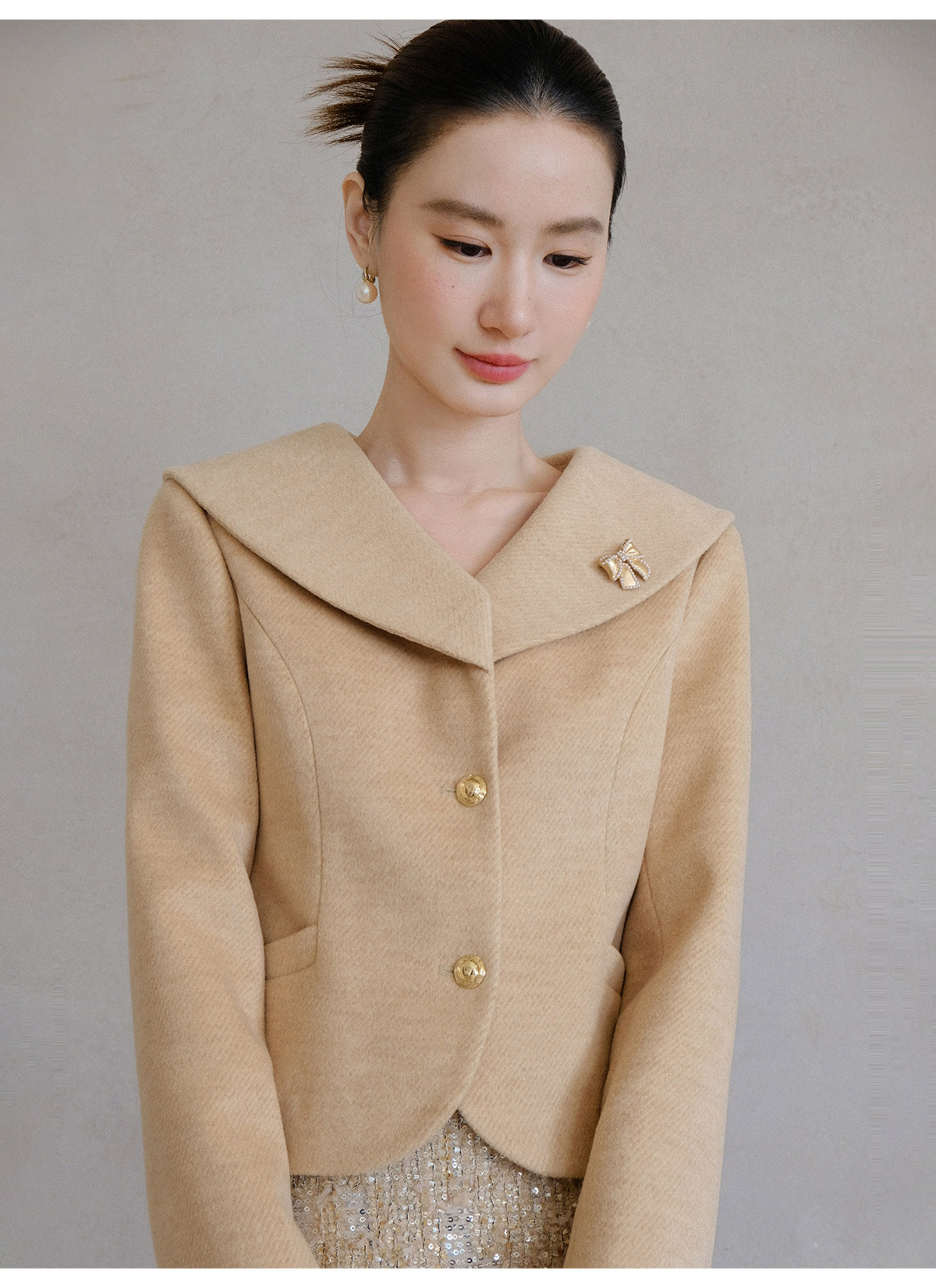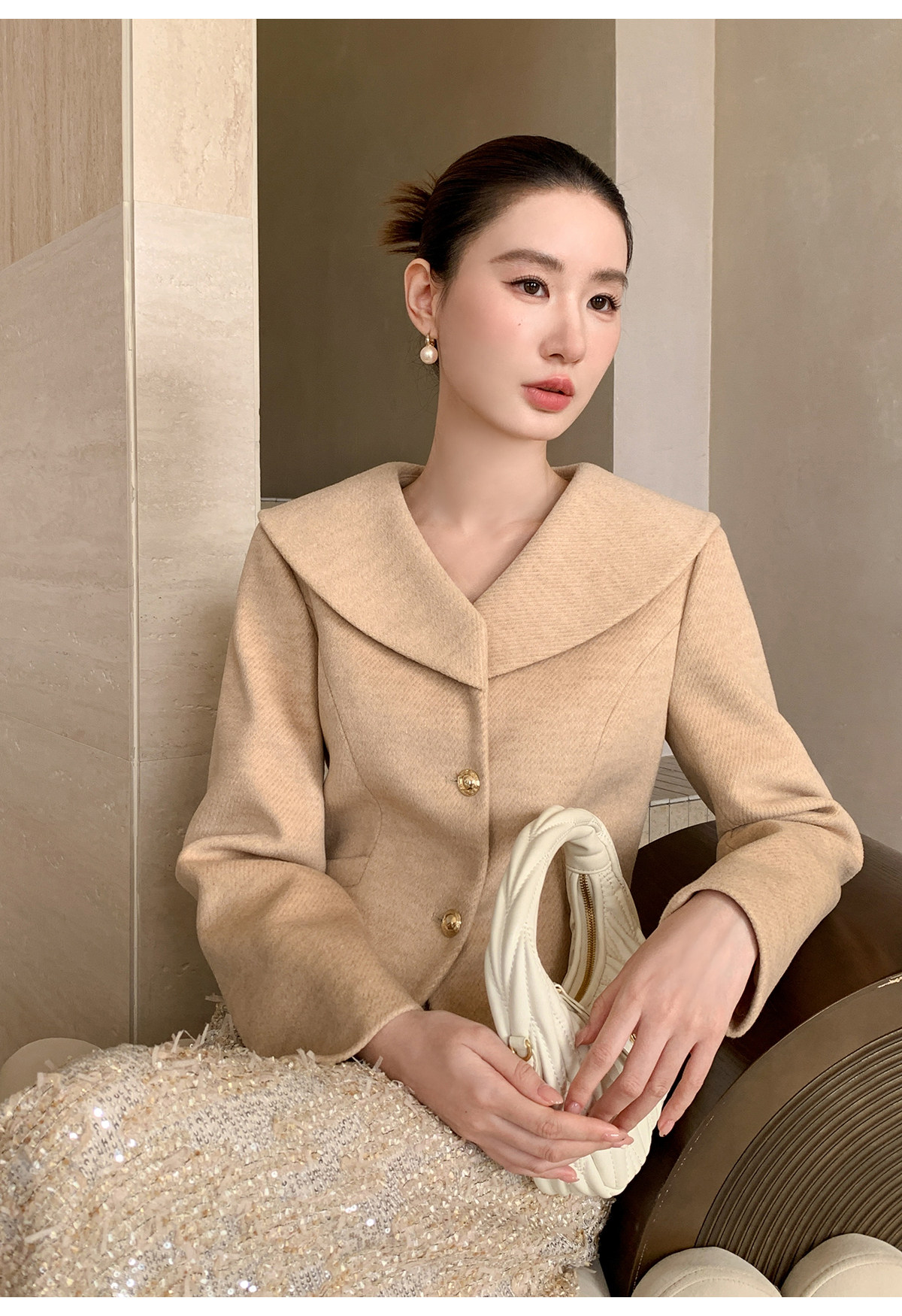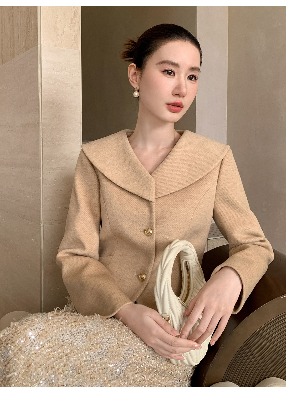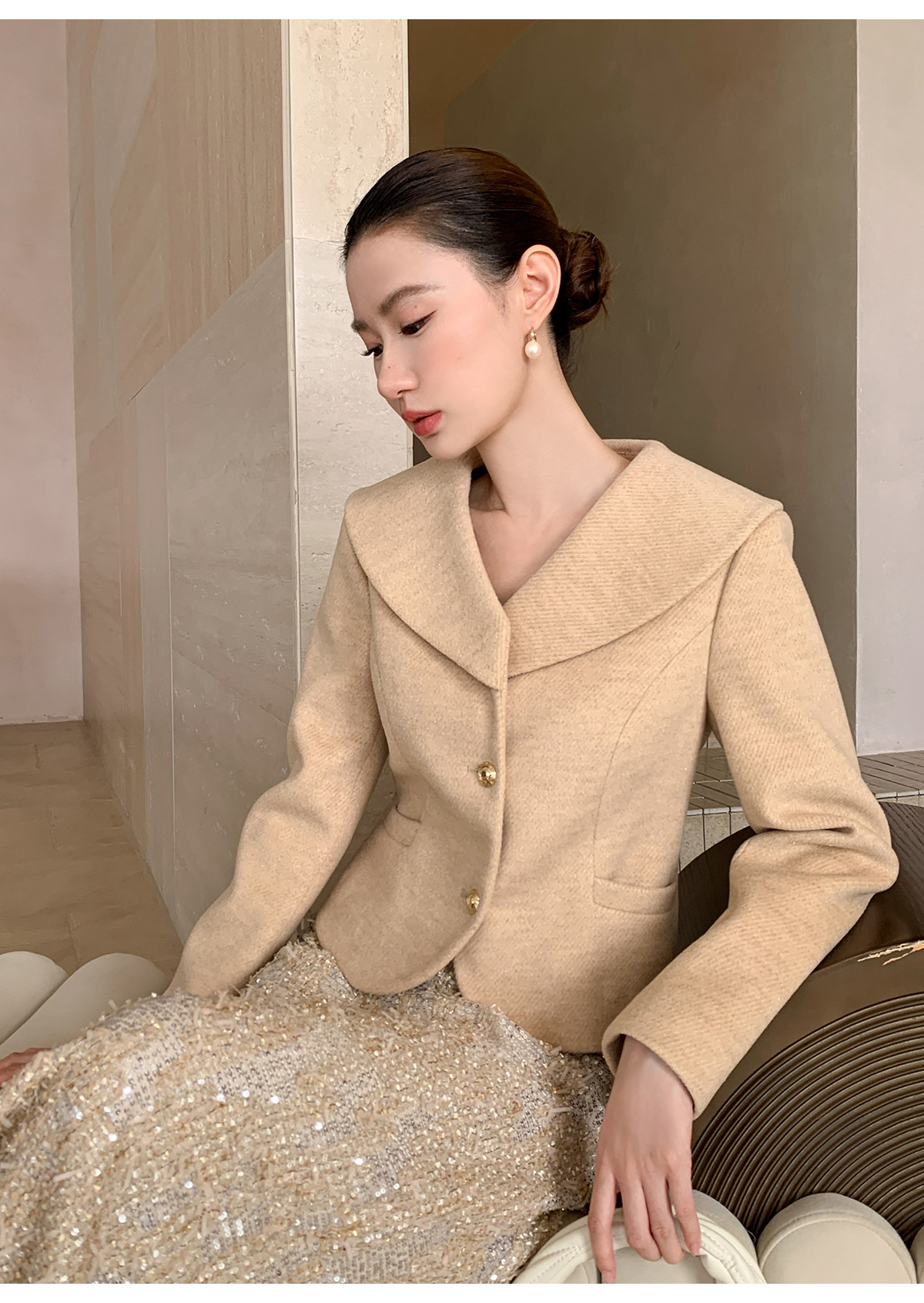 XXNING French retro large lapel small off-shoulder coat, high-end design, age-reducing short coat top