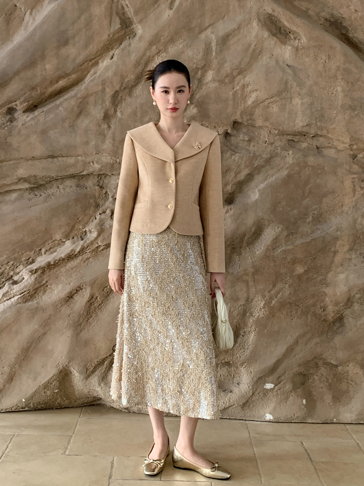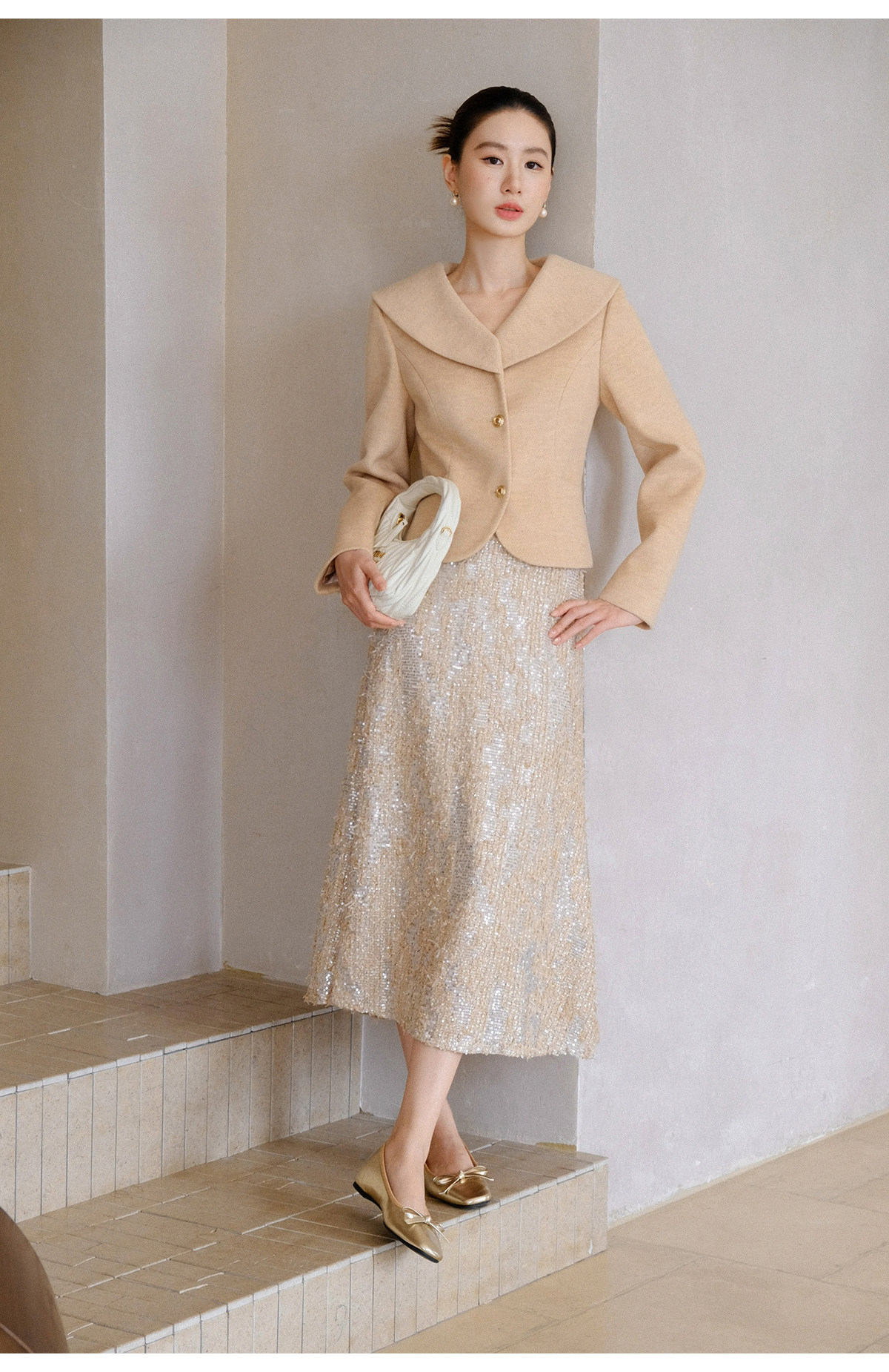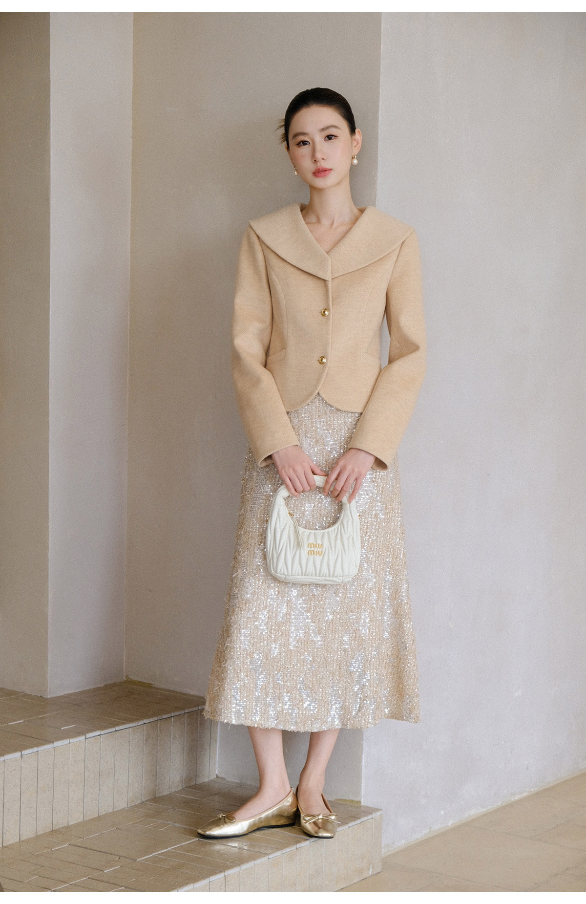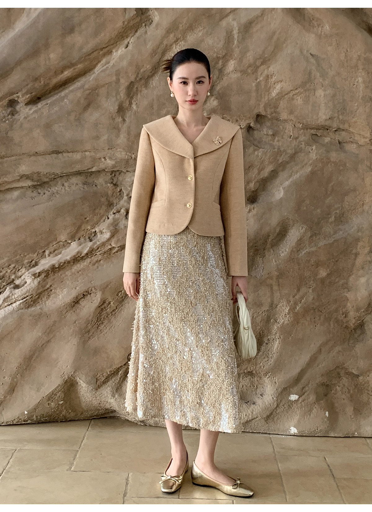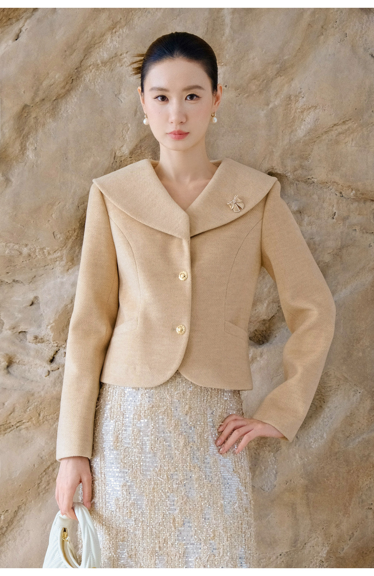 XXNING French retro large lapel small off-shoulder coat, high-end design, age-reducing short coat top
