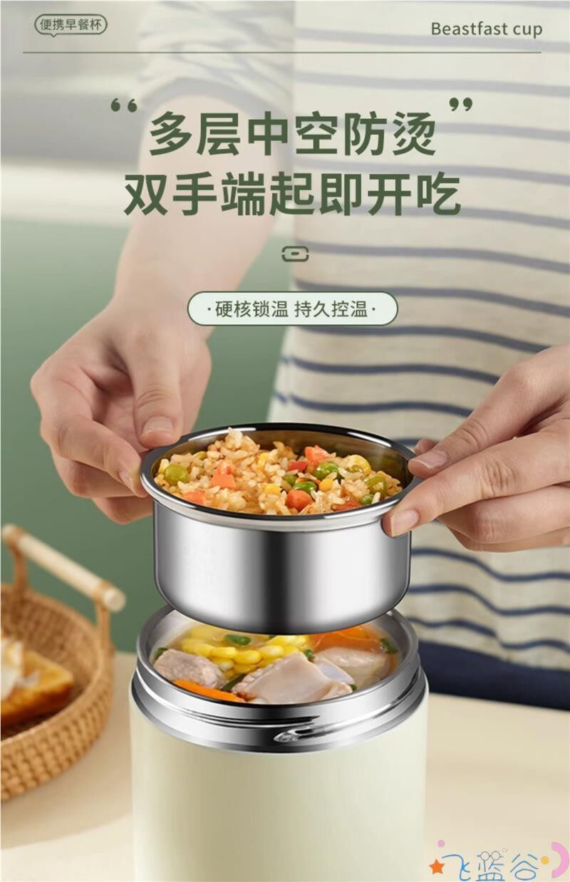 New Portable Stainless Steel Double-Layer Insulated Lunch Box for Students and Office Workers, Small Children's Porridge Cup