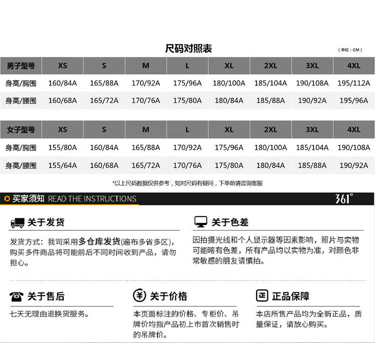 Size S/160,M/165,L/170,XL/175,2XL/180