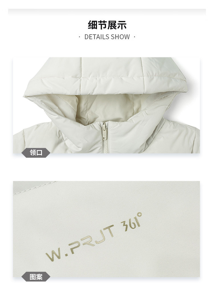 361 Degrees Women's down Jacket with Hood, Short Duck down Puffer Jacket, Windproof and Warm Top for Winter 56Z544302N