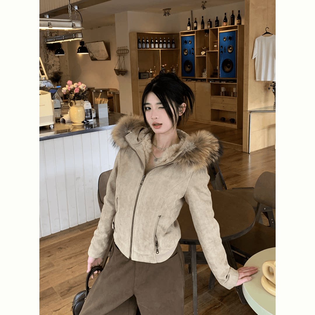 Fur collar hooded fashionable and versatile jacket, this year's most popular women's new sweatshirt, huge and beautiful, western-style top