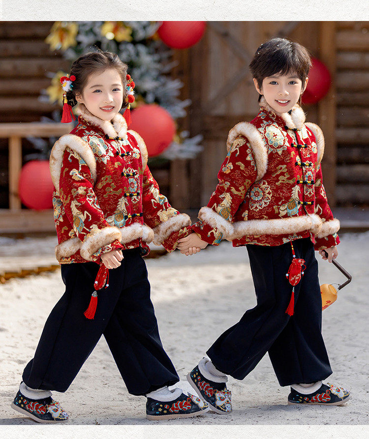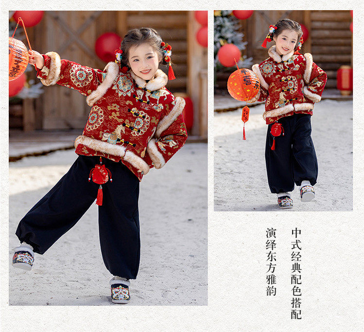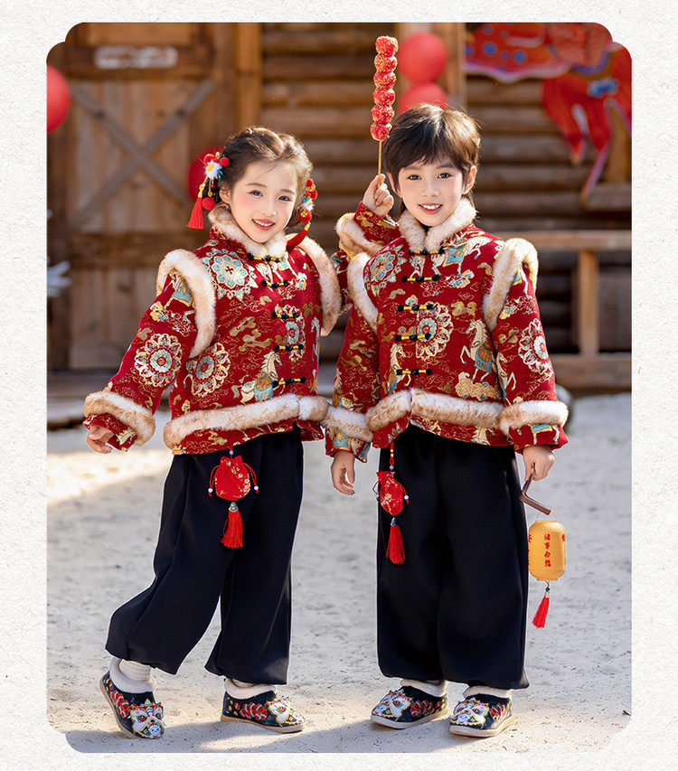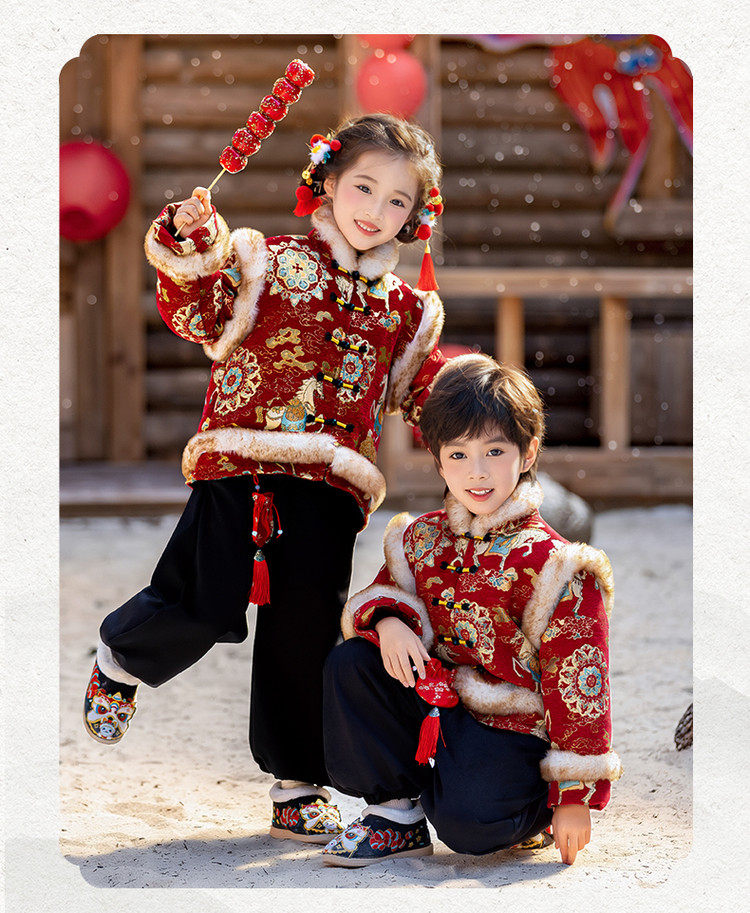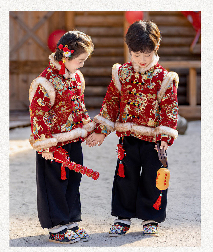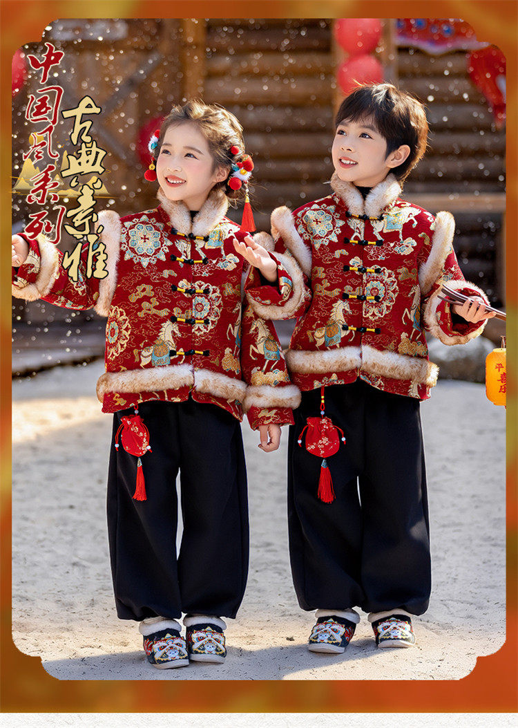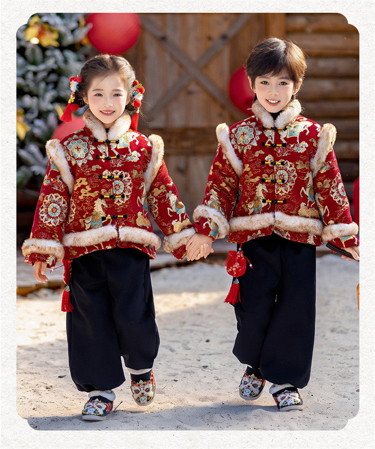 Boys' Hanfu and girls' New Year's Eve New Year's Eve New Year's Winter Thickened Children's Chinese Style Tang Suit One-Year-Old Dress Set