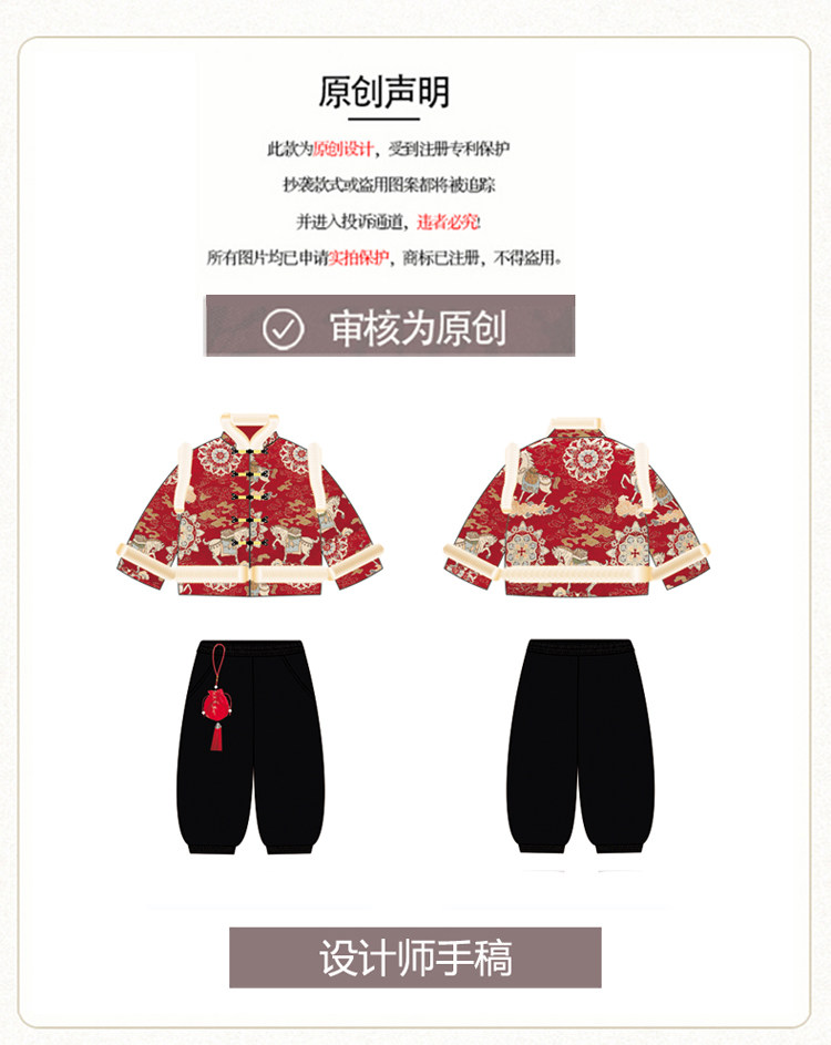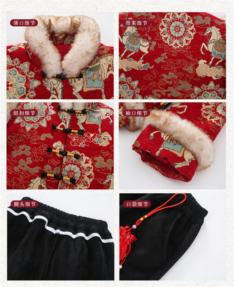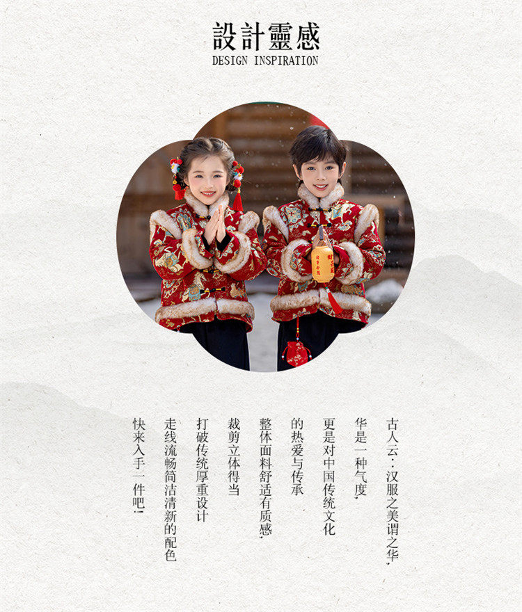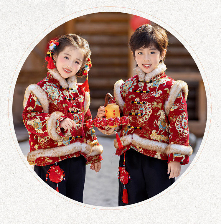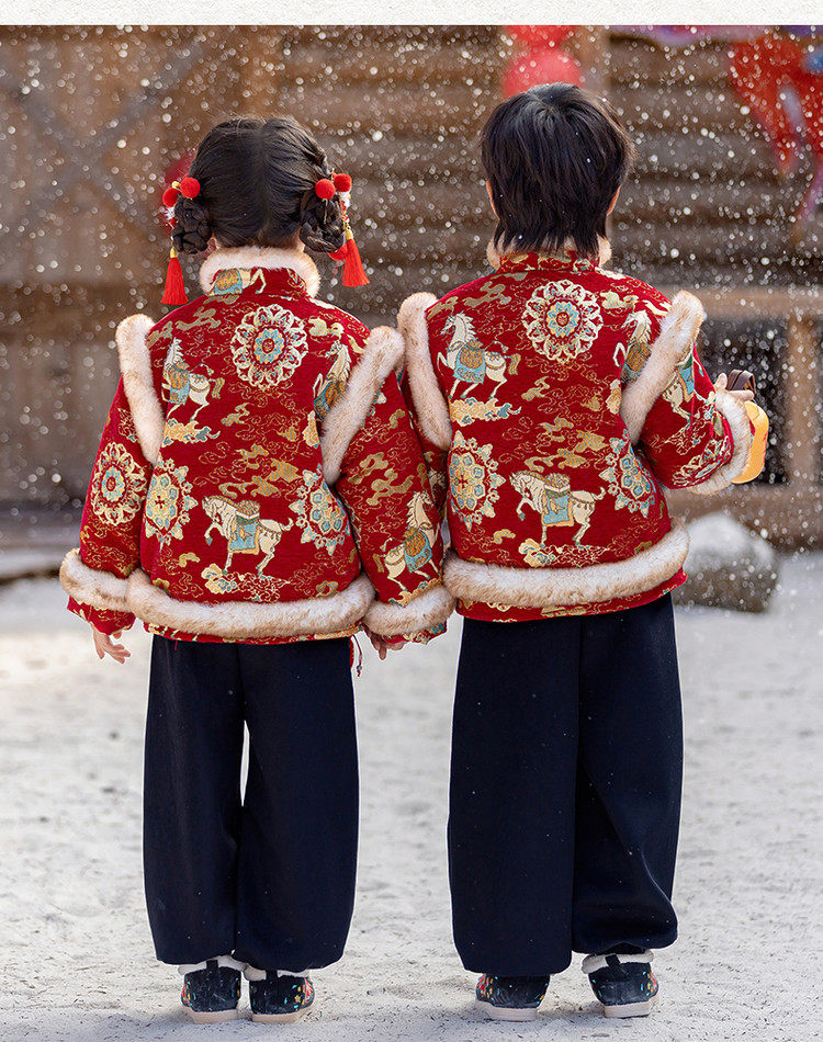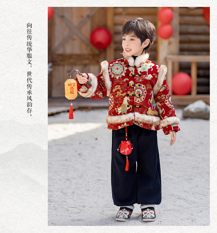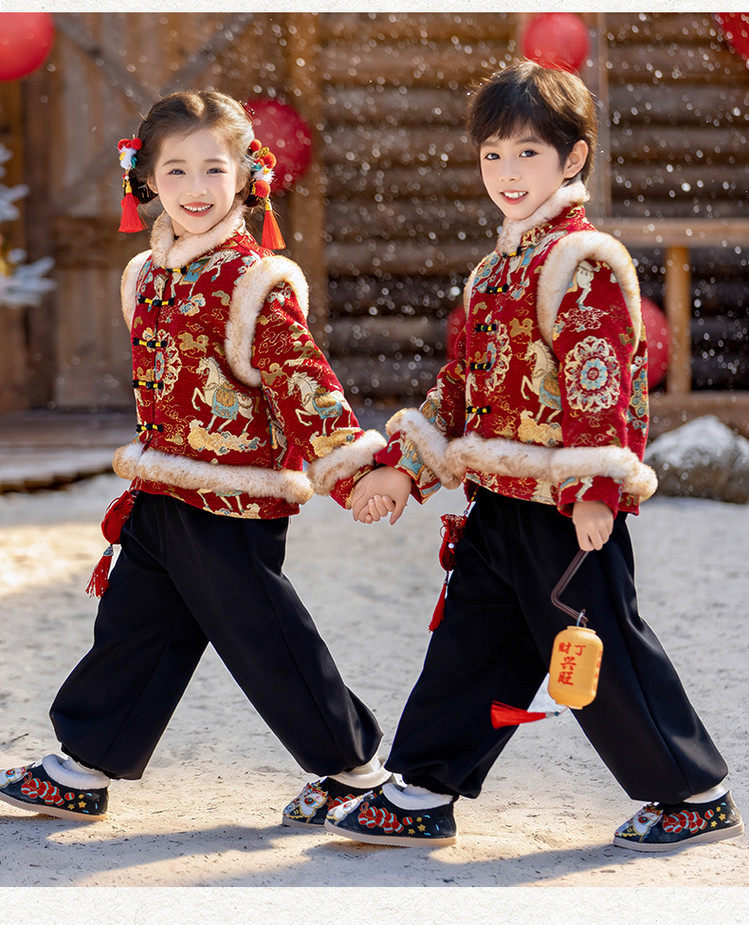 Boys' Hanfu and girls' New Year's Eve New Year's Eve New Year's Winter Thickened Children's Chinese Style Tang Suit One-Year-Old Dress Set