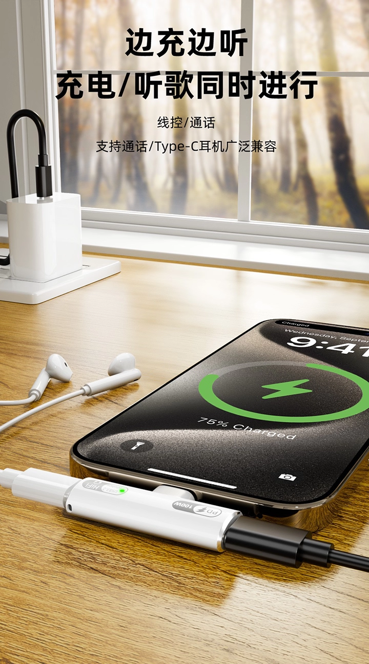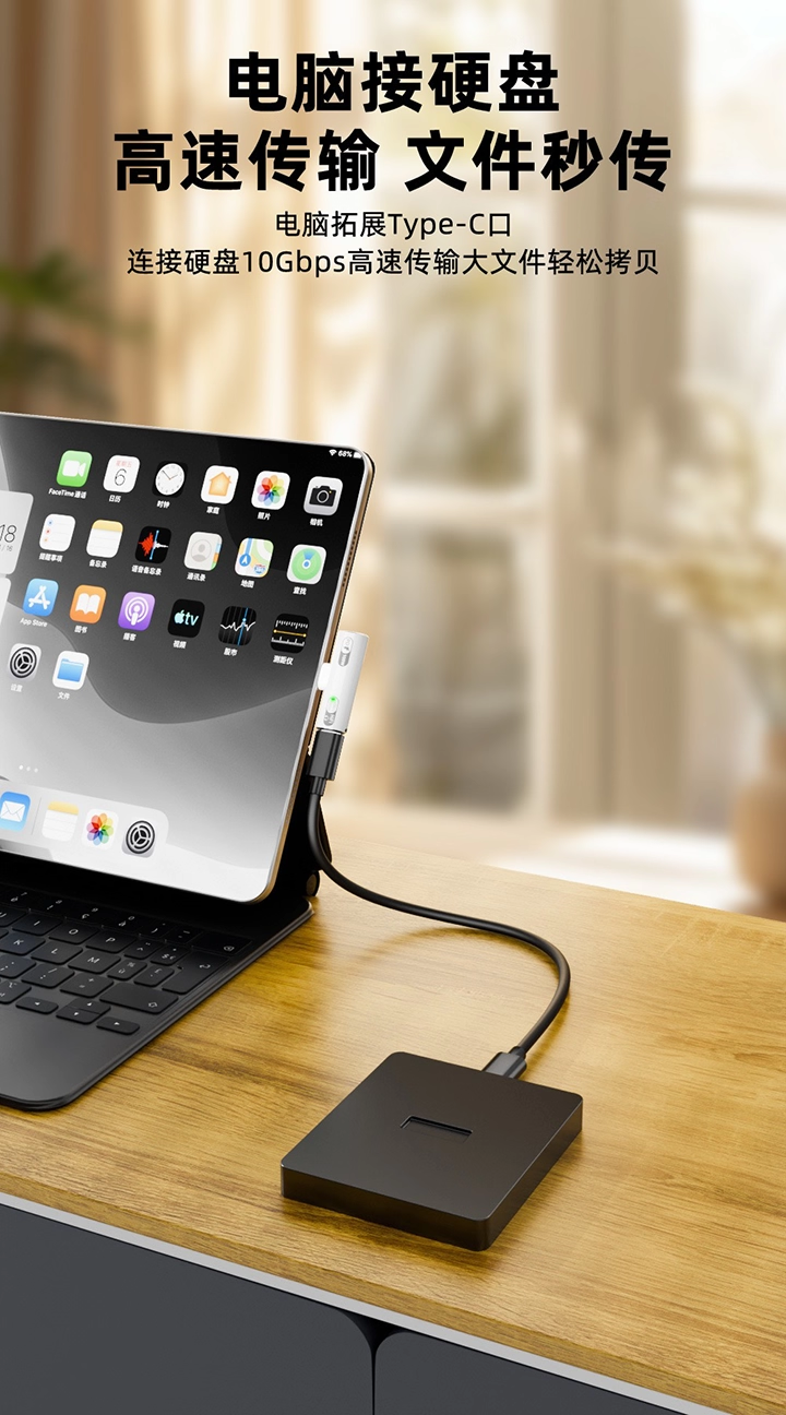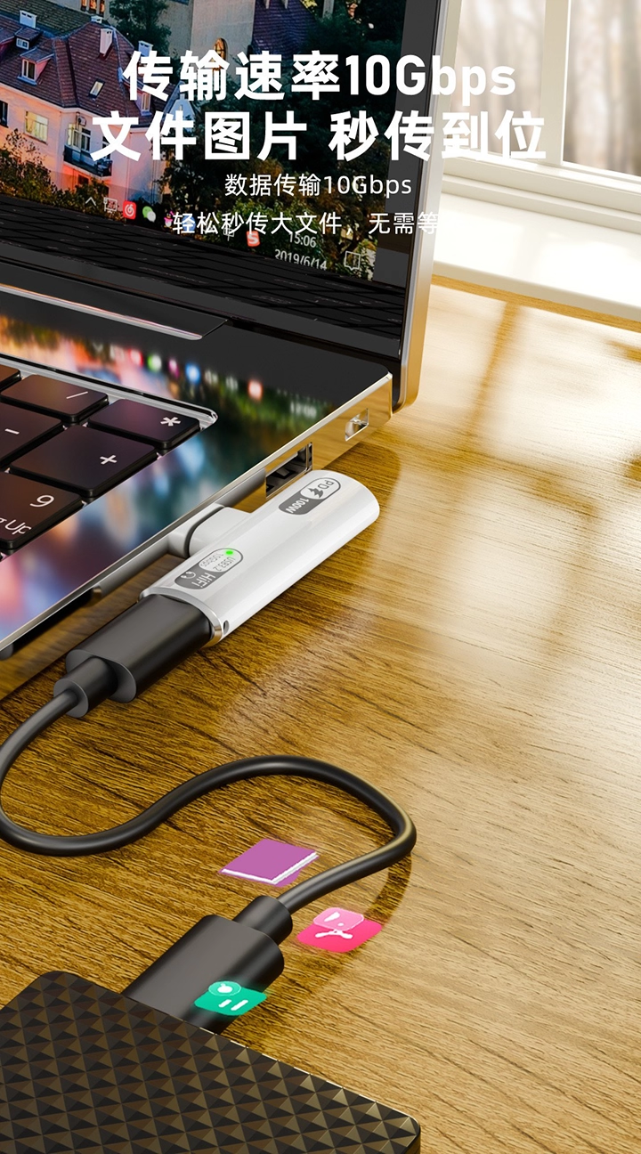 Pd100W Fast Charging Dual Type-C Two-In-One Headphone Adapter 10Gbps Transmission One-To-Two Otg Converter Tpc Hard Drive Box USB Flash Drive Suitable for Huawei Apple 16 iPhone 15 Mobile Phone iPad