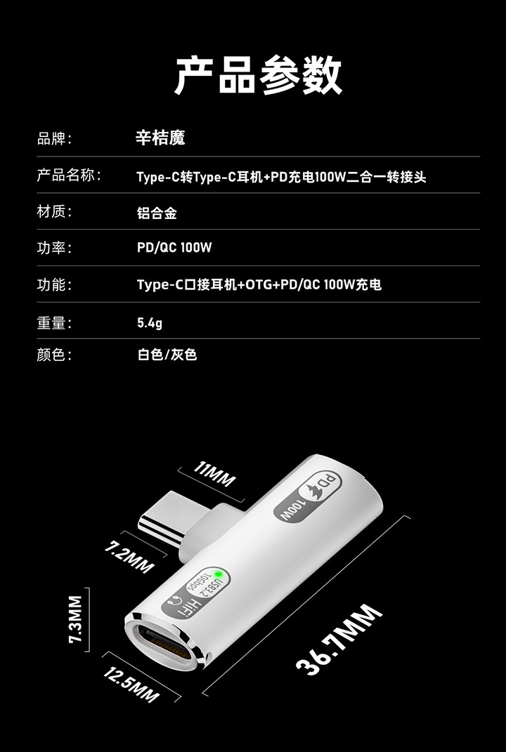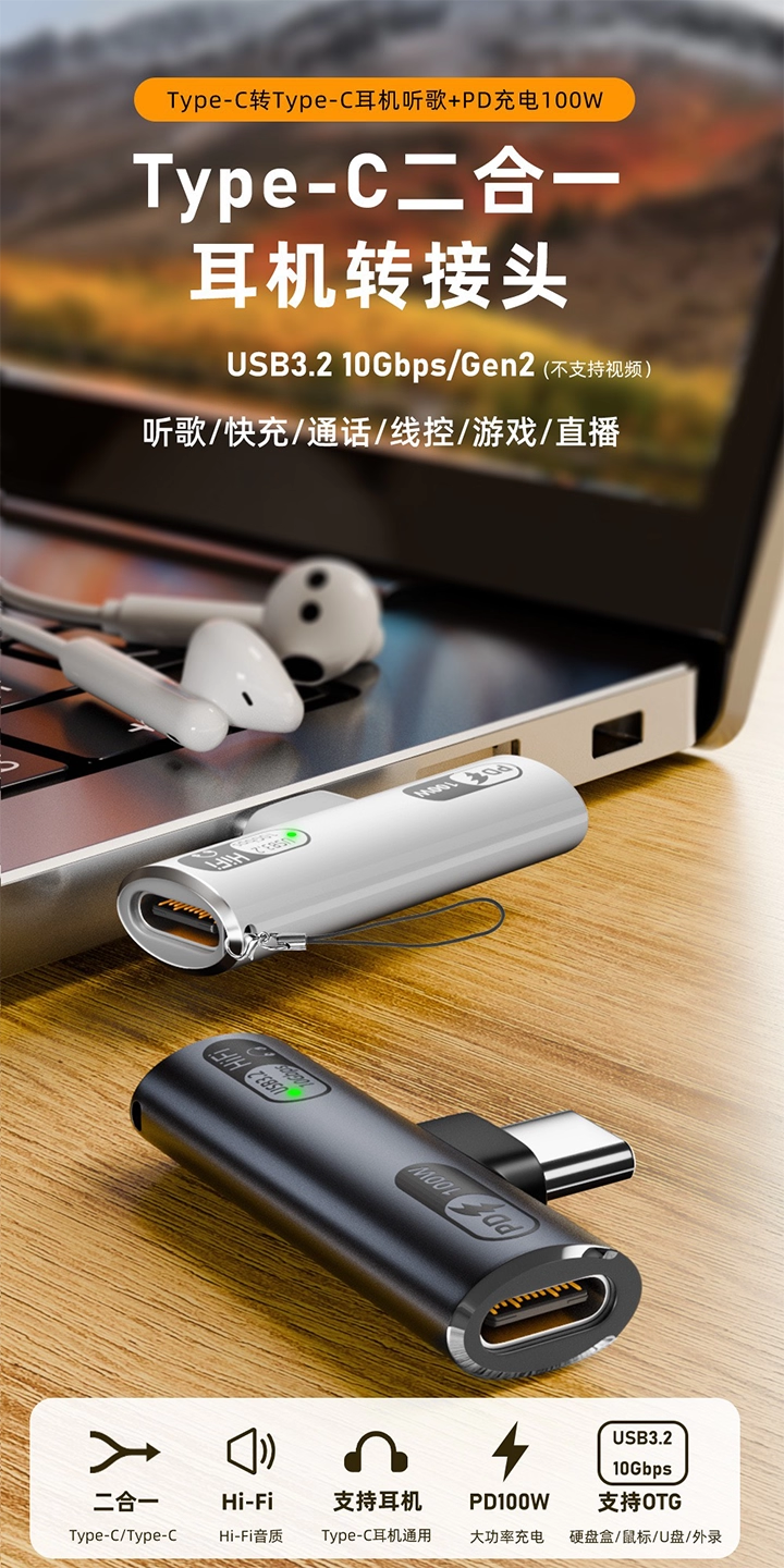 Color Classification Newly Upgraded Usb3.2 Type-C One-To-Two Headphone Adapter★10 Gbps/Pd 100W●White Silver Mouth,Newly Upgraded Usb3.2 Type-C One-To-Two Headphone Adapter ★ 10 Gbps/Pd 100W ● Gray Silver Mouth