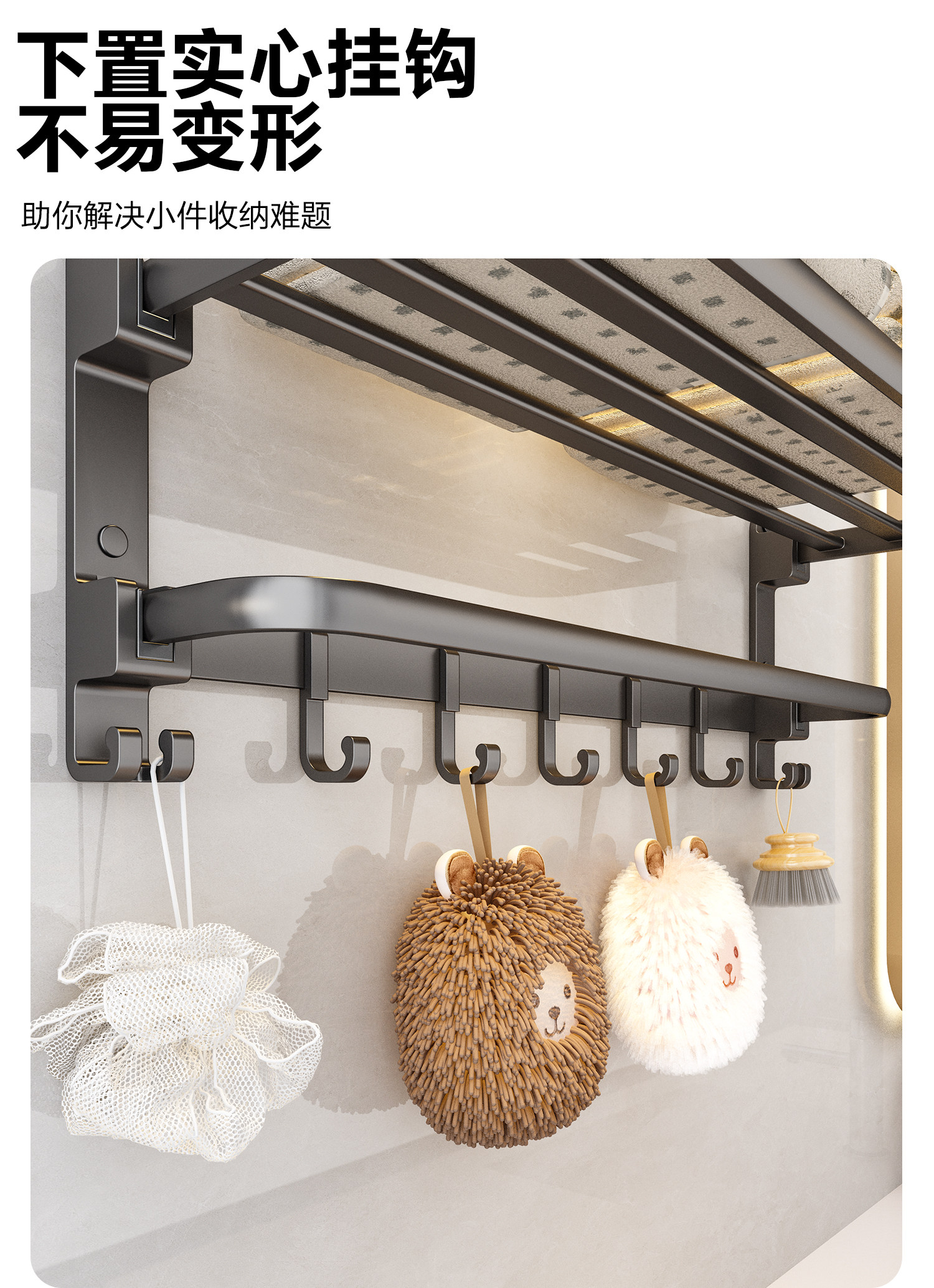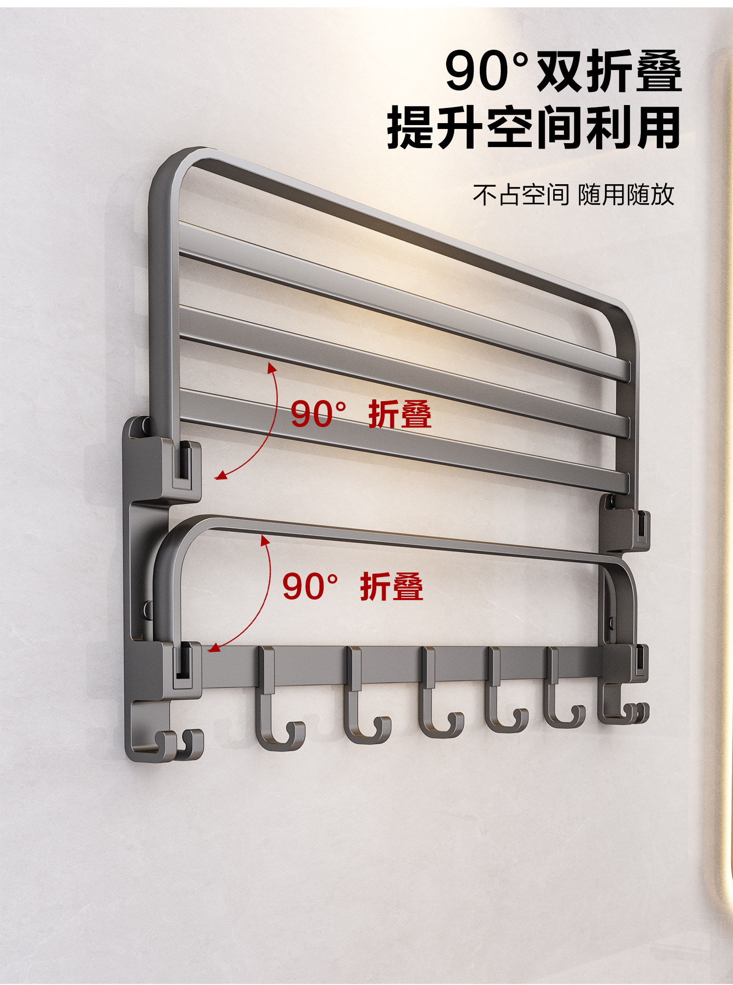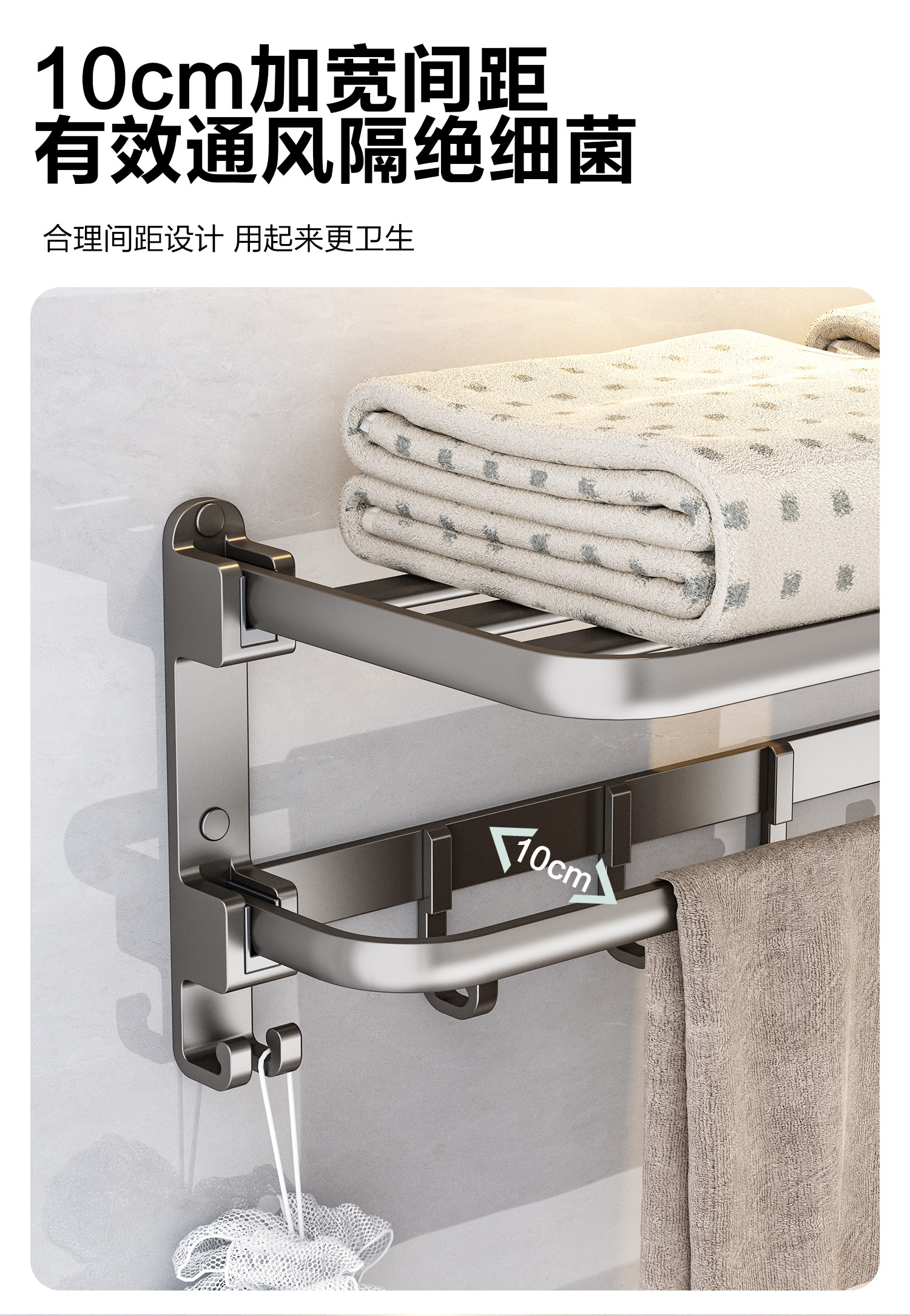 Bath Towel Rack, Bathroom Towel Rack, Foldable Towel Bar, Wall-Mounted Towel Holder for Bathroom, Towel Rack Storage Shelf