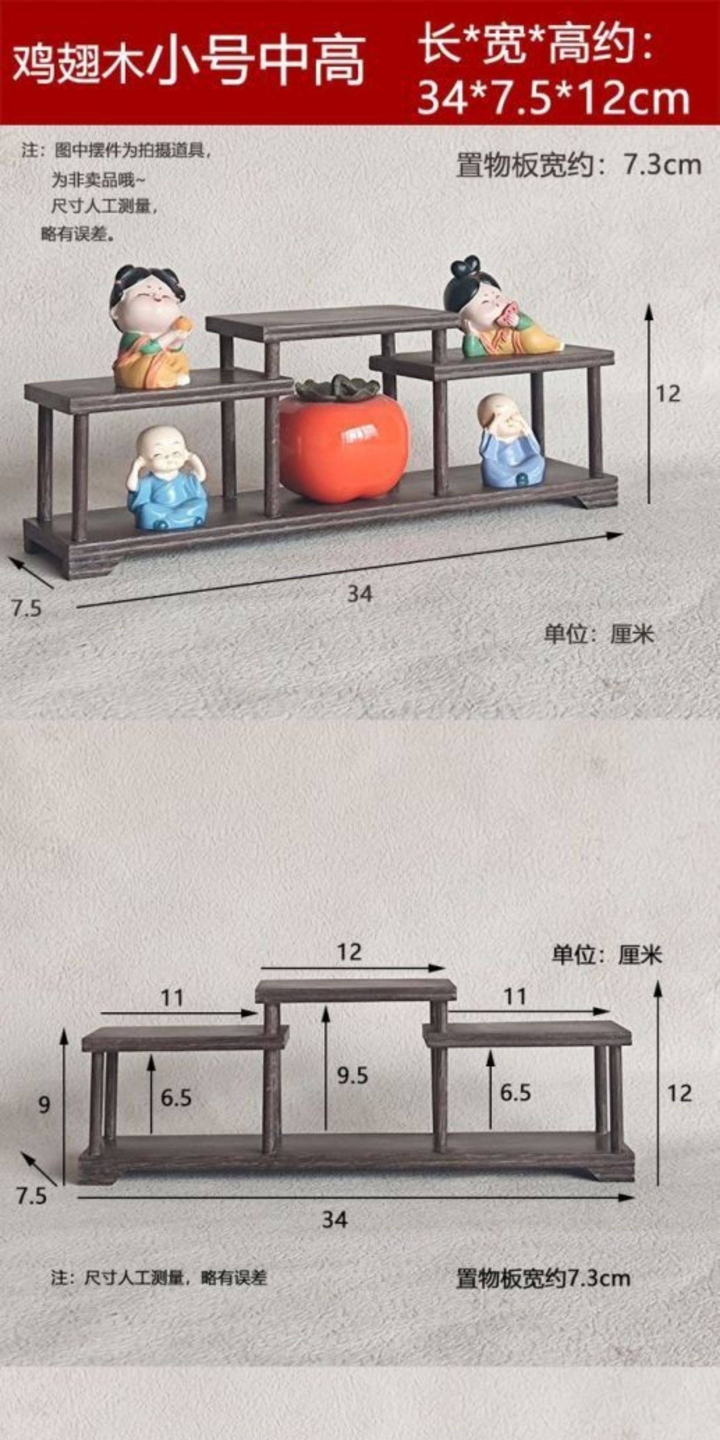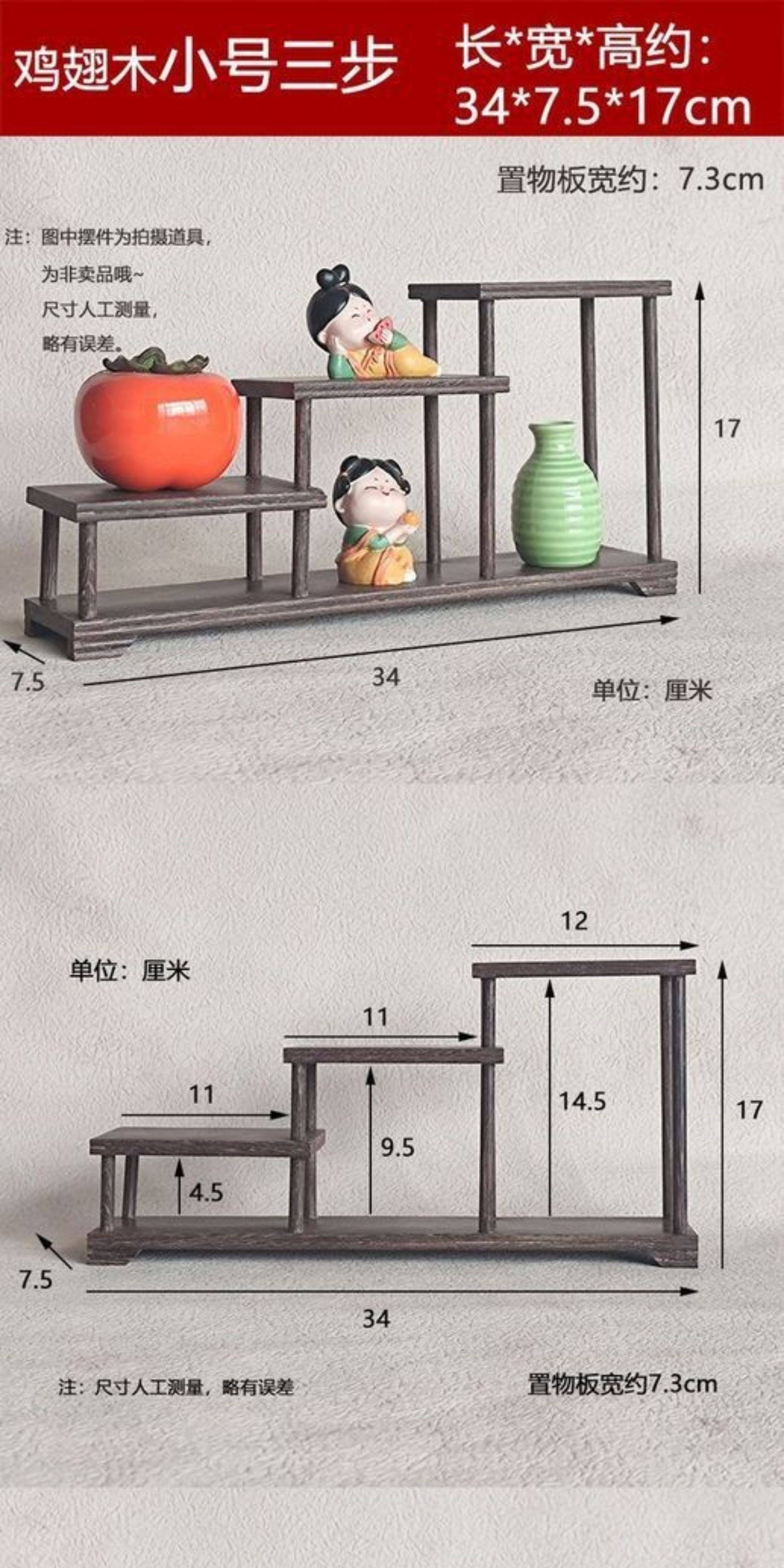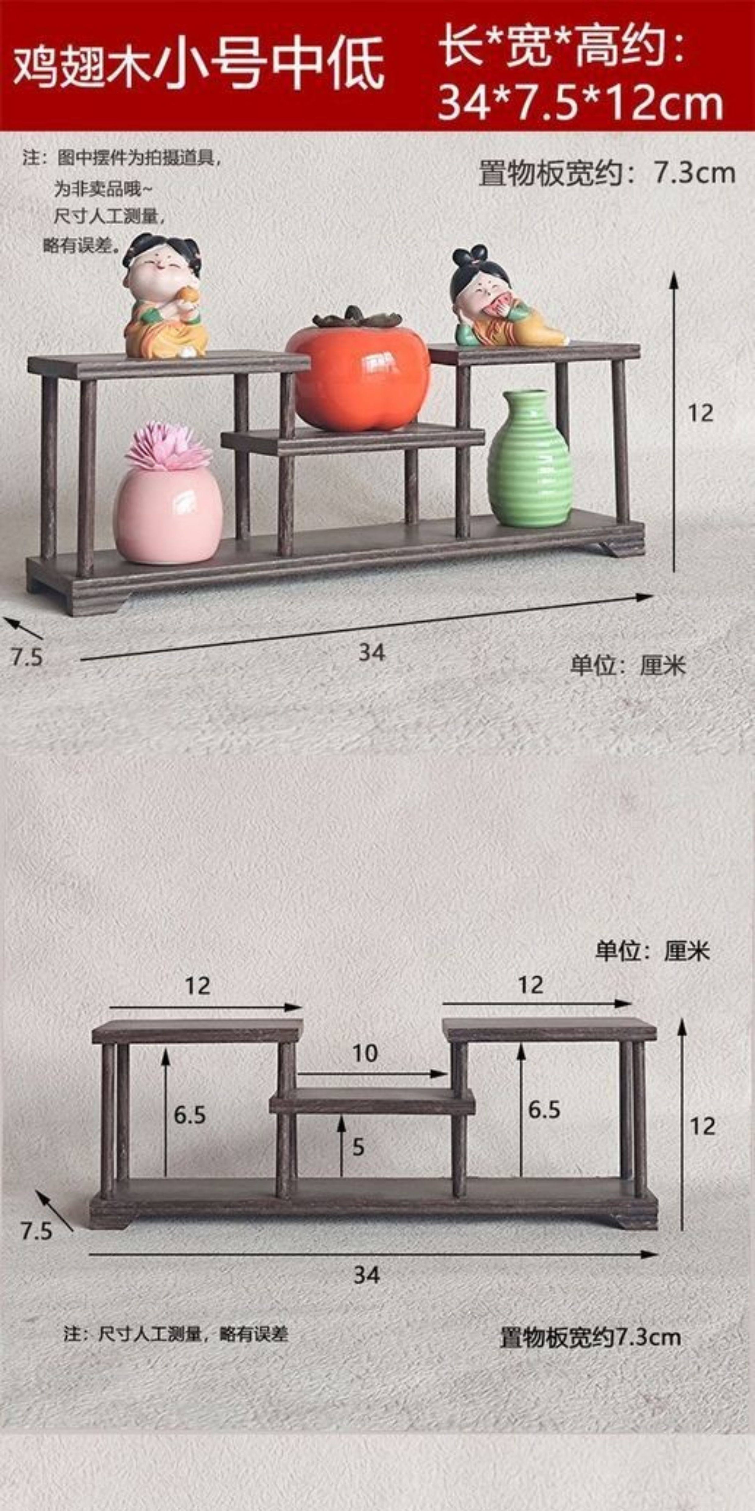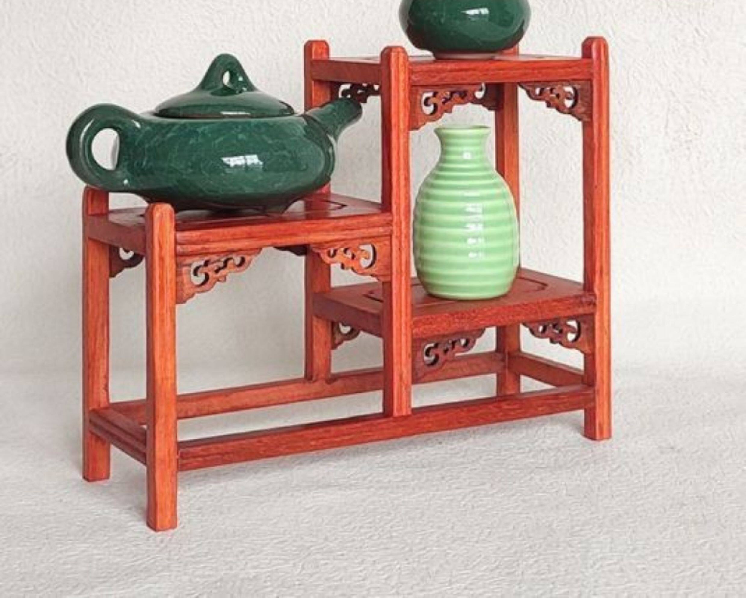 Chicken-Wing Wood Display Shelf, Chinese-Style Small Multi-Purpose Shelf, Tea Set Rack, Solid Wood Storage Rack, Teapot Rack, Ornament Rack, Display Stand