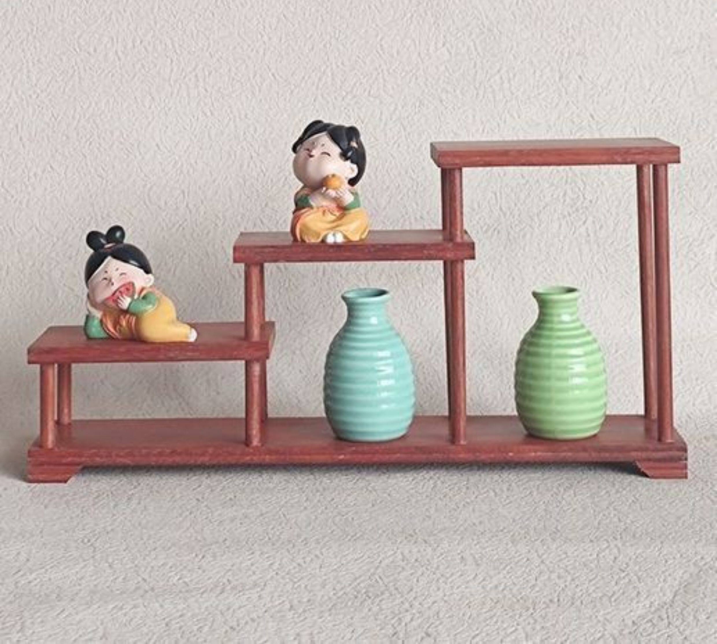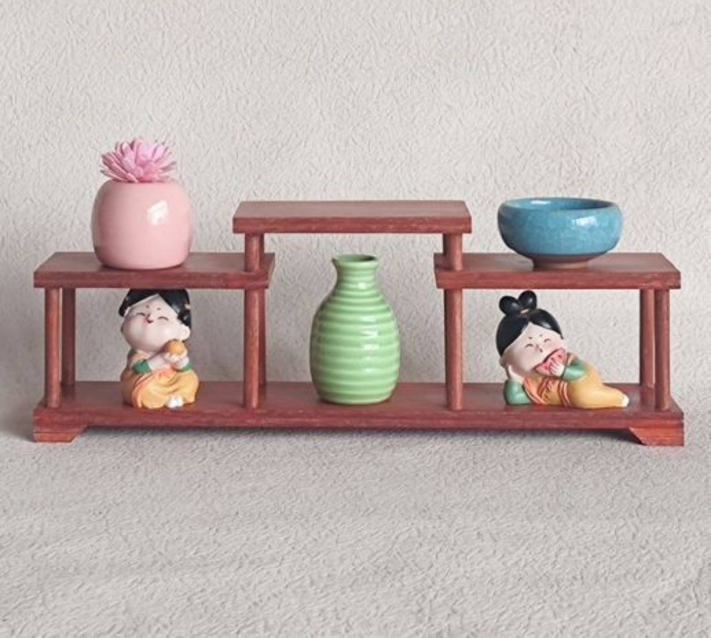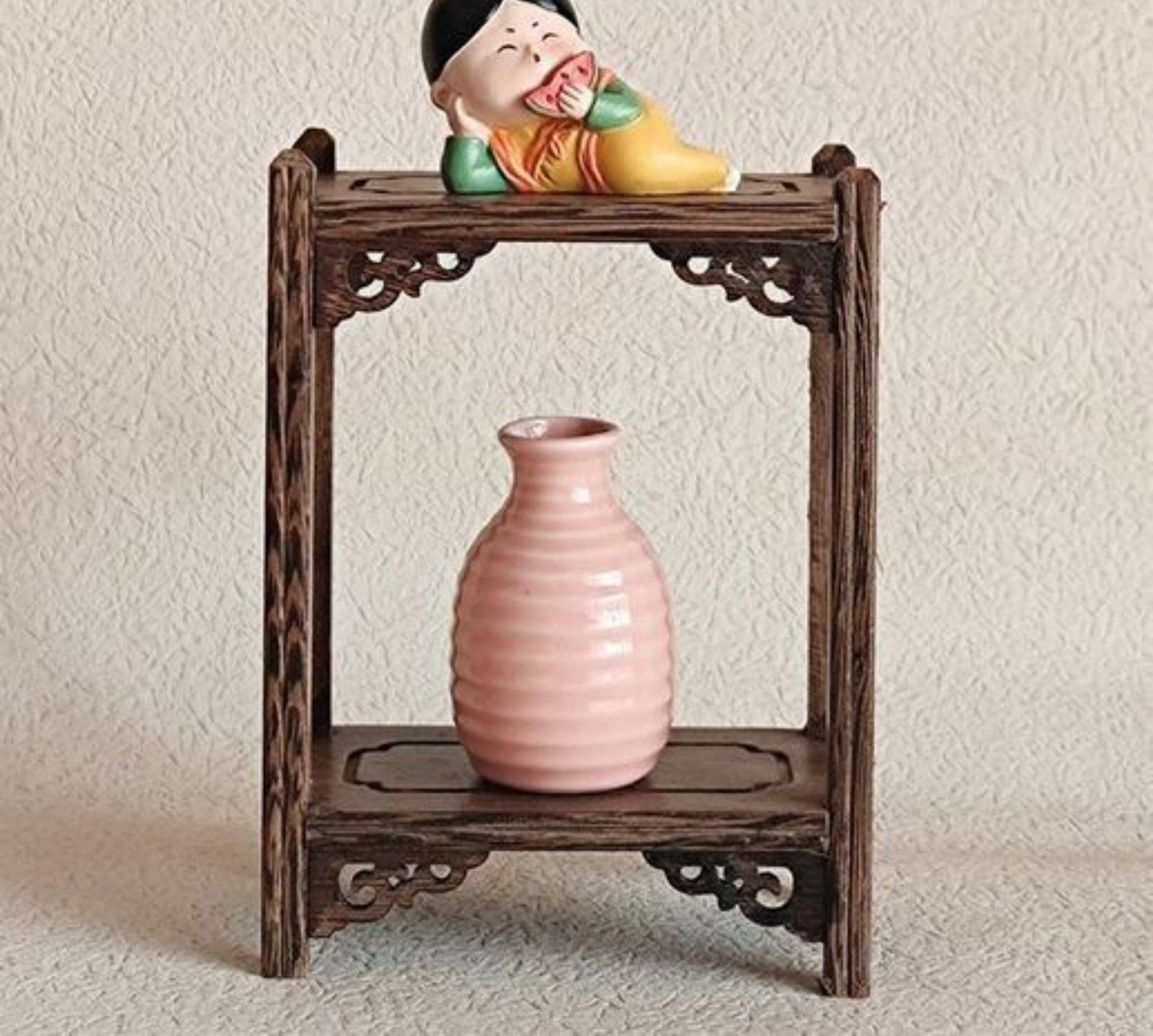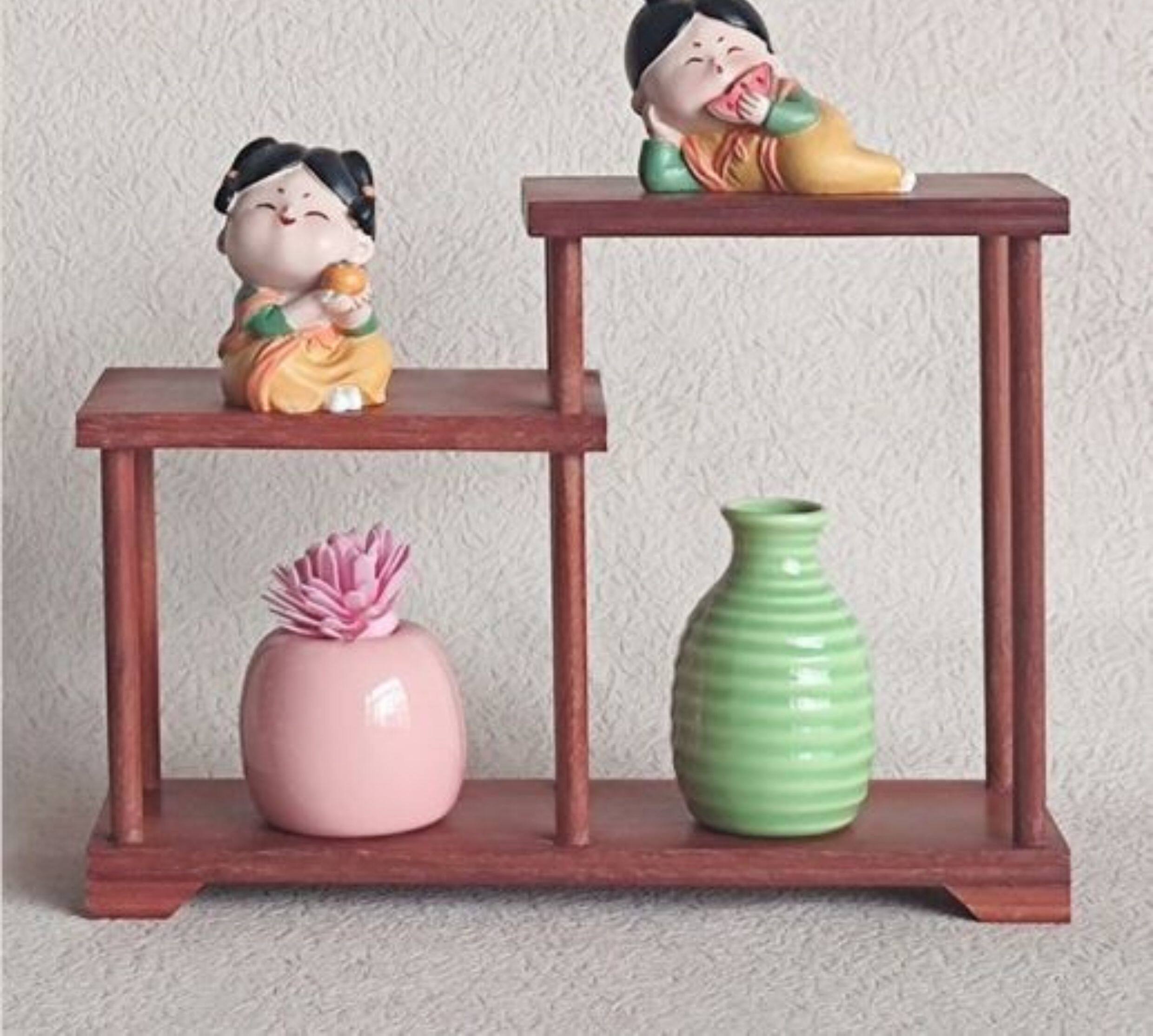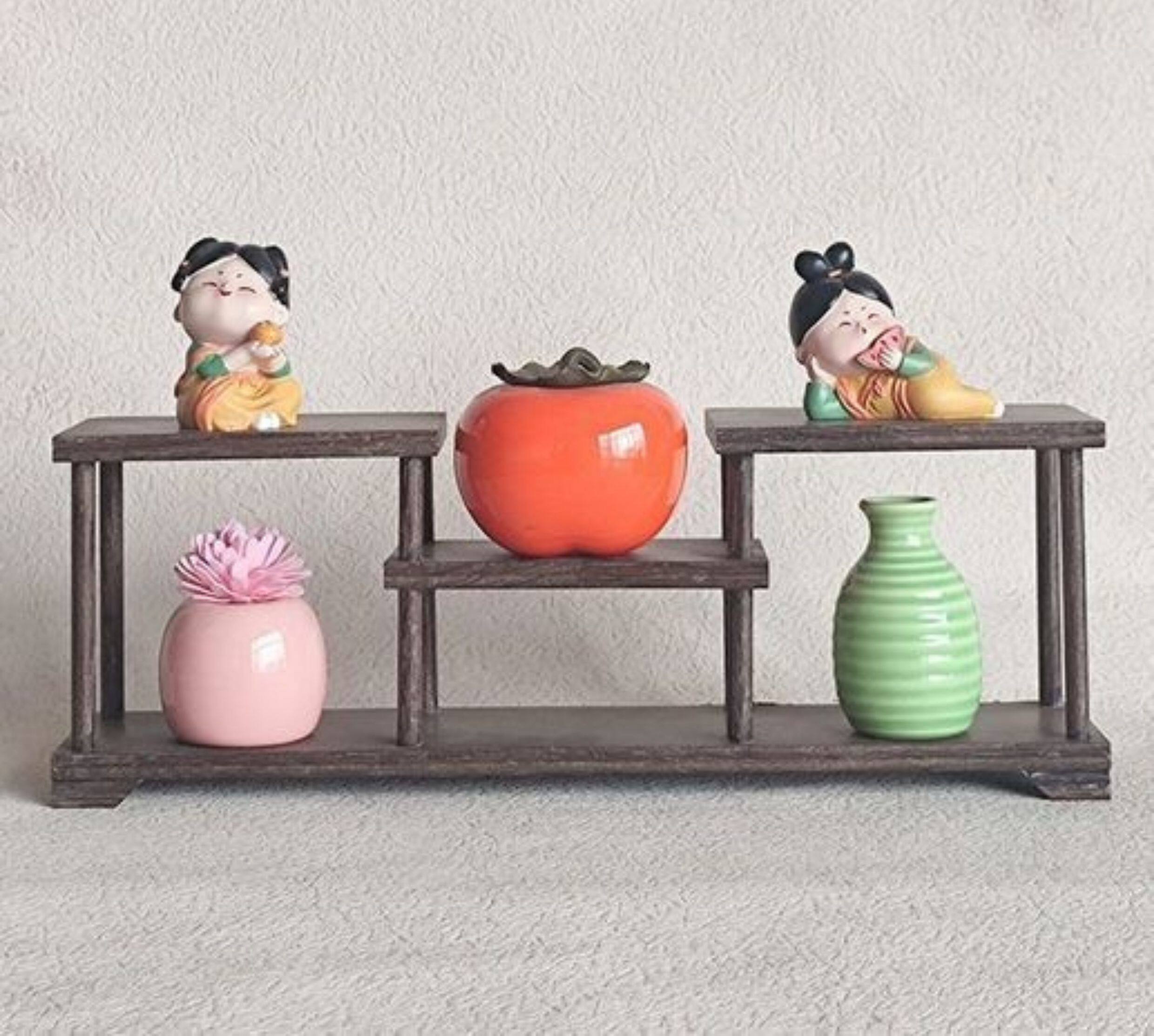 Chicken-Wing Wood Display Shelf, Chinese-Style Small Multi-Purpose Shelf, Tea Set Rack, Solid Wood Storage Rack, Teapot Rack, Ornament Rack, Display Stand