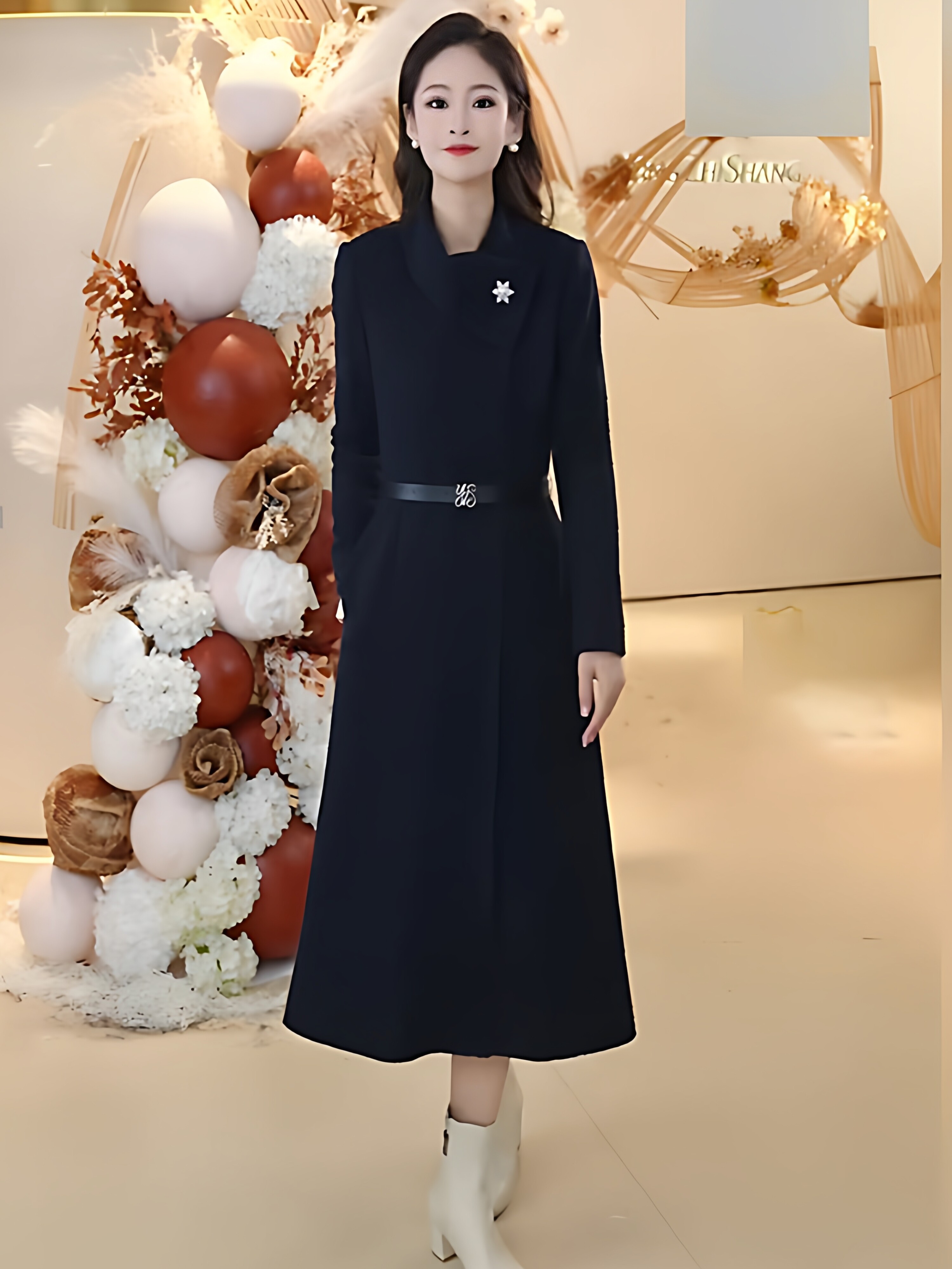 Mijie 2025 Autumn New Fashionable Dark Blue Slim-Fit Waist-Enhancing Dress for Women, Elegant and Slimming Mid-Length Dress