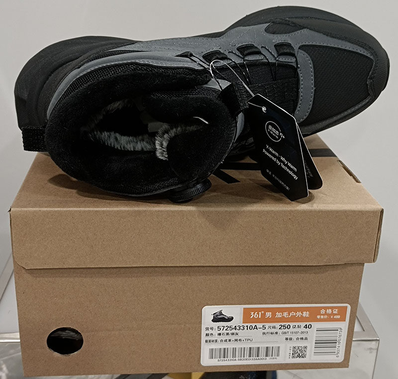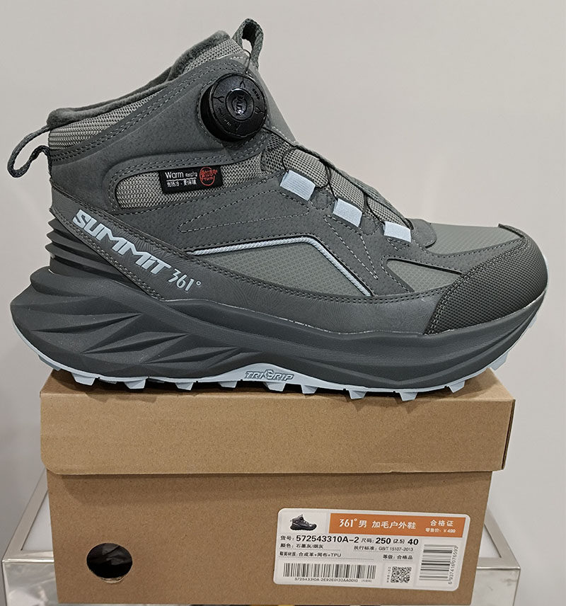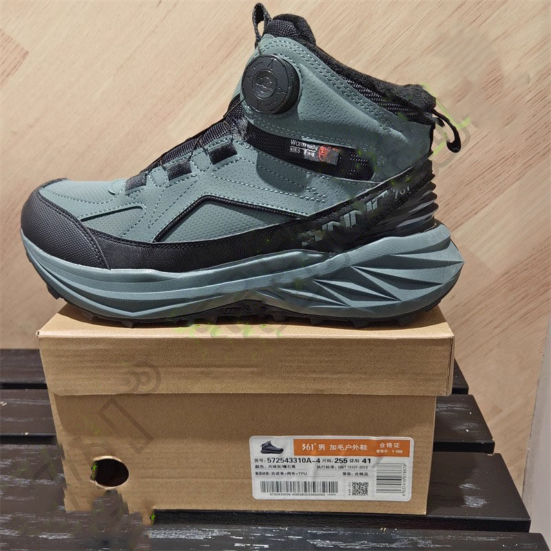 361 Degrees Men's Outdoor Fleece-Lined Large Cotton Shoes with Knob Closure New 2025 Winter Leather Sports Shoes 57Z543310A