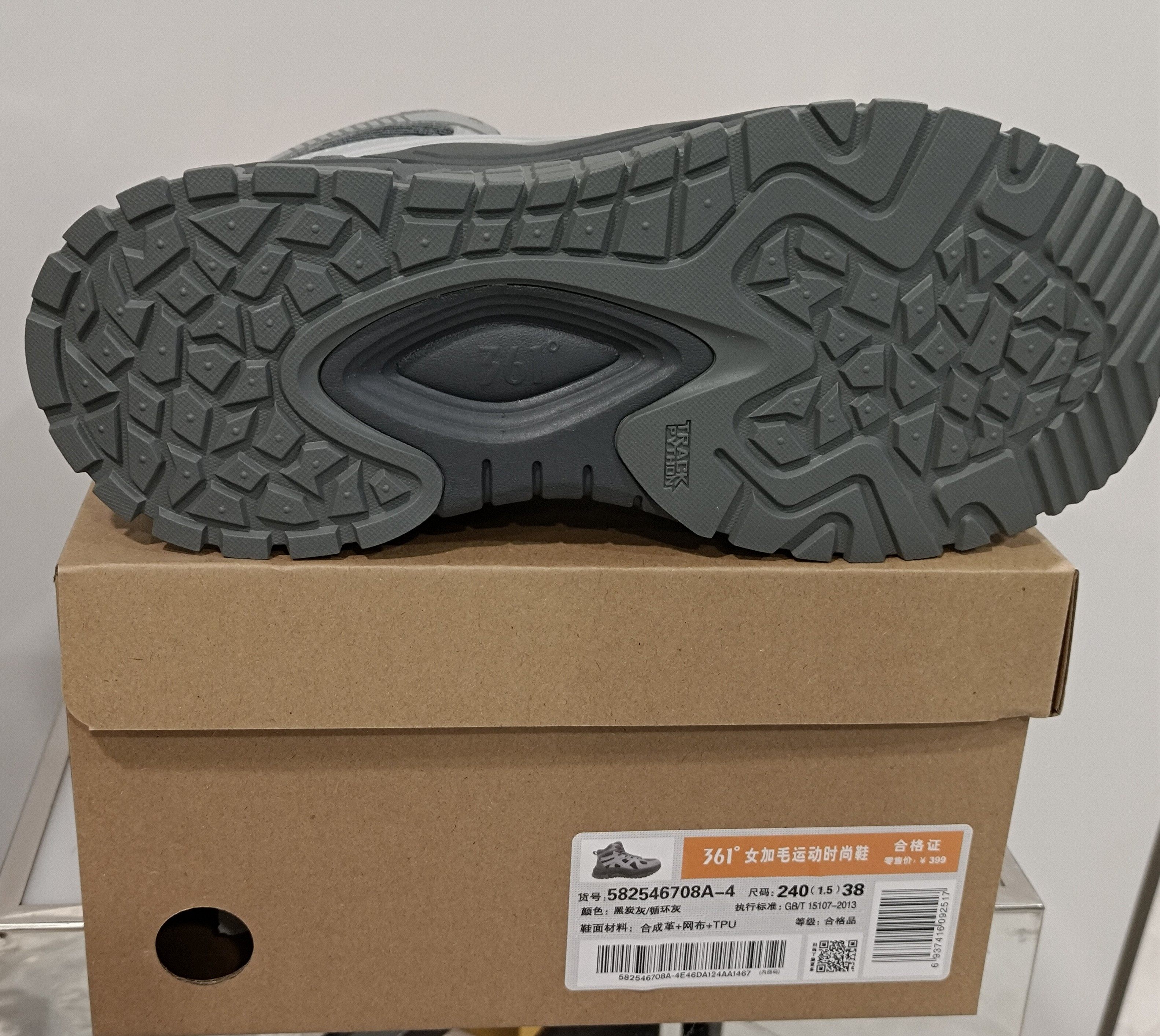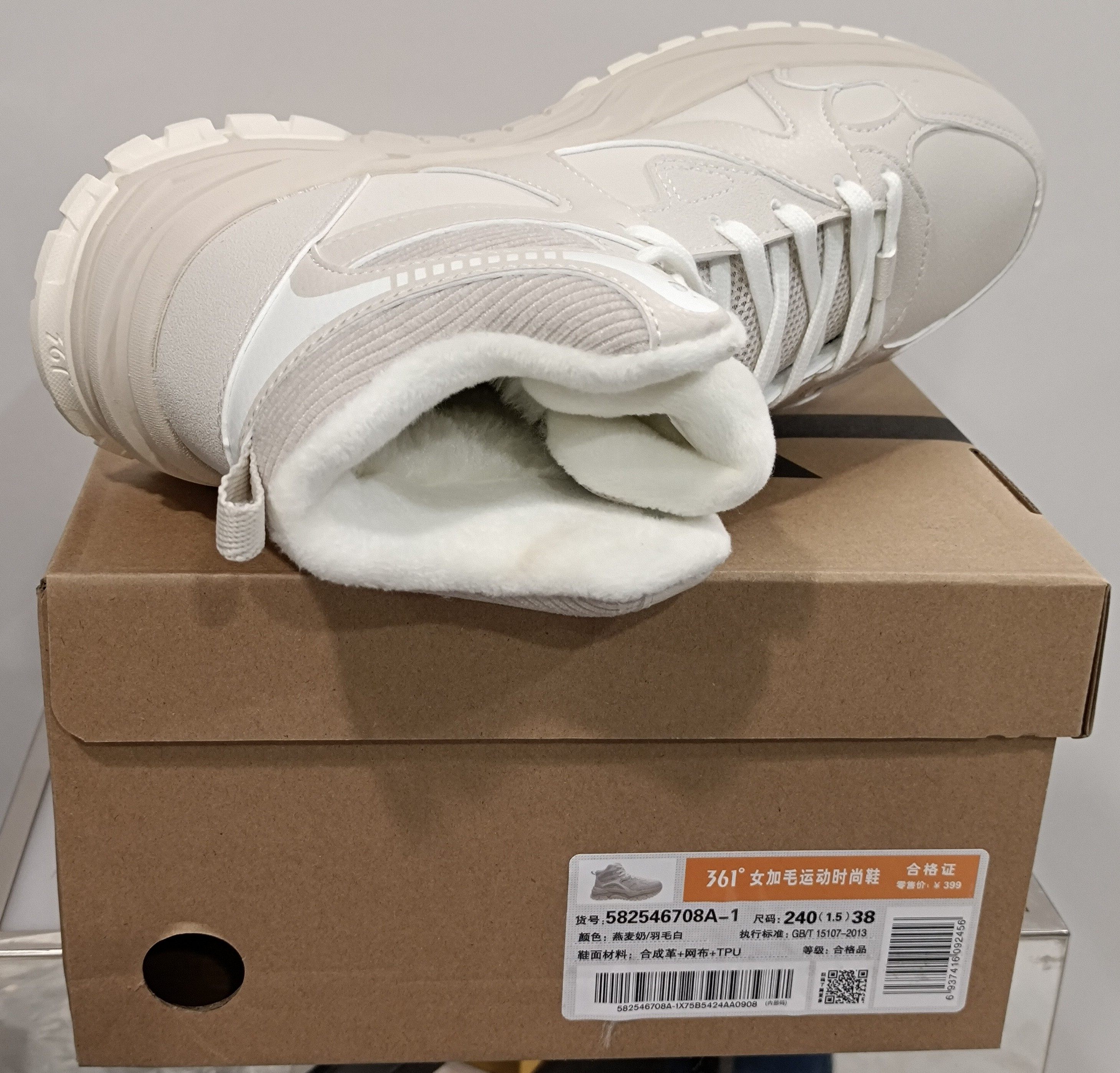 361 Women's New High-Top Cotton Shoes with Added Fur, 2025 Winter Non-Slip Leather Casual Sports Shoes 58Z546708A