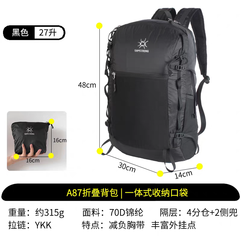 Outdoor Hiking Bag, Lightweight Hiking Backpack, Men's and Women's Large-Capacity Foldable Backpack 27L B0564