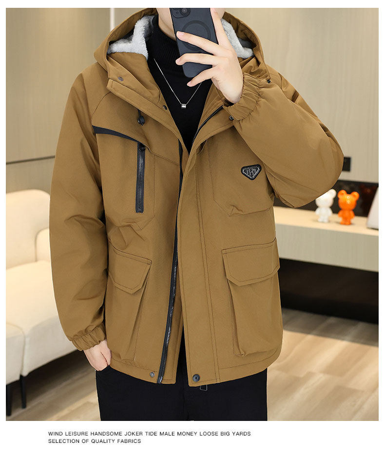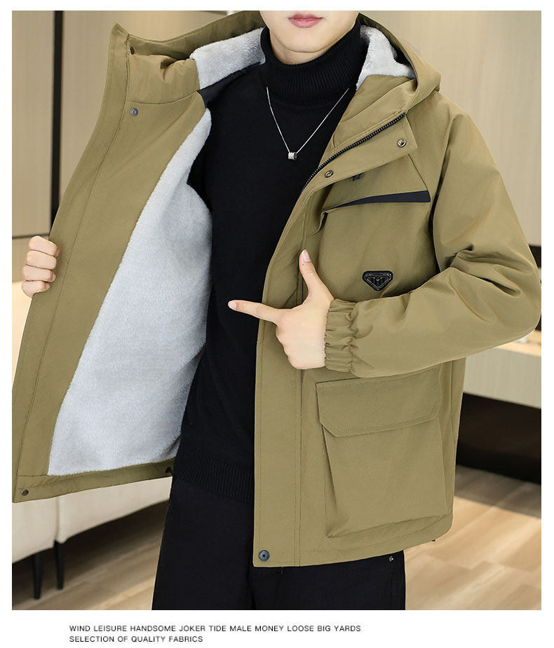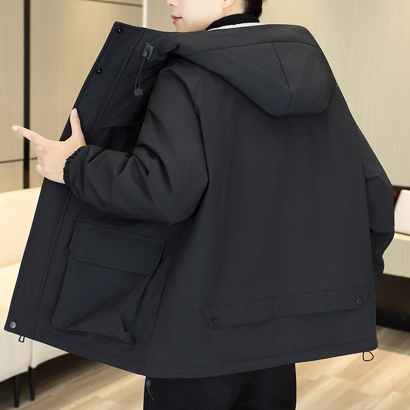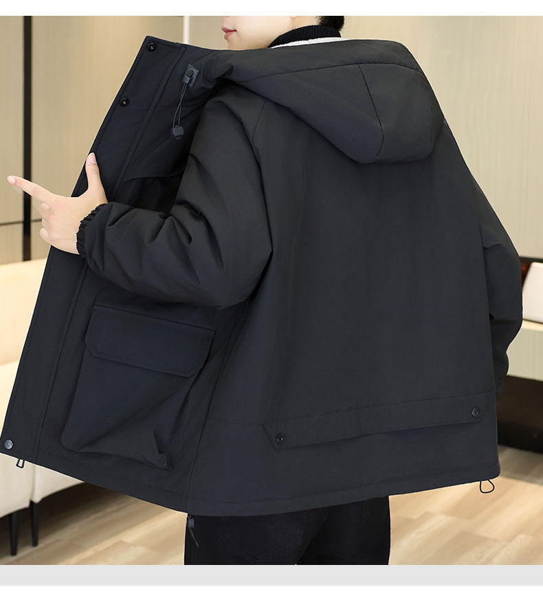 Youth Winter Fleece-Lined Thick Parka for Men 2025 New Warm Hooded Loose Casual Cotton Jacket Coat
