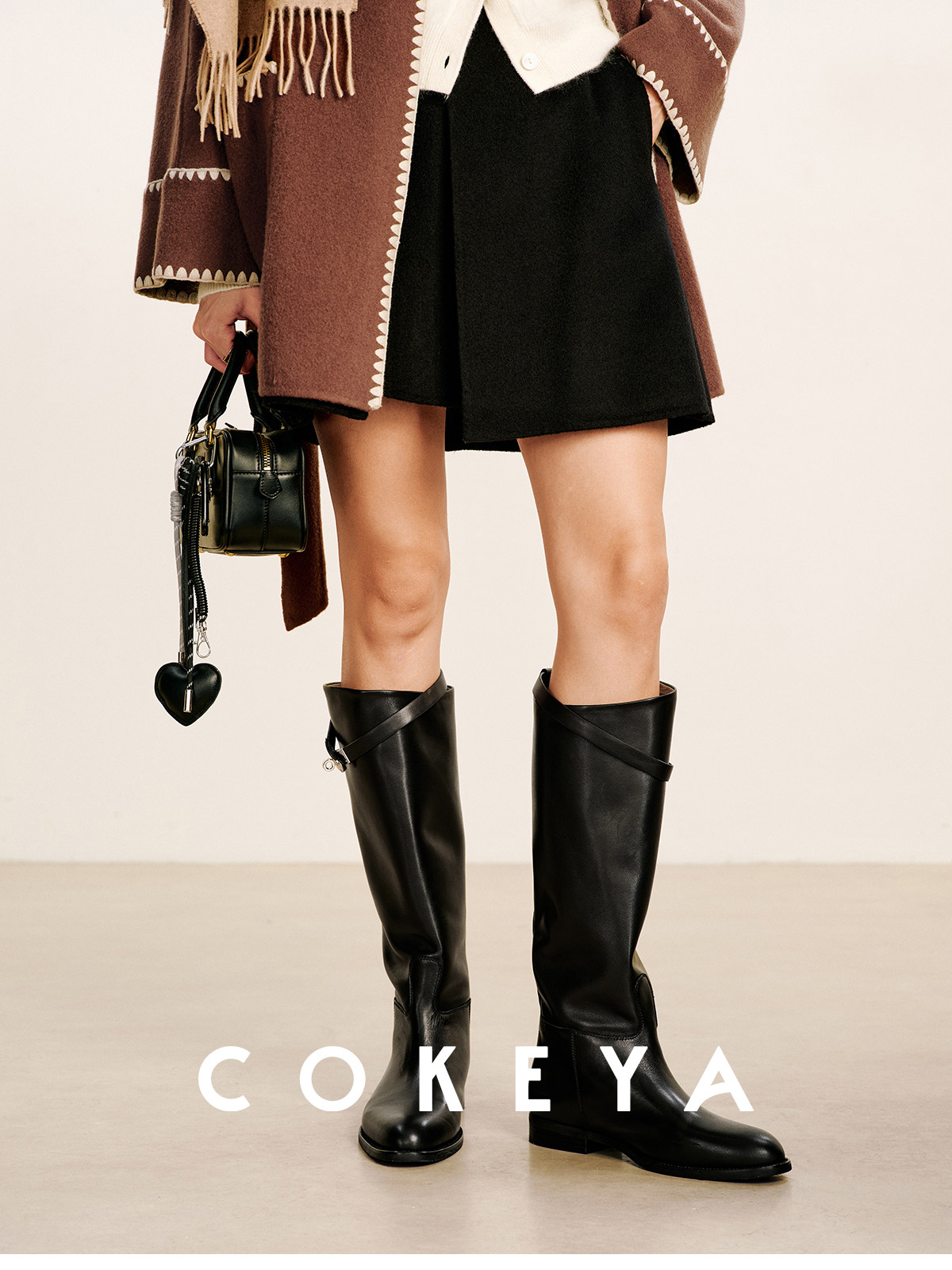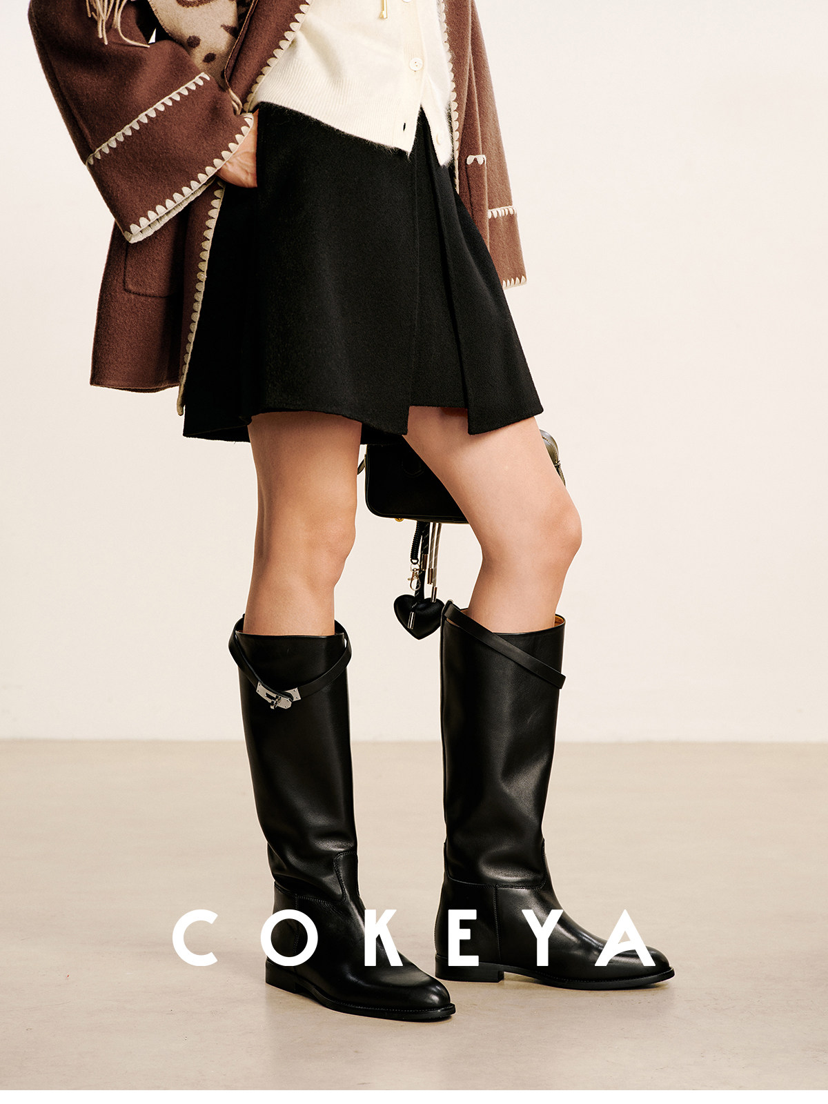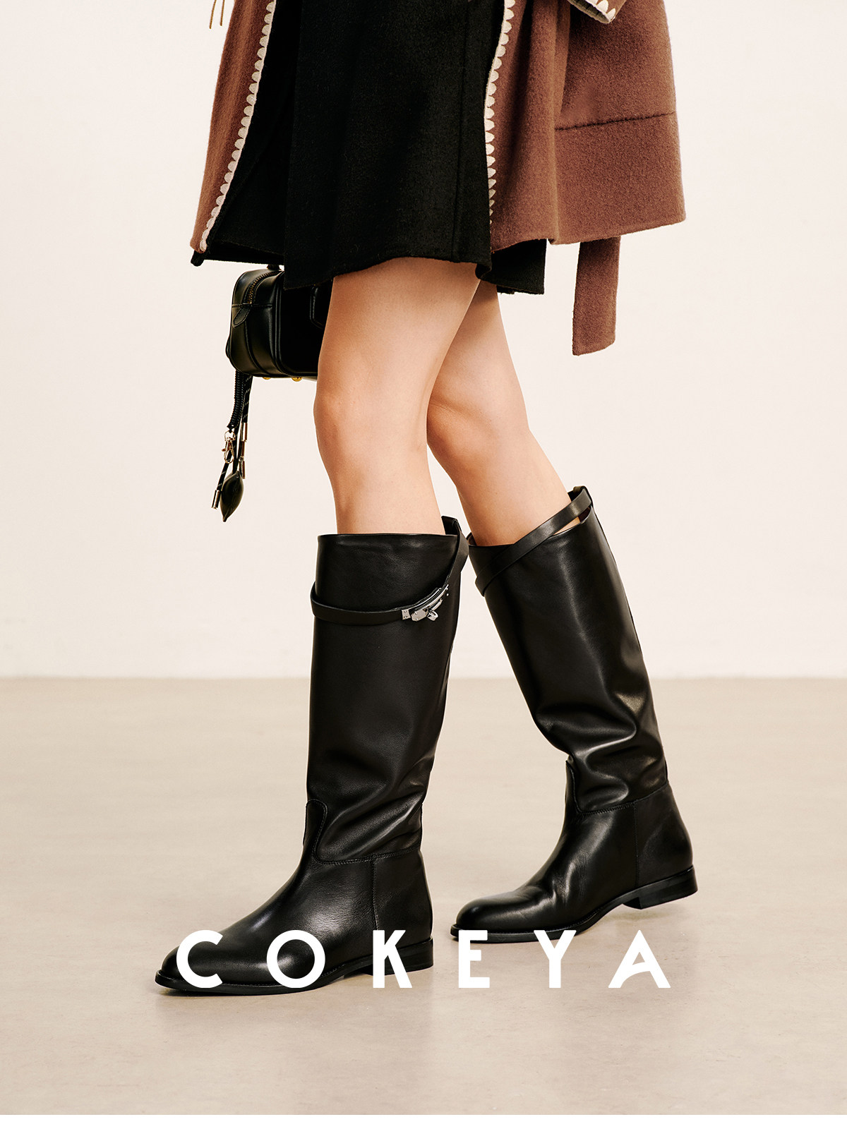 Cokeya/Super Soft "Crinkle Boots"~ H Brand Kelly Buckle Calfskin Mid-Calf Slightly Pointed Round-Toe Riding Boots