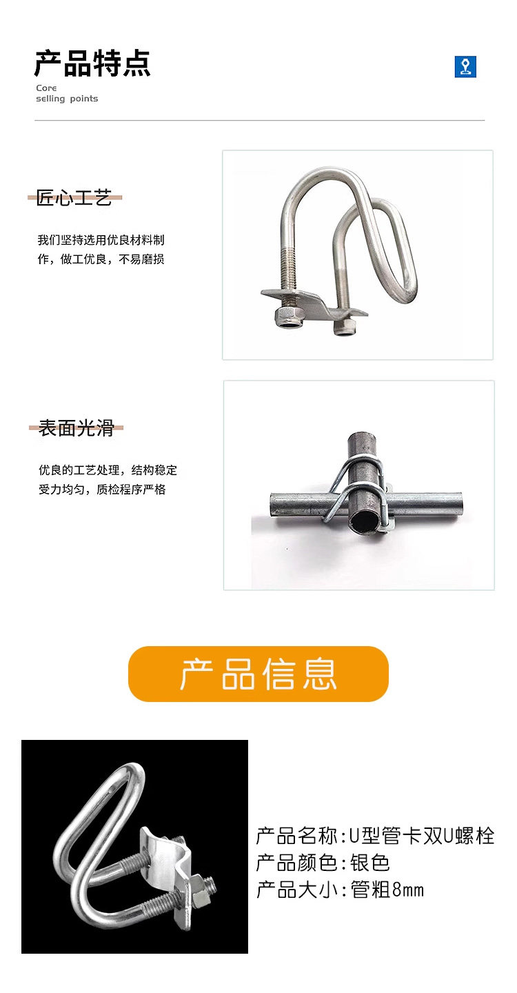 Sort by color Stainless steel U-shaped pipe clamps 2 pack,Stainless steel U-shaped pipe clamps 4 pack
