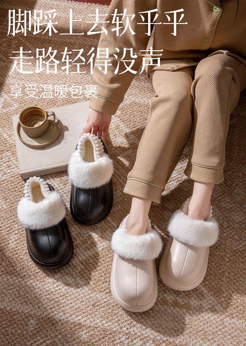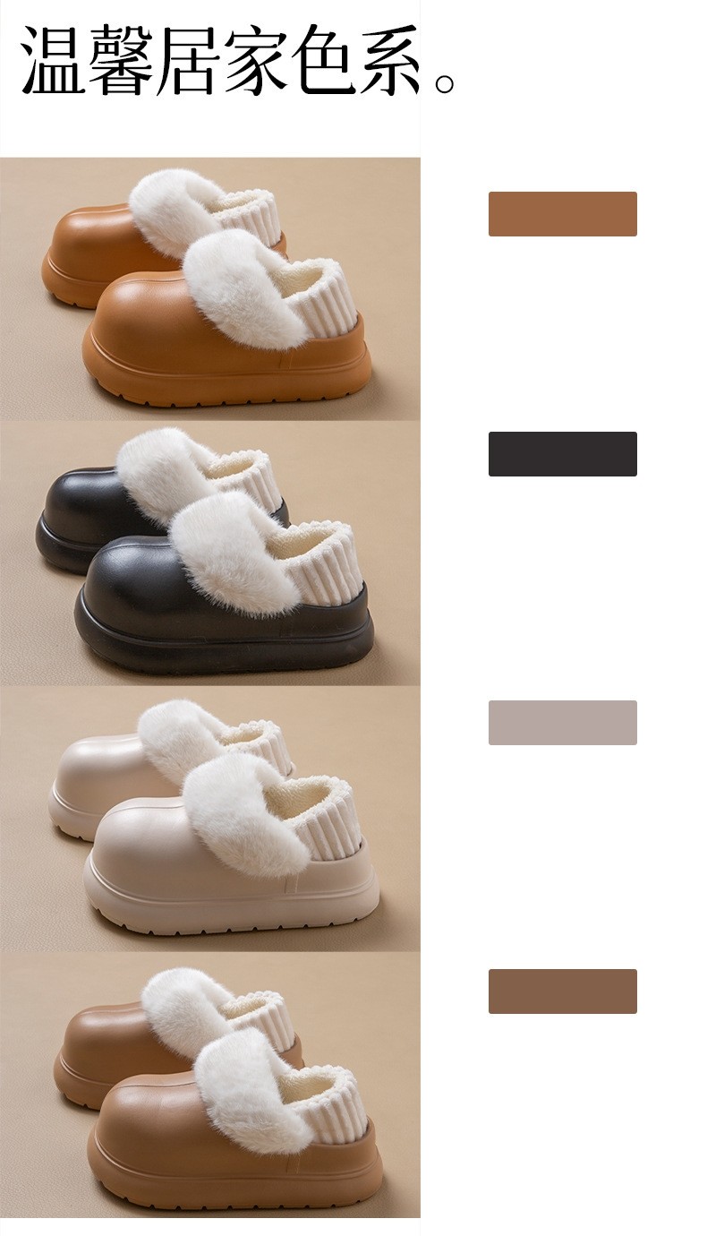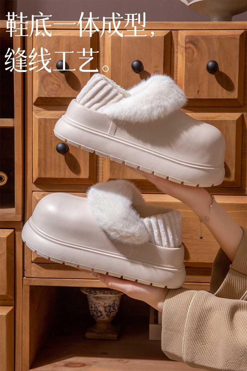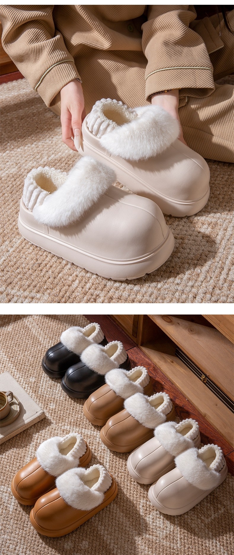 Women's Cotton Slippers for Winter, Waterproof, Closed Heel, Non-Slip, Indoor Home Use, Fleece-Lined, Thickened, Height-Increasing, Warm Women's Cotton Shoes