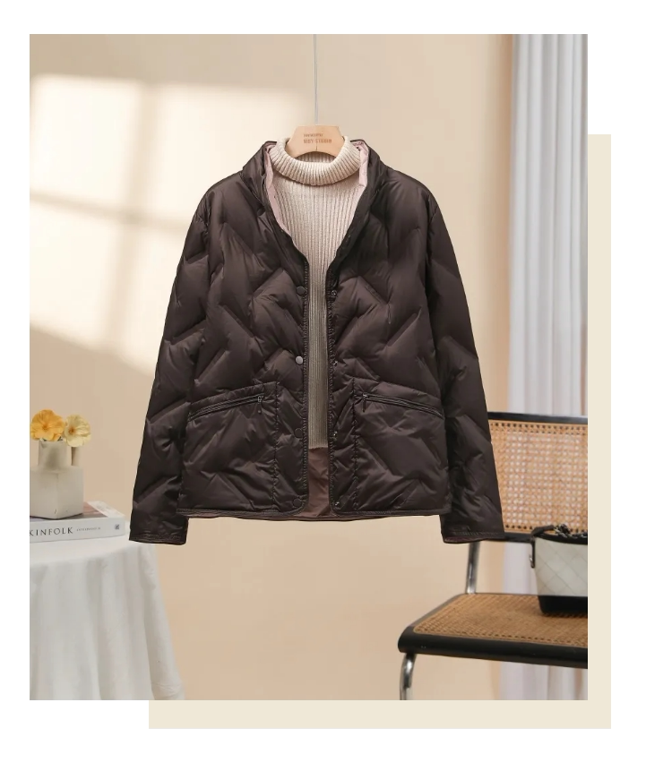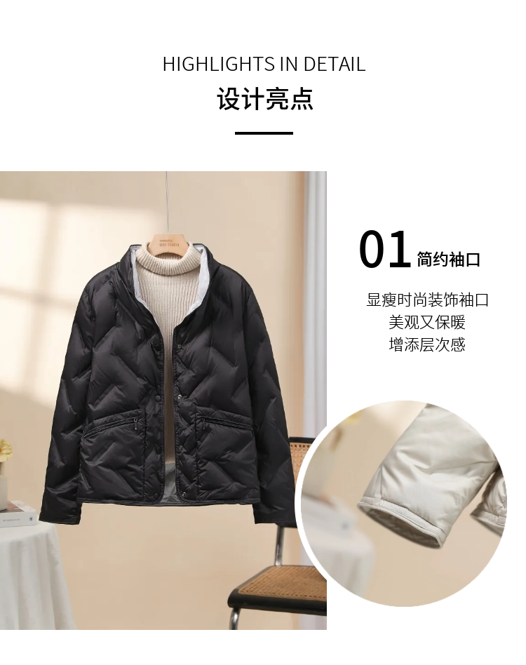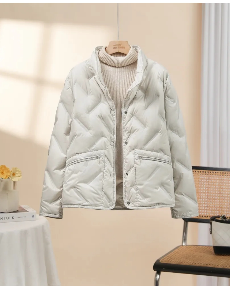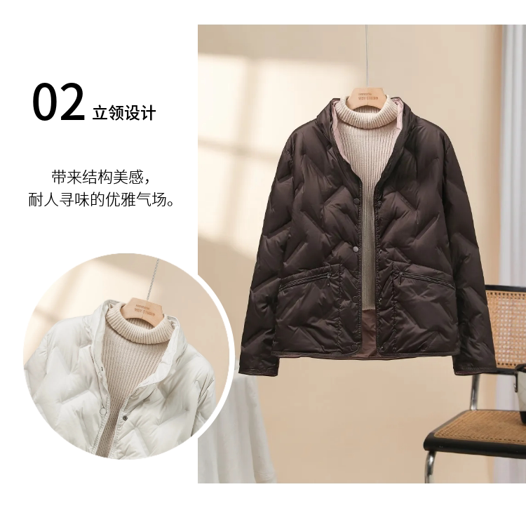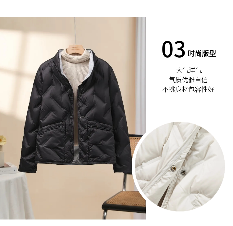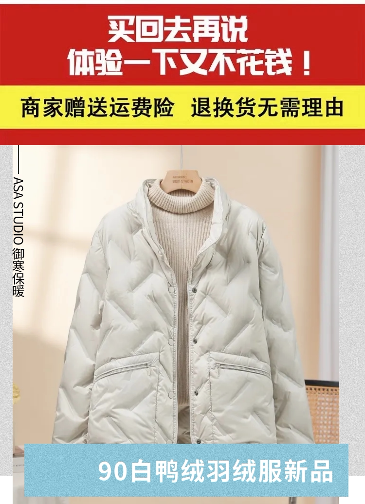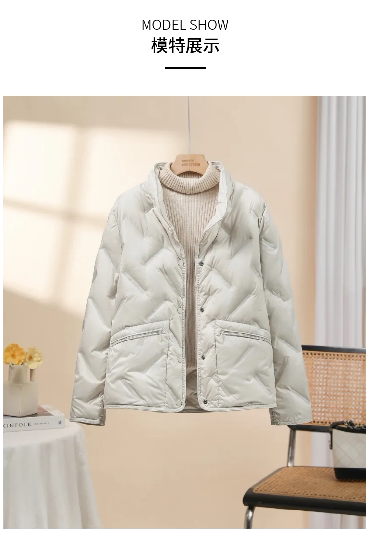 Lightweight stand-up collar down jacket women's short 2025 new style small fashion taped 90 white duck down thin style autumn and winter