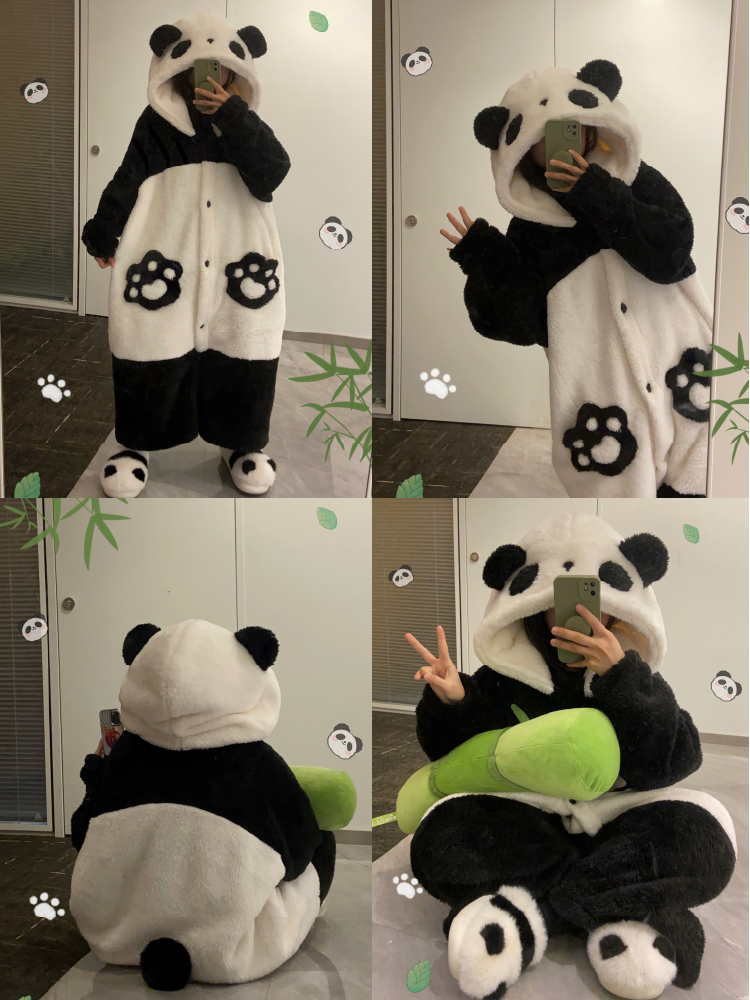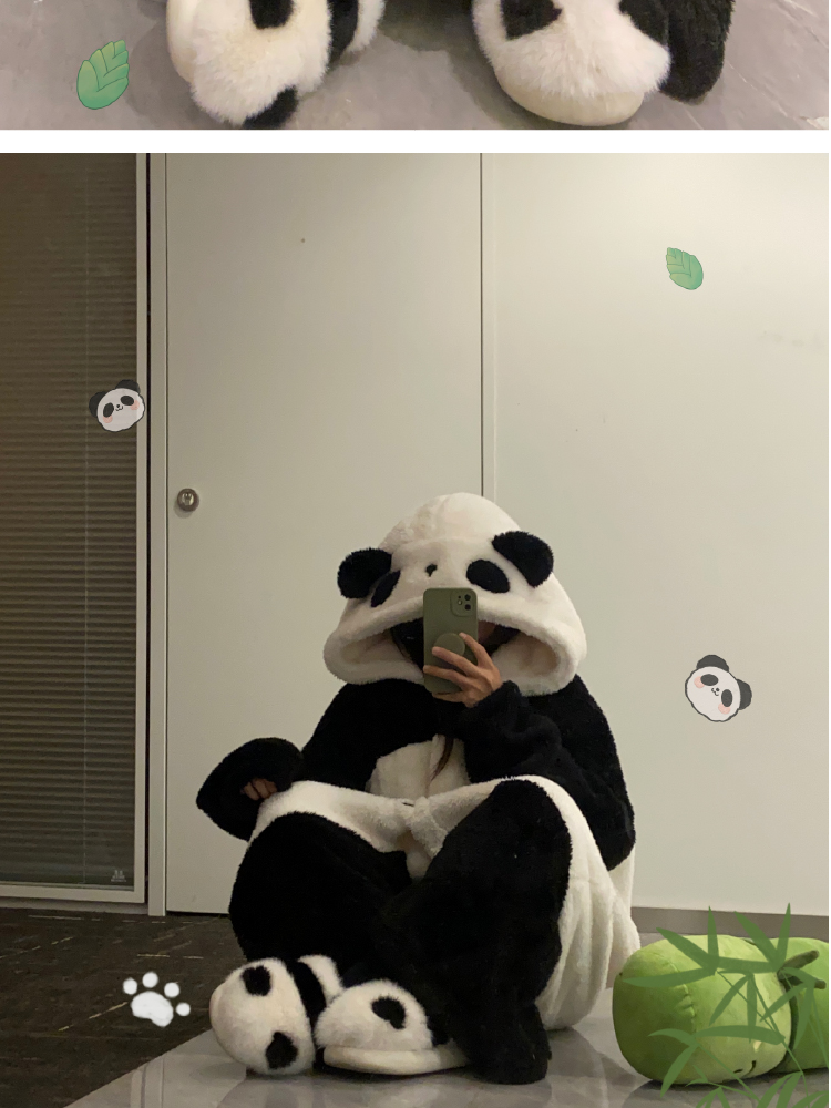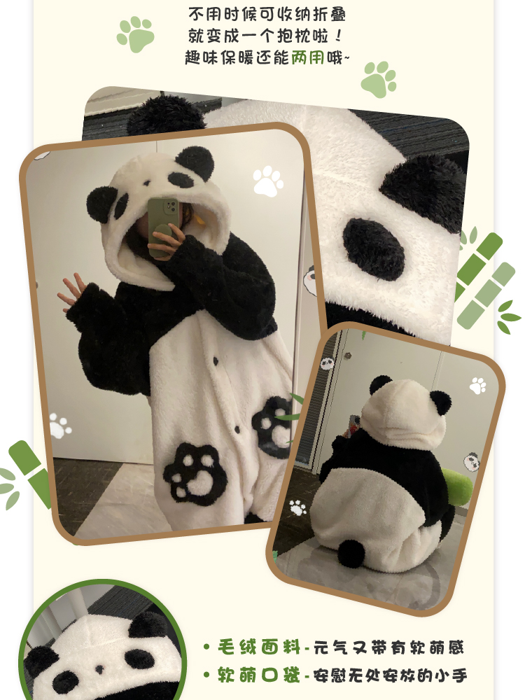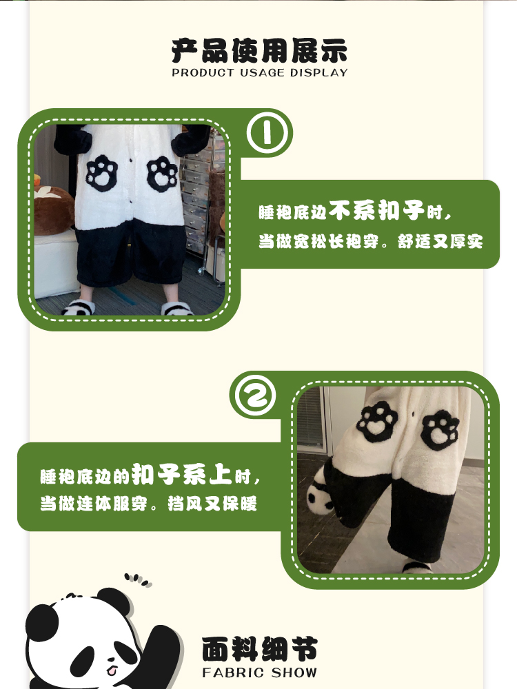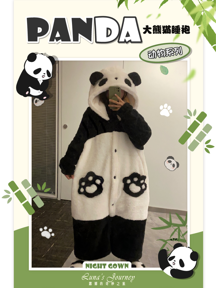 Vockoo Panda Pajamas for Women, Winter Coral Fleece, Thickened and Plush, Cute Bathrobe, One-Piece Sleepwear, Loungewear