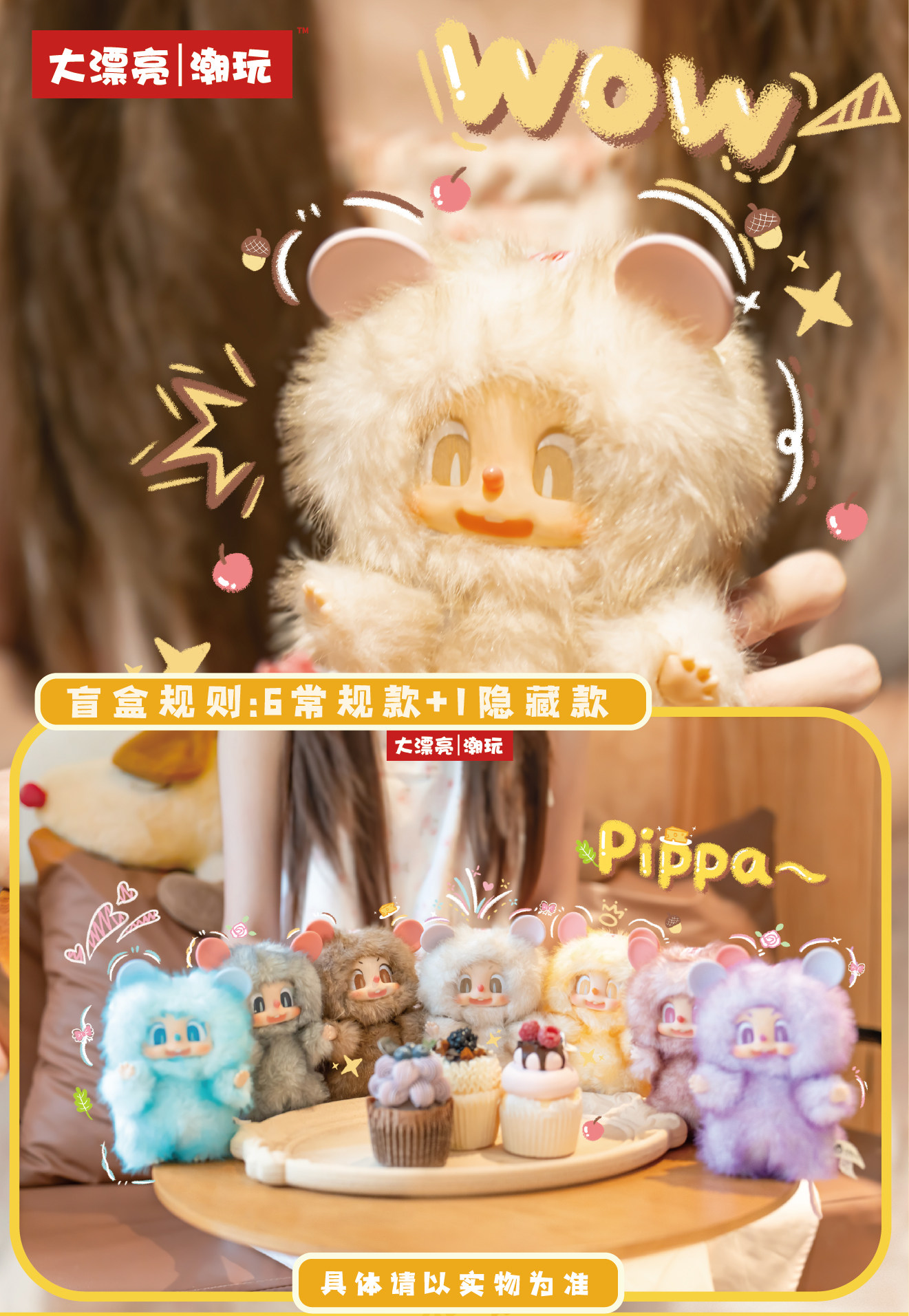 Pippa Original Macaron Plush Pendant Blind Box Doll Gift for Girls Baby Three Years Old