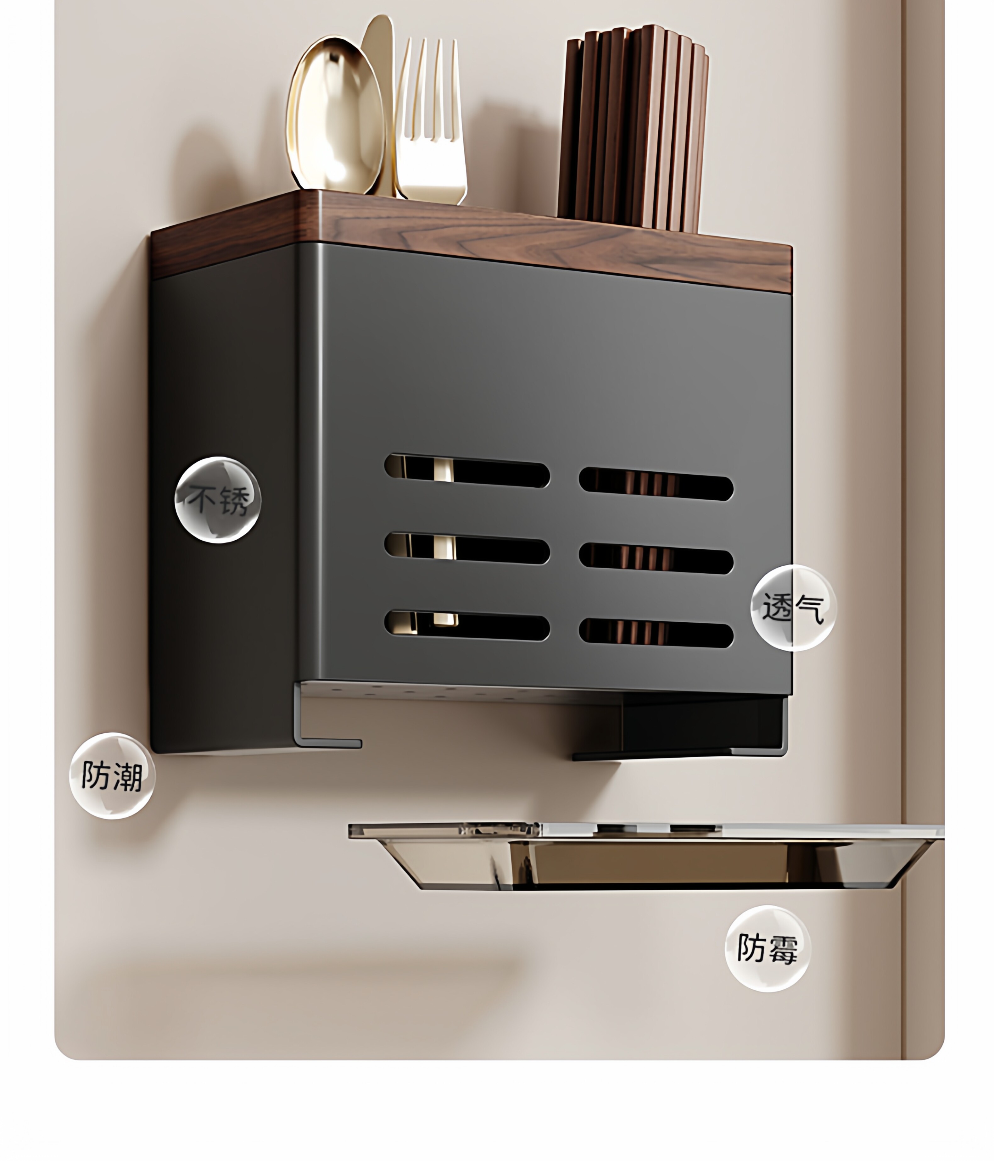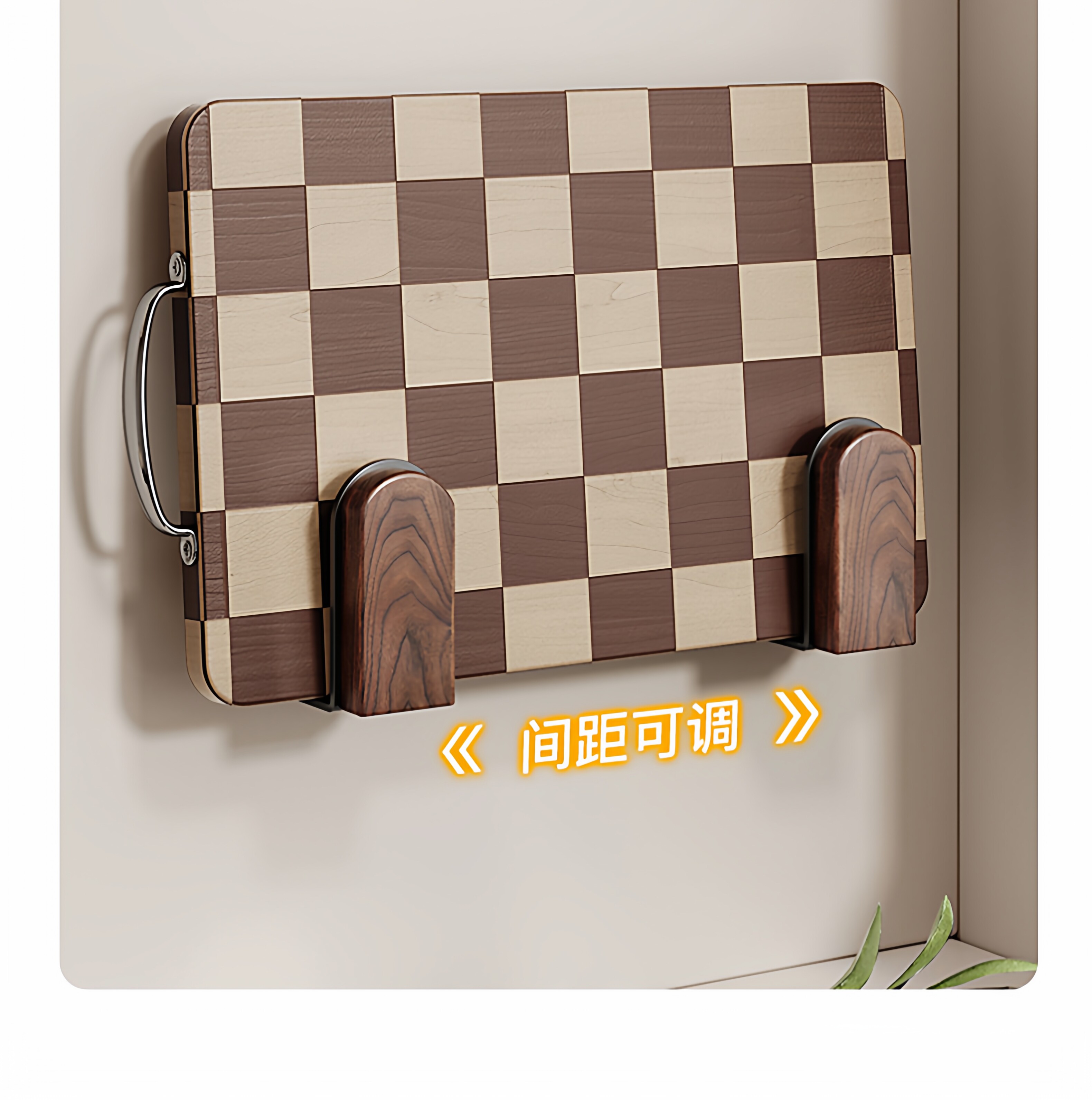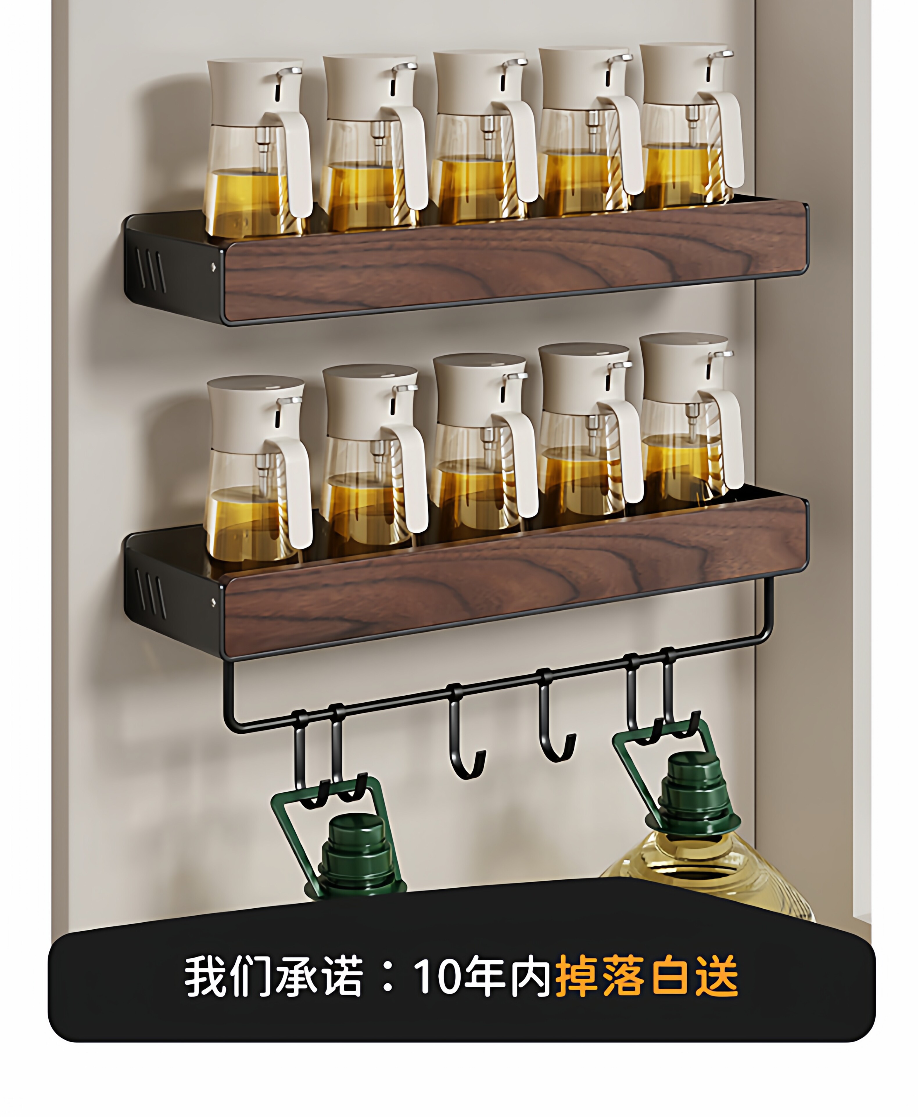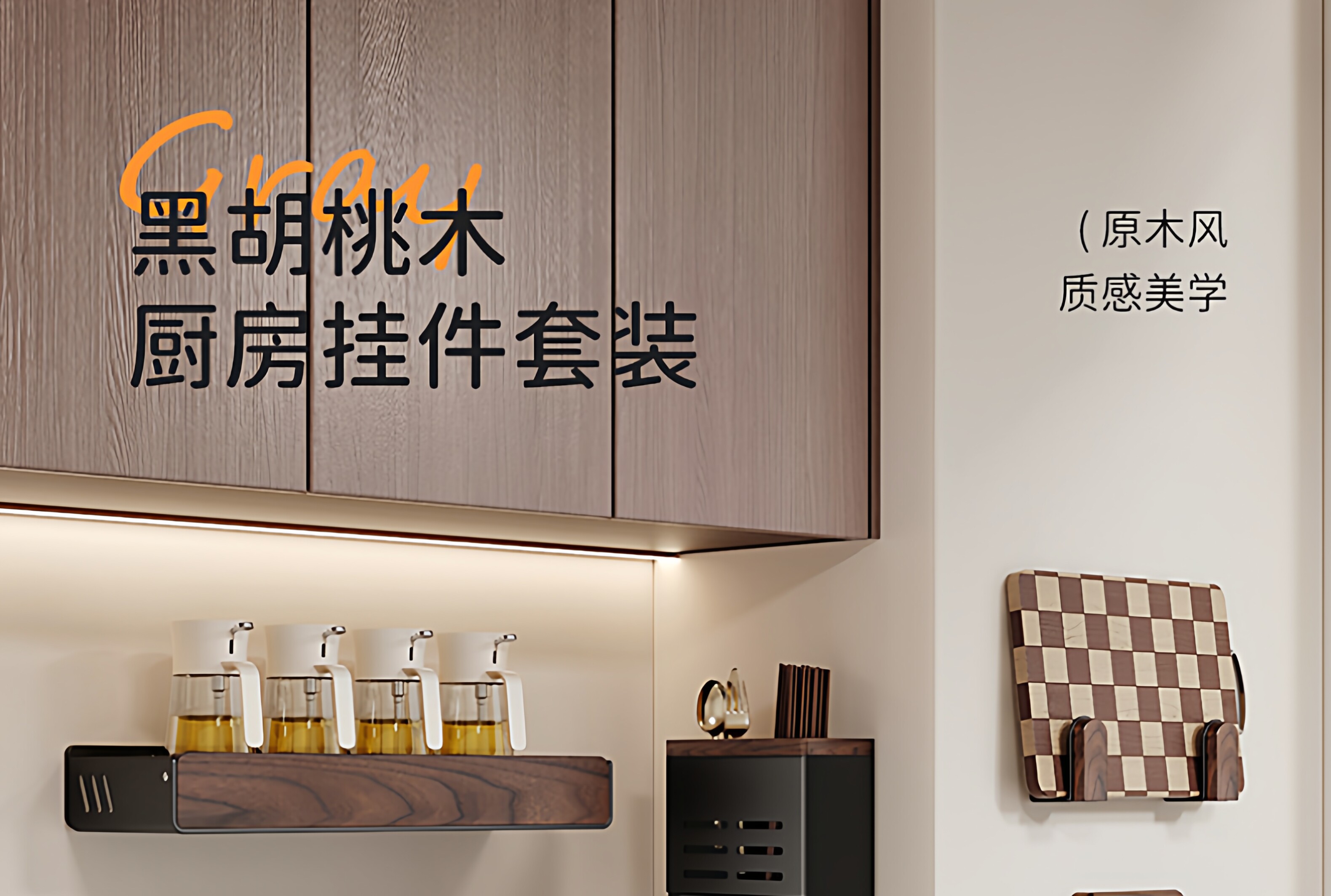 French Ziwoo Walnut Kitchen Storage Rack, No-Drill Solid Wood Pot Lid, Knife, Chopsticks, Spoon, Seasoning, Oil Pot Wall-Mounted Rack