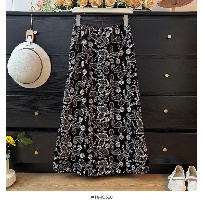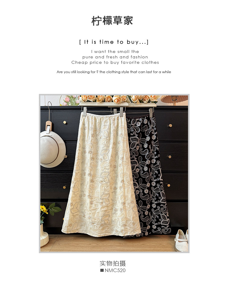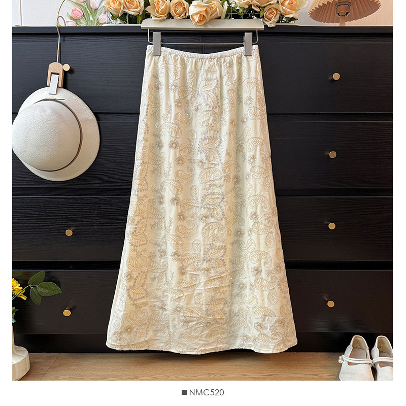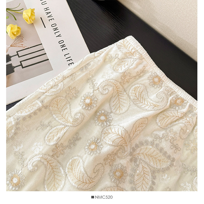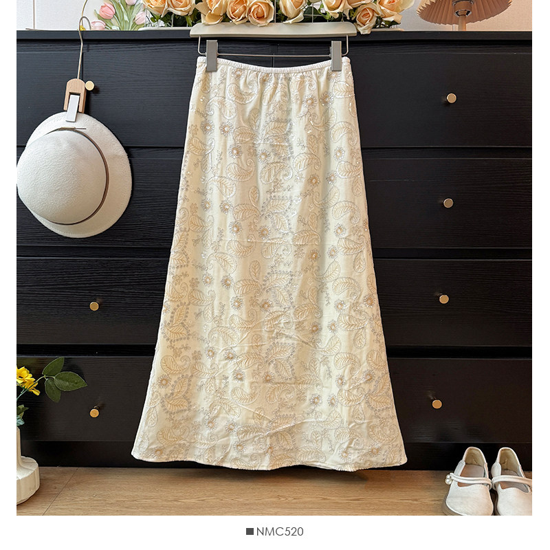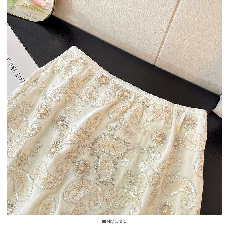 High-end heavy-duty glittering sequins embroidered jacquard skirt for women autumn 2025 high-waist slimming A-line hip skirt