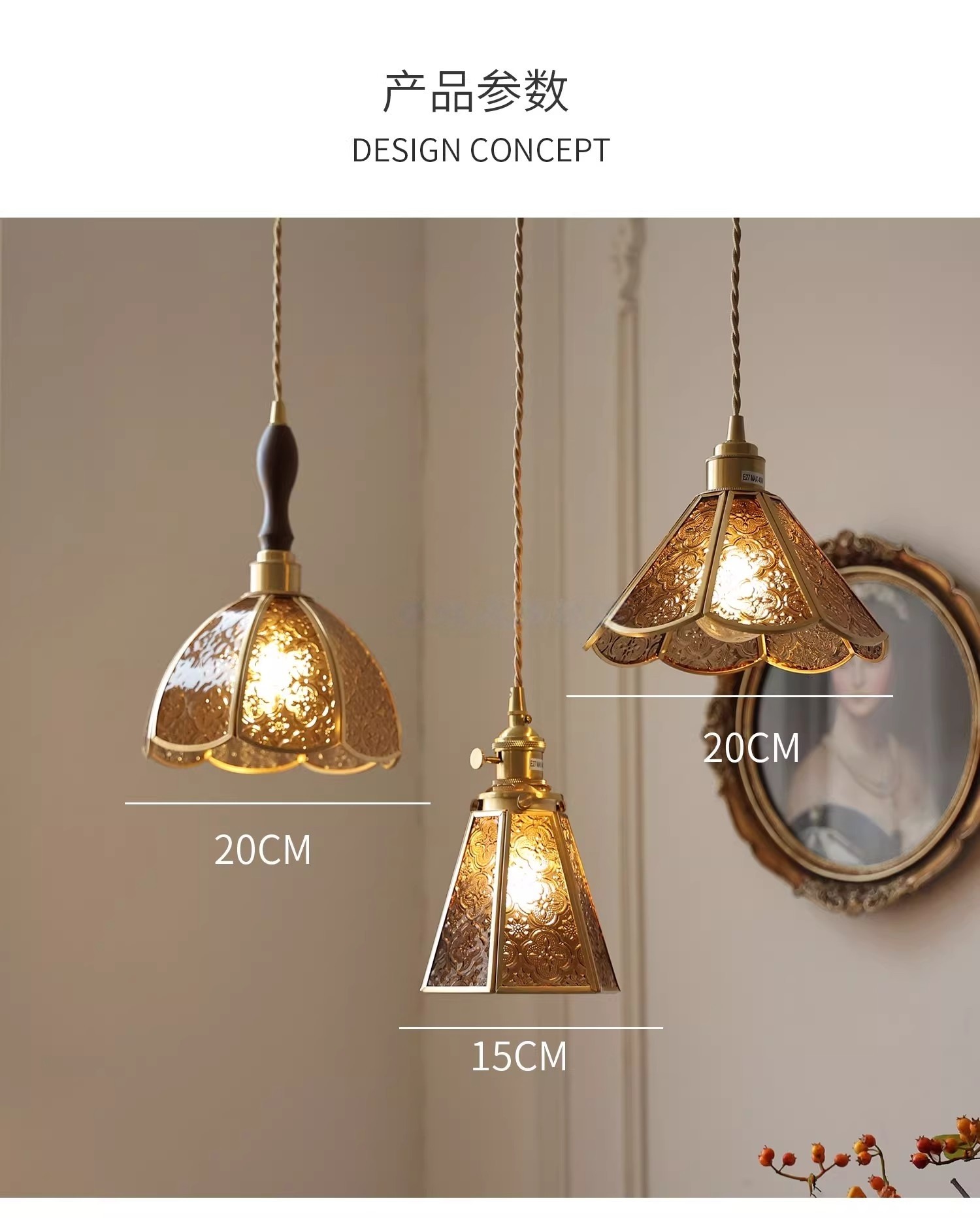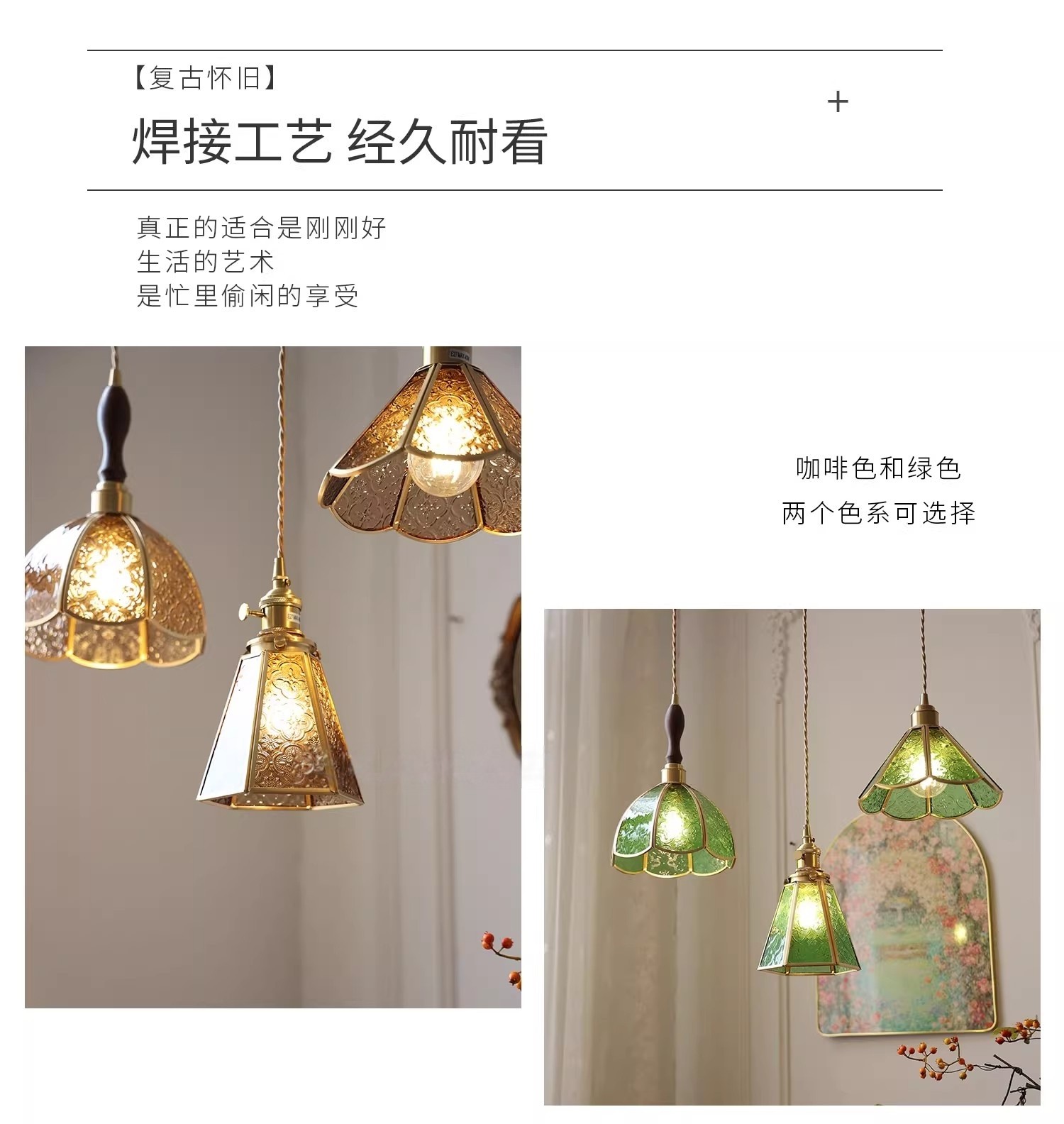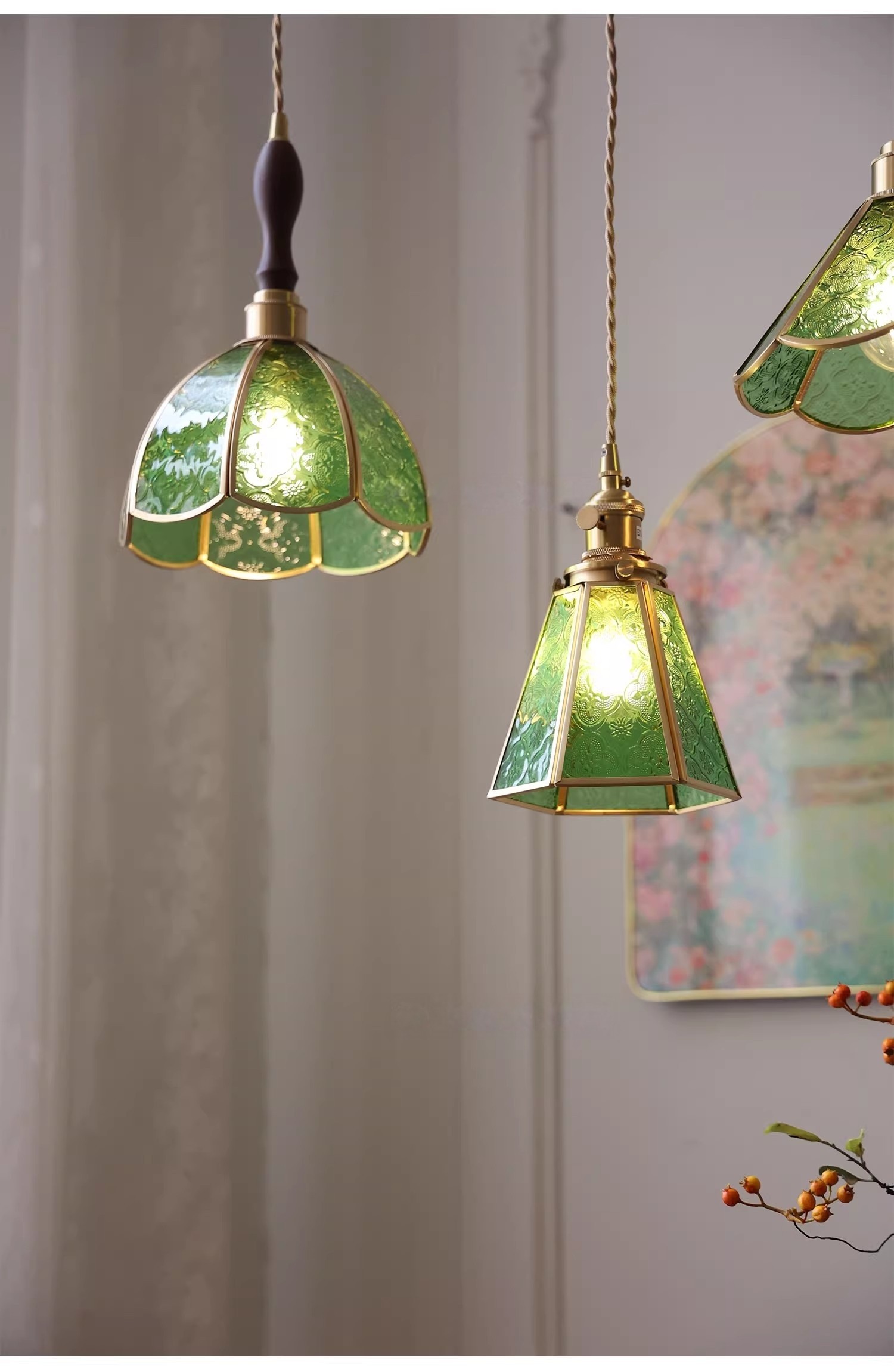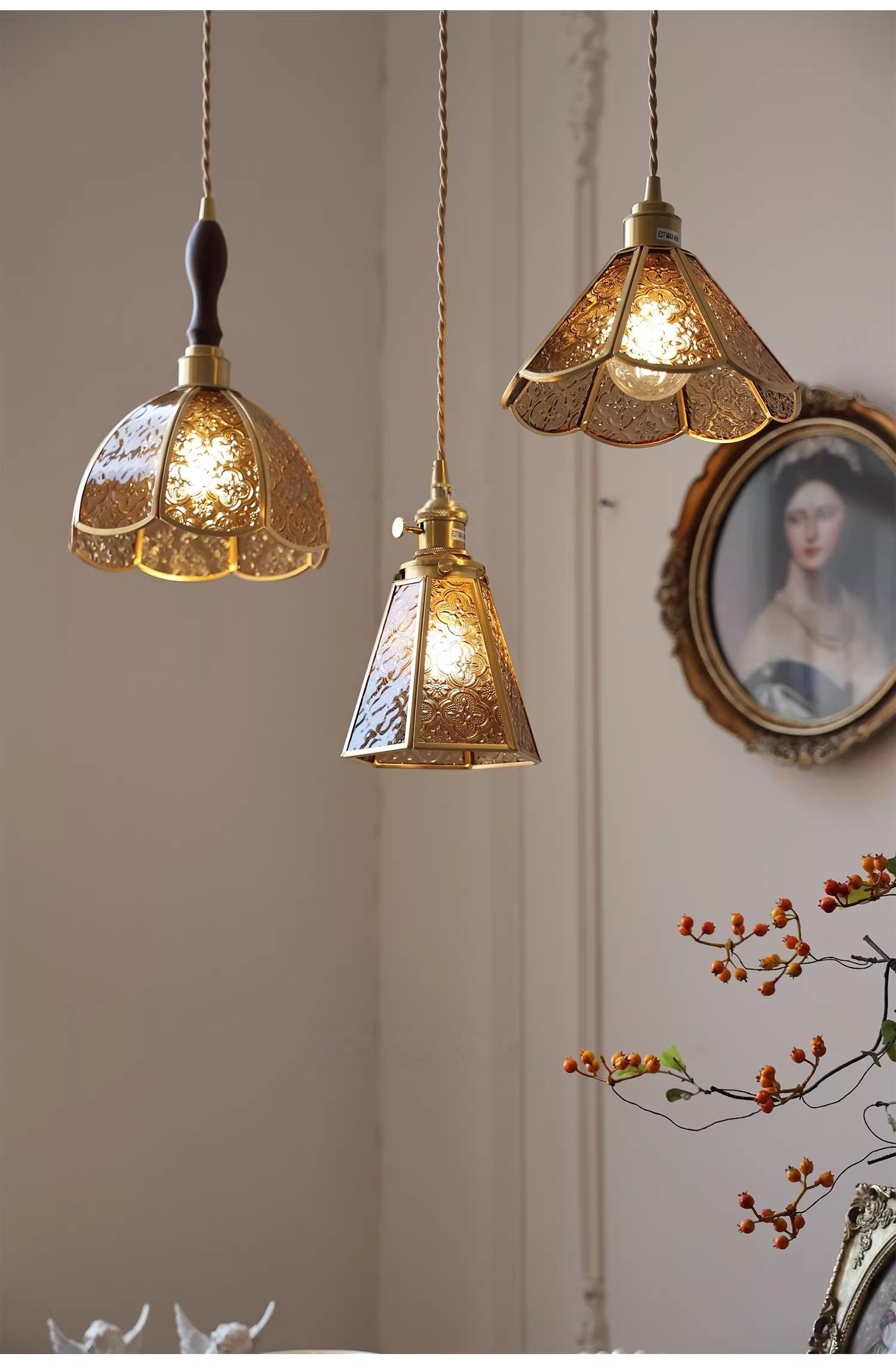 Vintage Style Old Shanghai Retro Brass American-Style Begonia Flower Glass Chandelier for Bedside, Hallway, Cafe, and Window Lighting