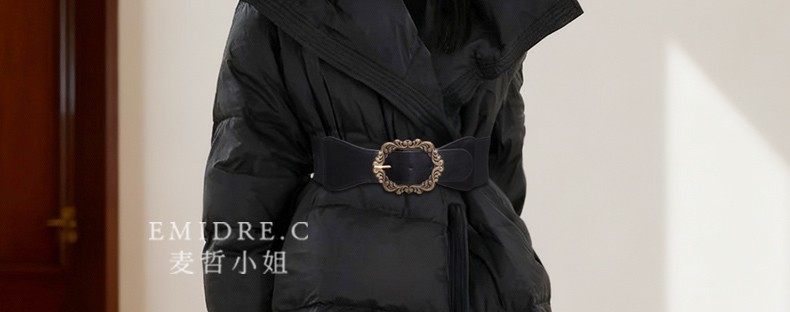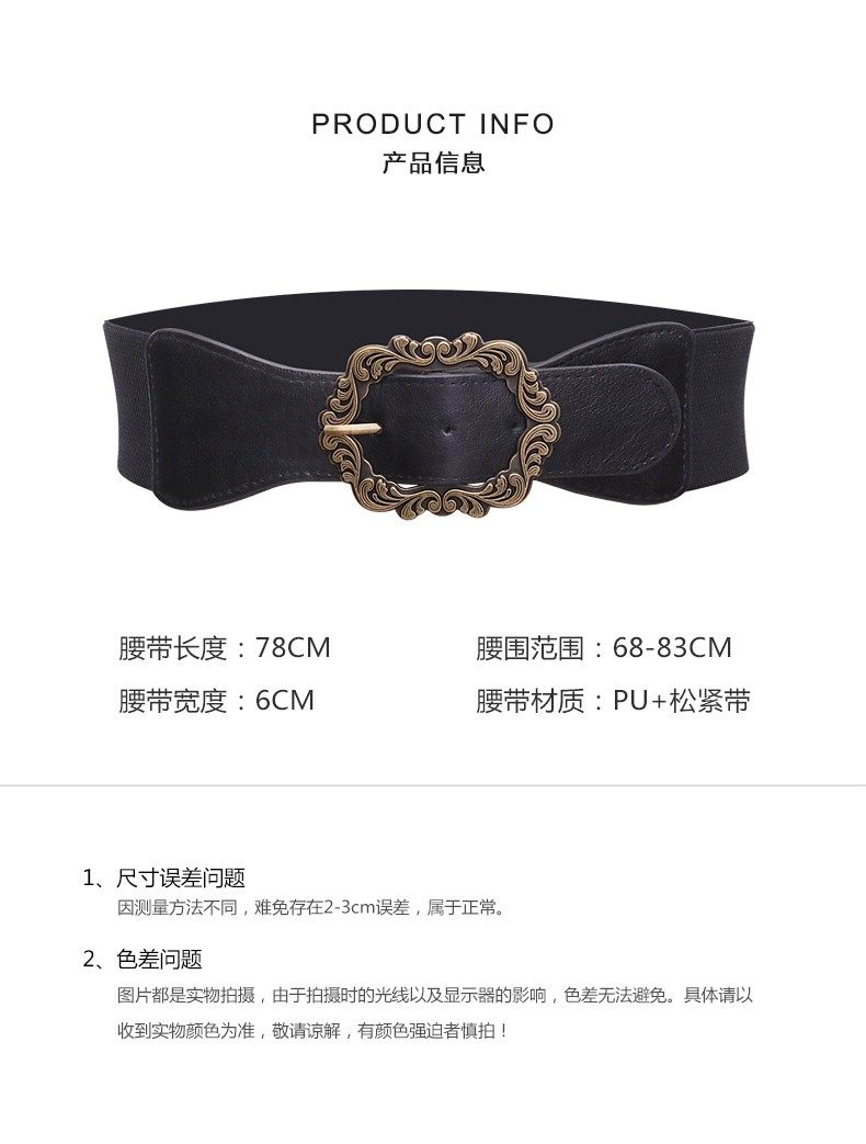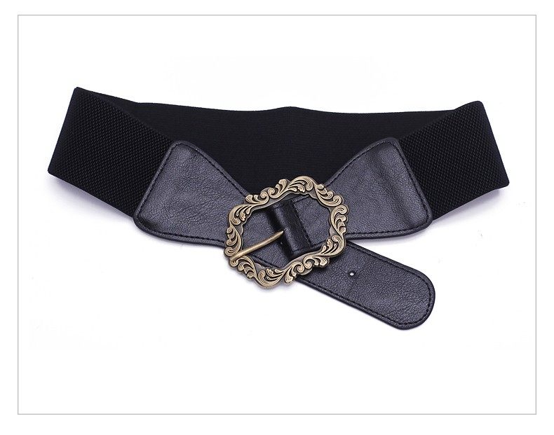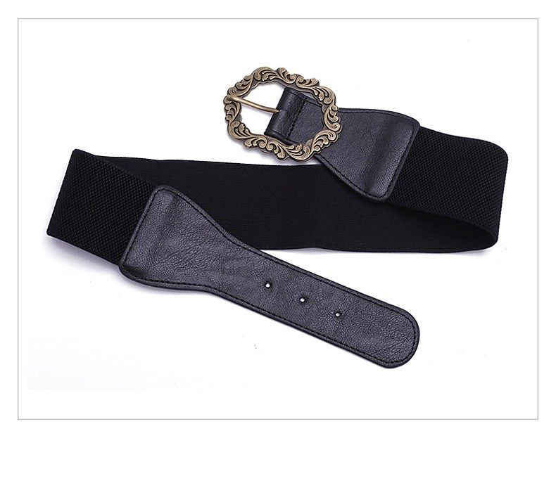 Women's Coat Belt Waist Accessory Wide Elastic Black Vintage Decorative Belt for Dresses, Sweaters, and down Jackets