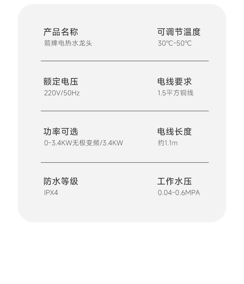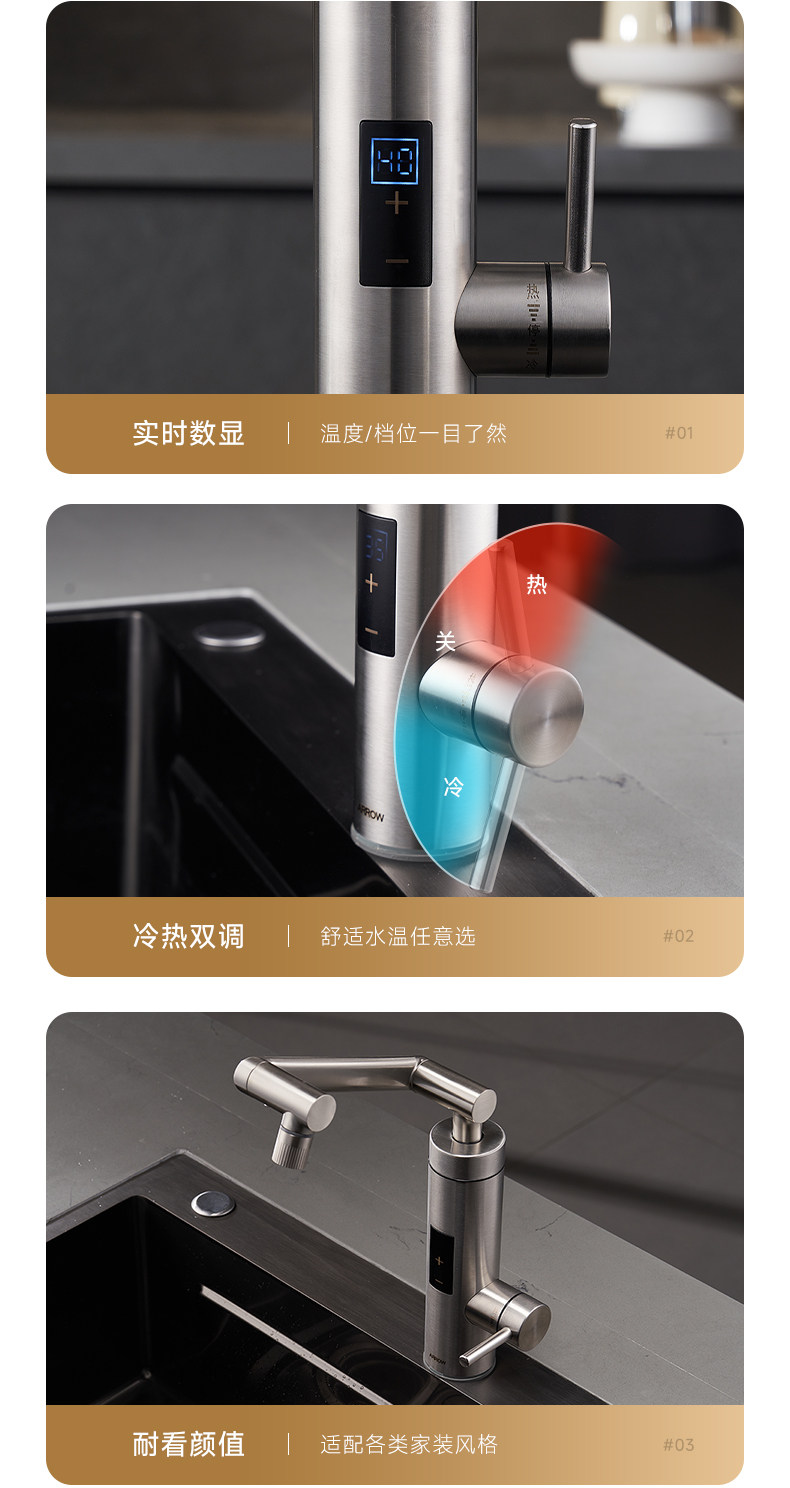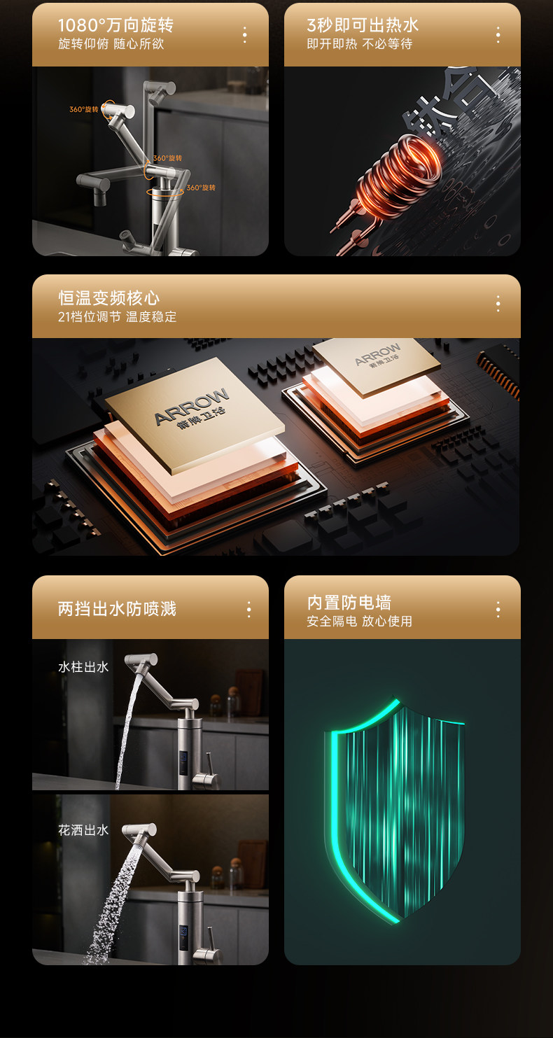 Household Electric Hot Water Faucet Kitchen Appliance with Variable Frequency Mechanical Arm Storage-Type Water Heater Arrow Brand Small Electric Water Heater