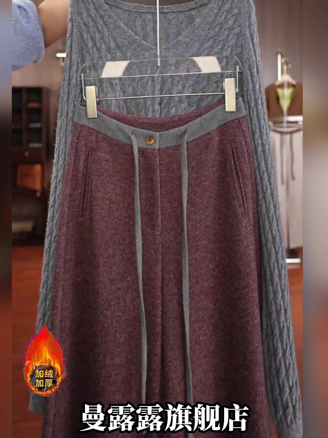 Winter new style drapey style knitted scimitar pants for women casual versatile loose temperament high-grade velvet thickened trousers