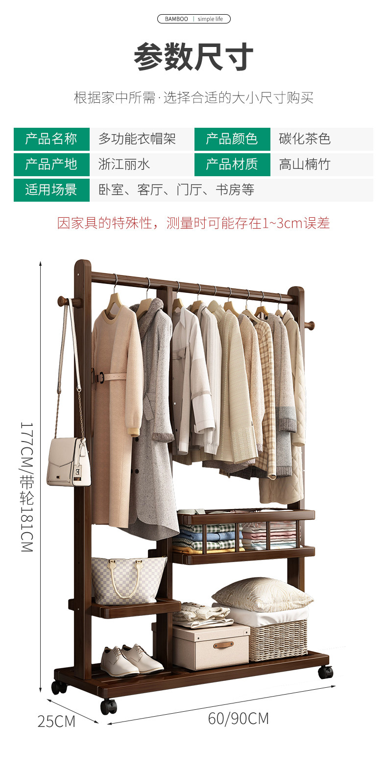 Coat Rack for Home Bedroom, Floor-Standing Clothes Rack, 2026 New Model, Multifunctional Clothes Hanger, Open-Style Simple Wardrobe
