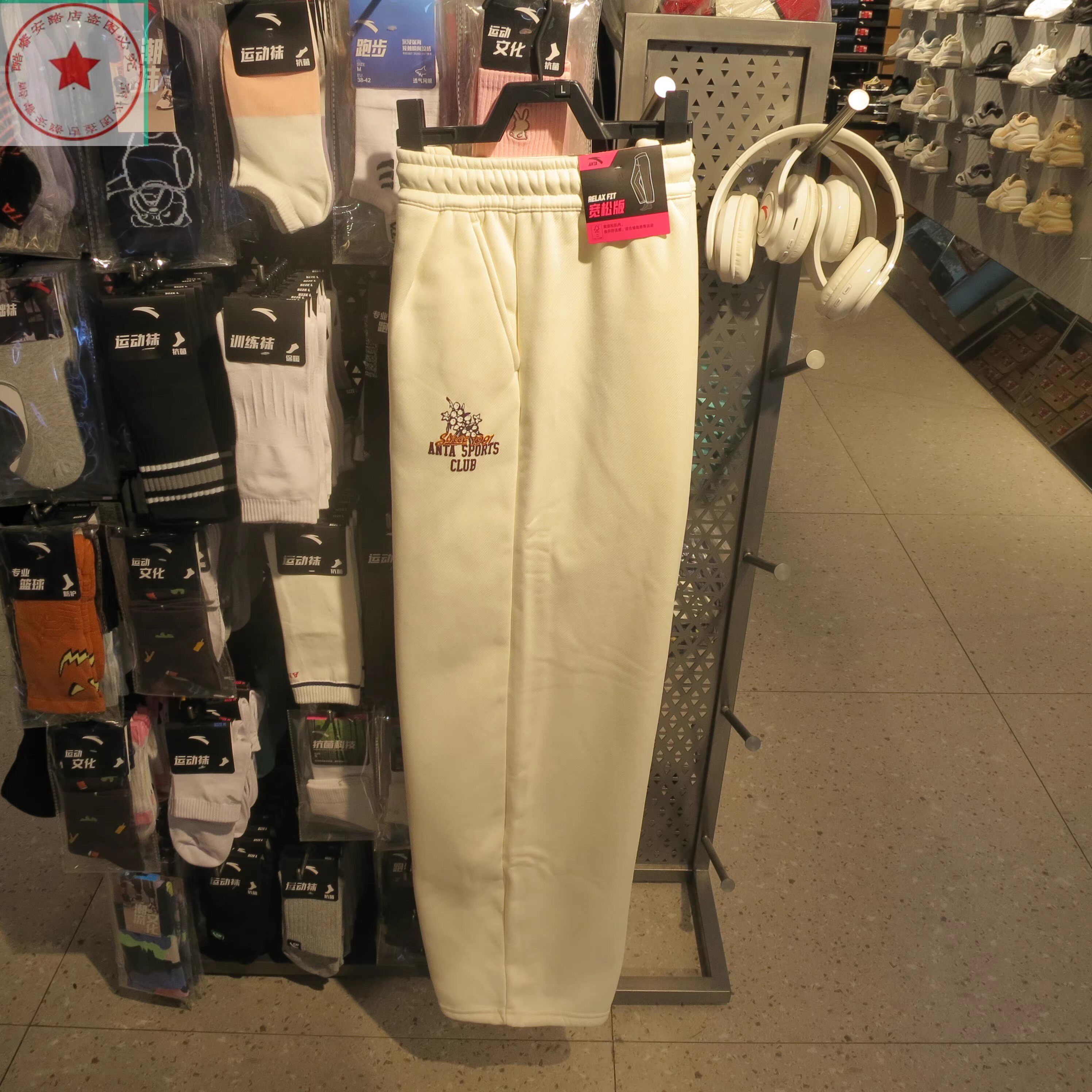 Anta Casual Sports Pants for Women 2024 Winter New Style Fleece-Lined Warm Loose Straight Sweatpants 162448304