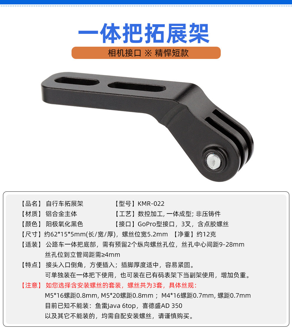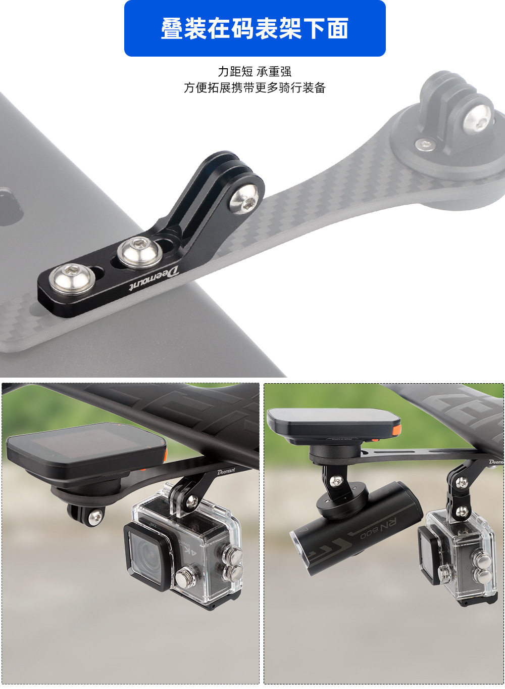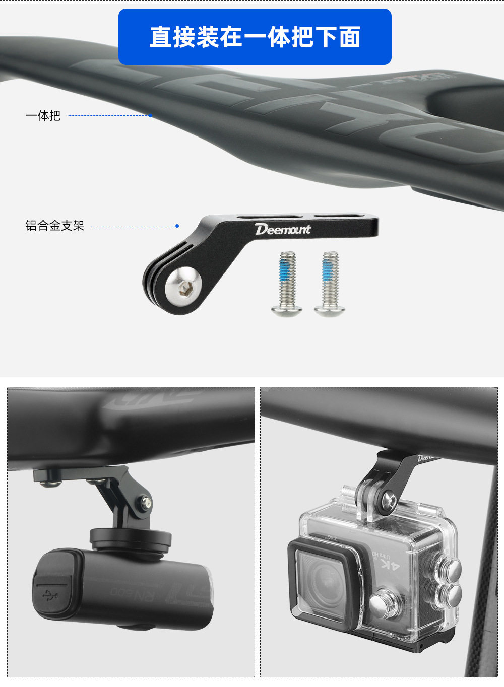 Road Bike Integrated Handlebar Extension Bracket, Curved Handlebar Bicycle Light Mount, Camera Mount Suitable for Gopro Cameras