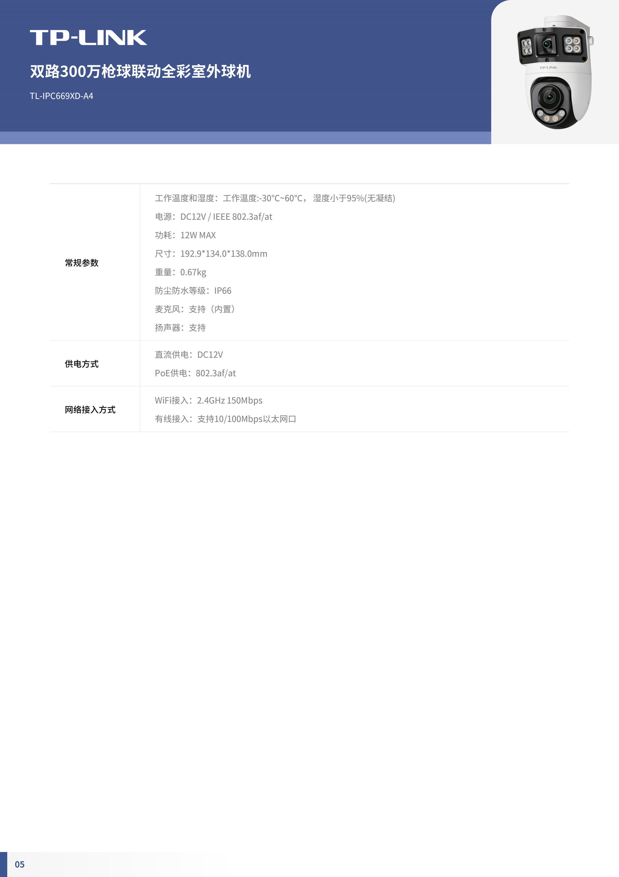 TP-LINK TL-IPC669XD-A4 camera 3 million dual-way wireless/POE dome outdoor dome