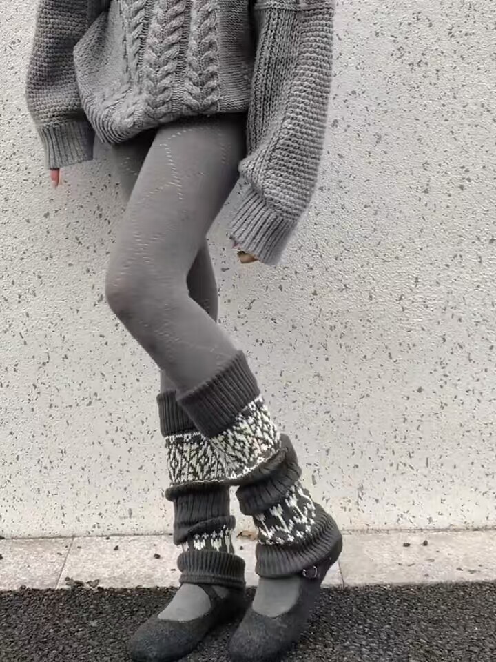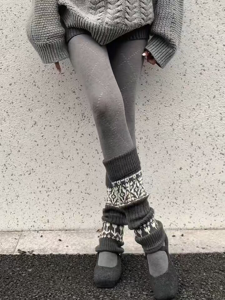 Fair Isle Sock Warmers for Women, Autumn and Winter Thick Warm Wool Leg Warmers, Slimming Calf Socks for Girls