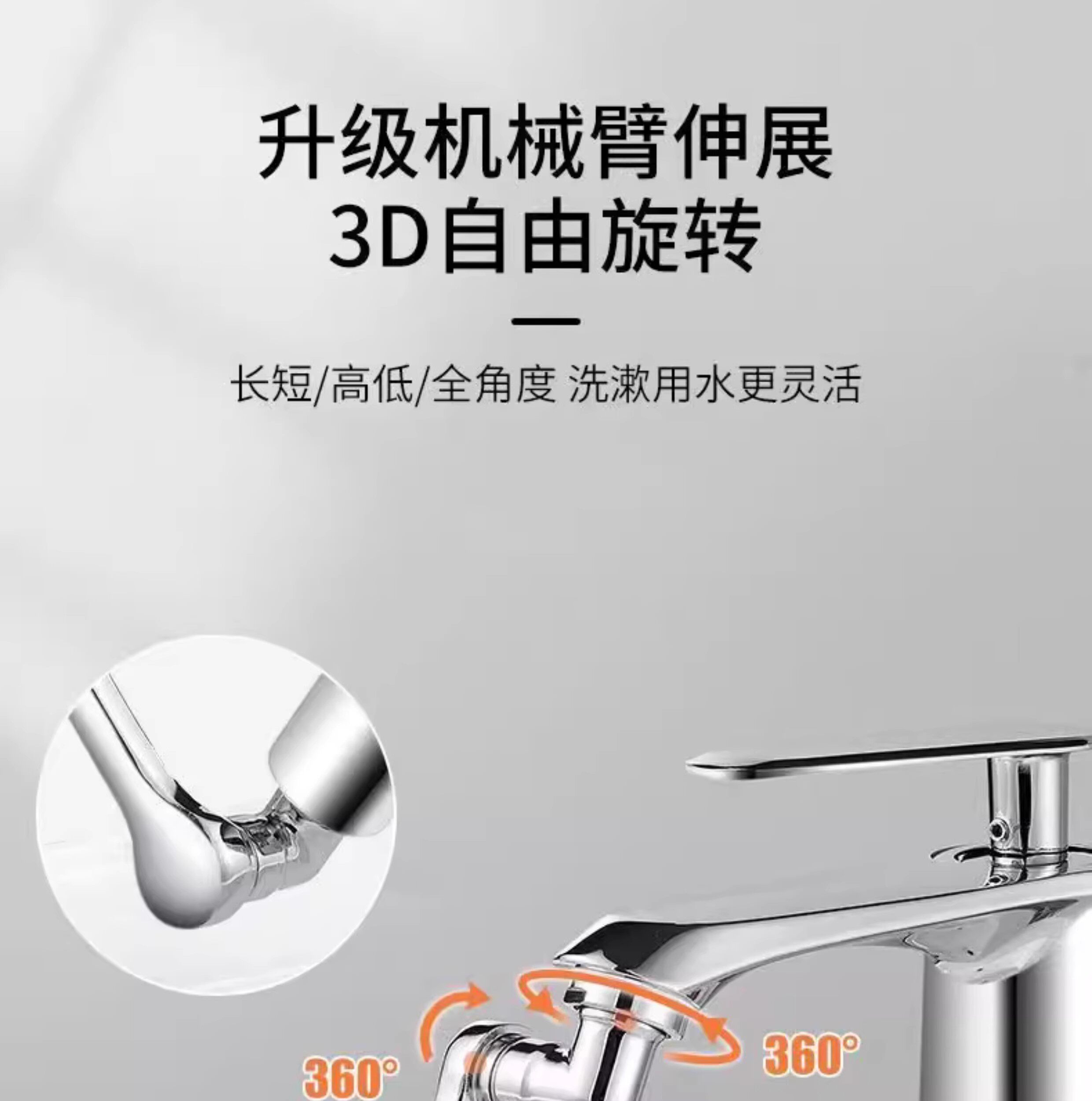 Mechanical Arm Universal Faucet Extender with Rotatable Spout, Multifunctional Splash-Proof Adapter for Washbasin