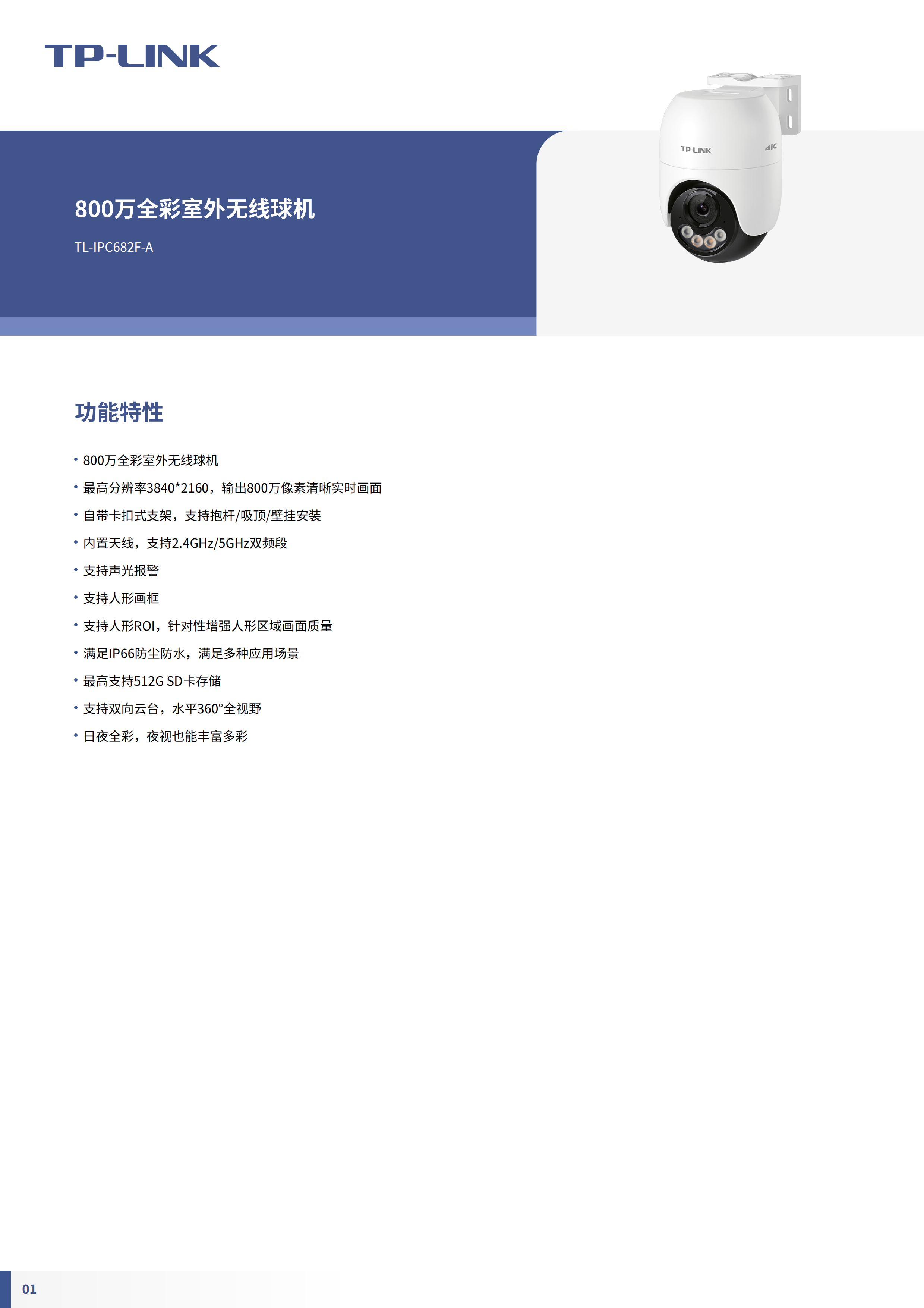 TP-LINK surveillance camera 682F 8 million dual-band wireless home mobile phone remote monitoring IPC662F-A
