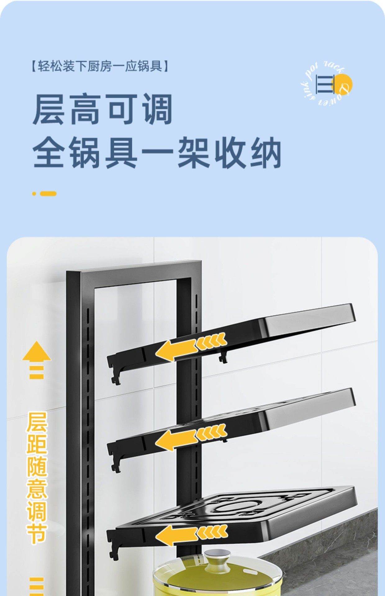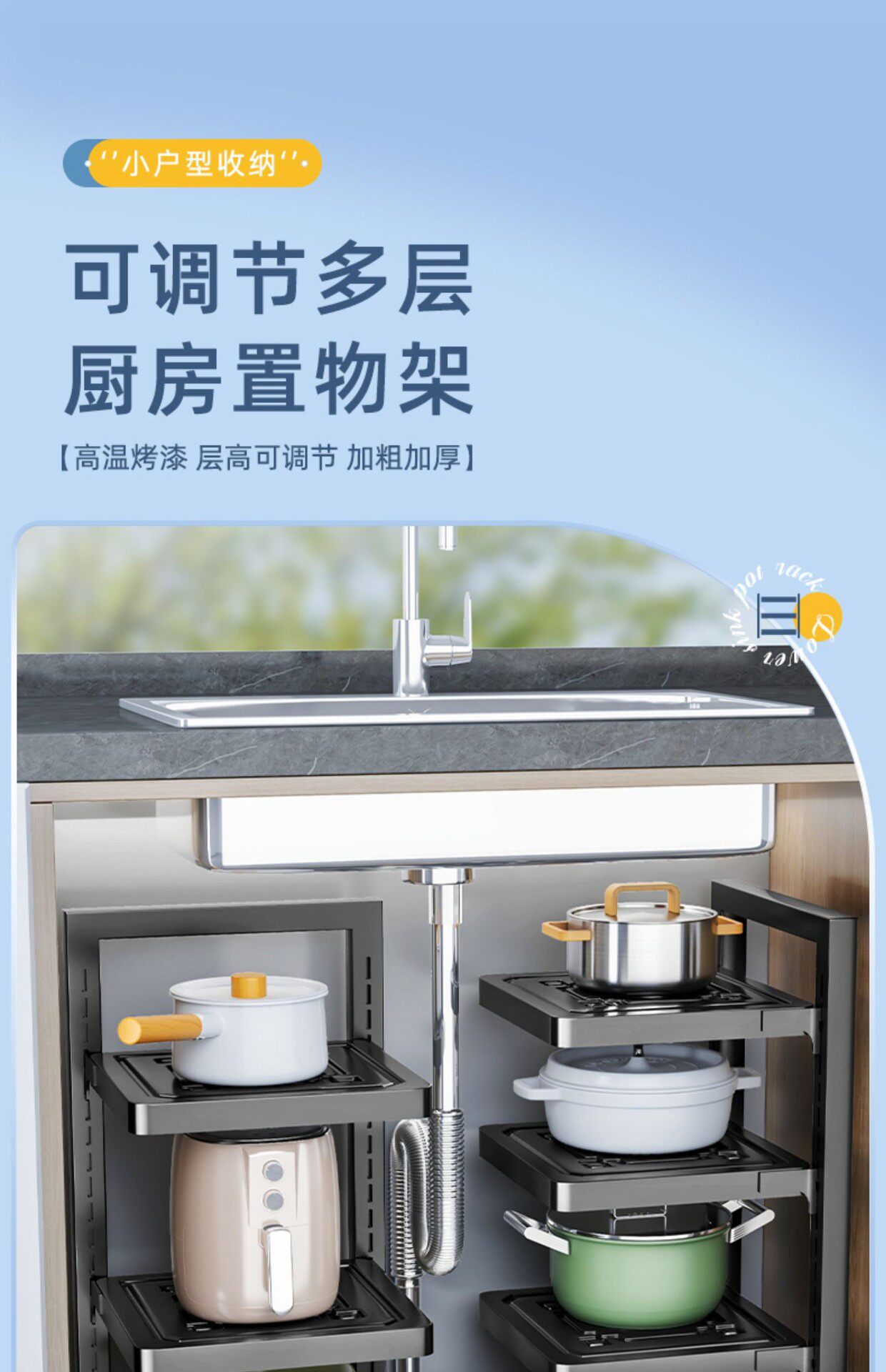 Kitchen pot storage rack multi-layer floor-standing storage rack multi-function countertop cabinet layer sink pot rack